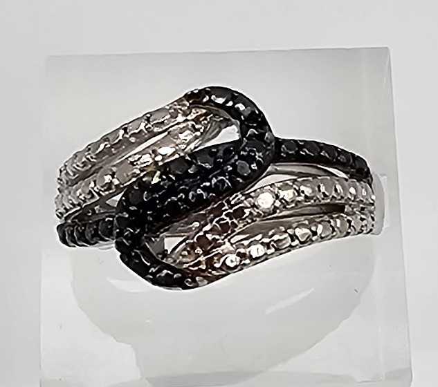 Diamond Sterling Silver Cocktail Ring Size 6.75 4.4 g