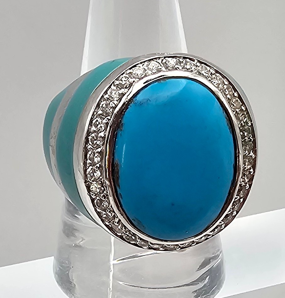 Enamel faux turquoise Sterling silver ring size 9.25 21.2 g