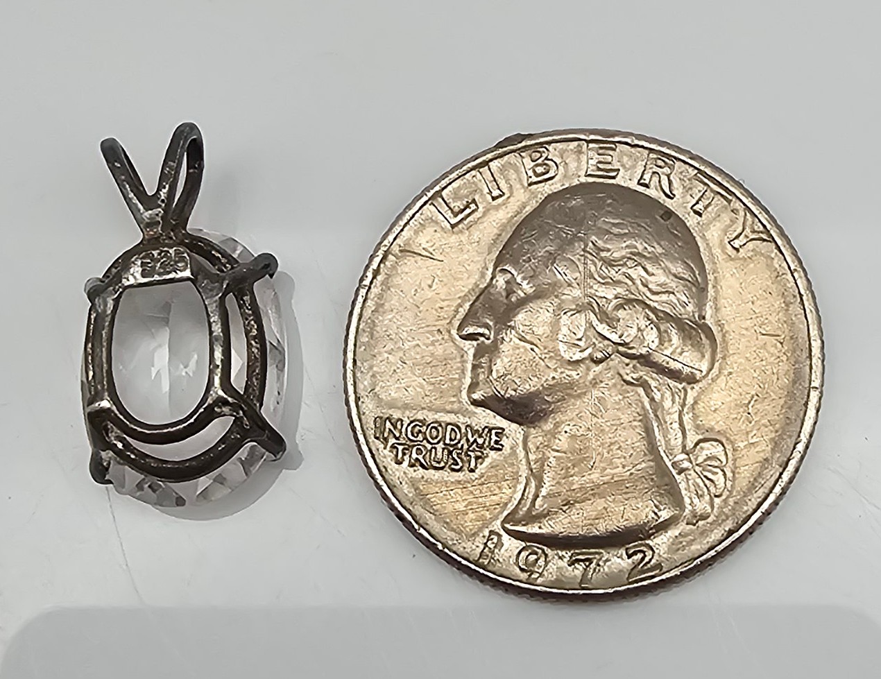 Cushion Cut Rhinestone Sterling Silver Pendant 1.8 g