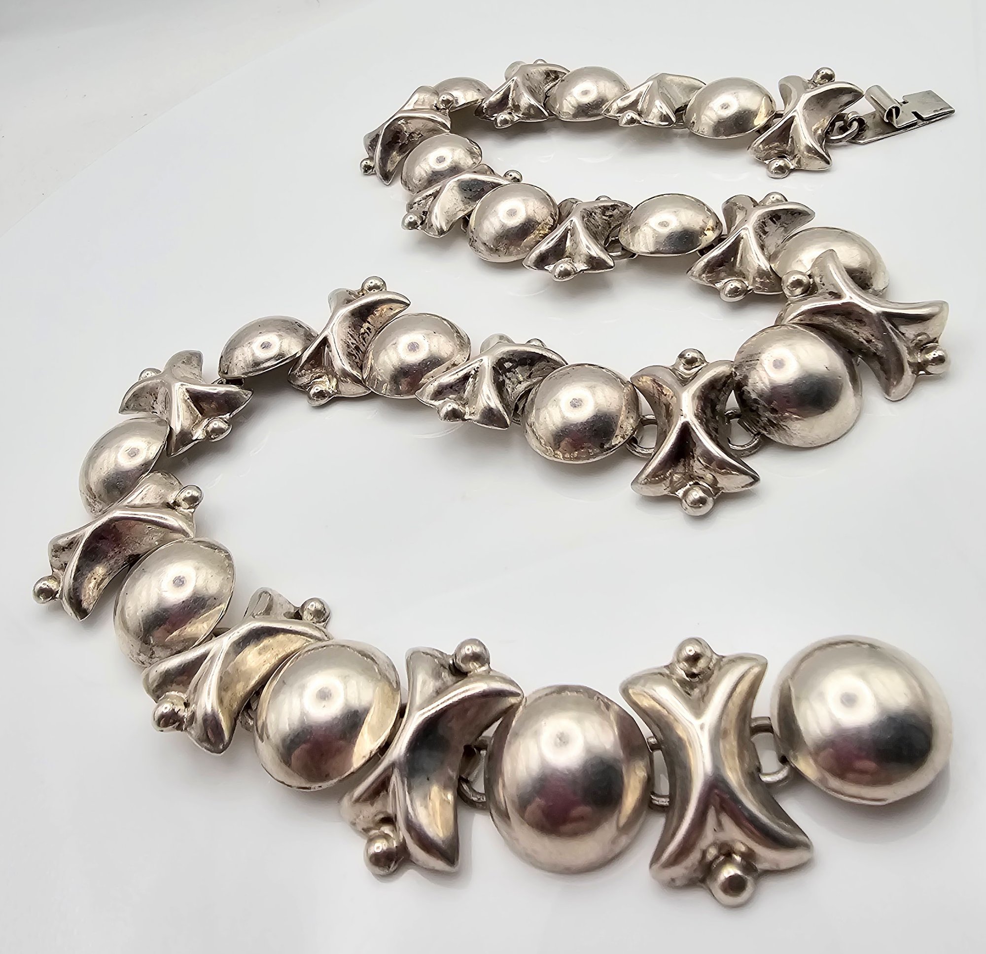 Mexico Taxco TM-17M sterling Silver Hollow Form XOXO Necklace 116.6 g