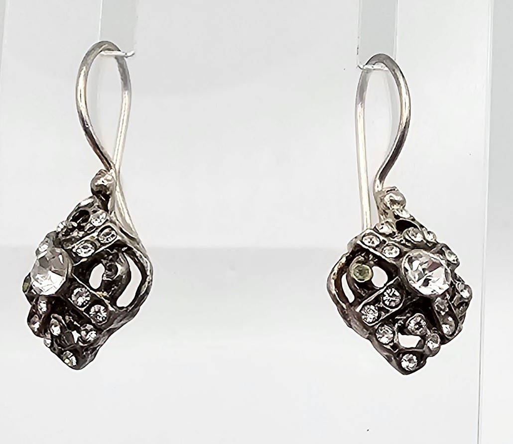 Rhinestone Sterling Silver Drop Dangle Earrings 4.6 g
