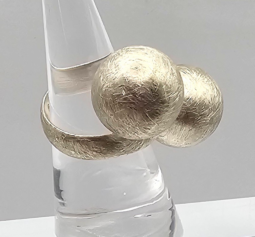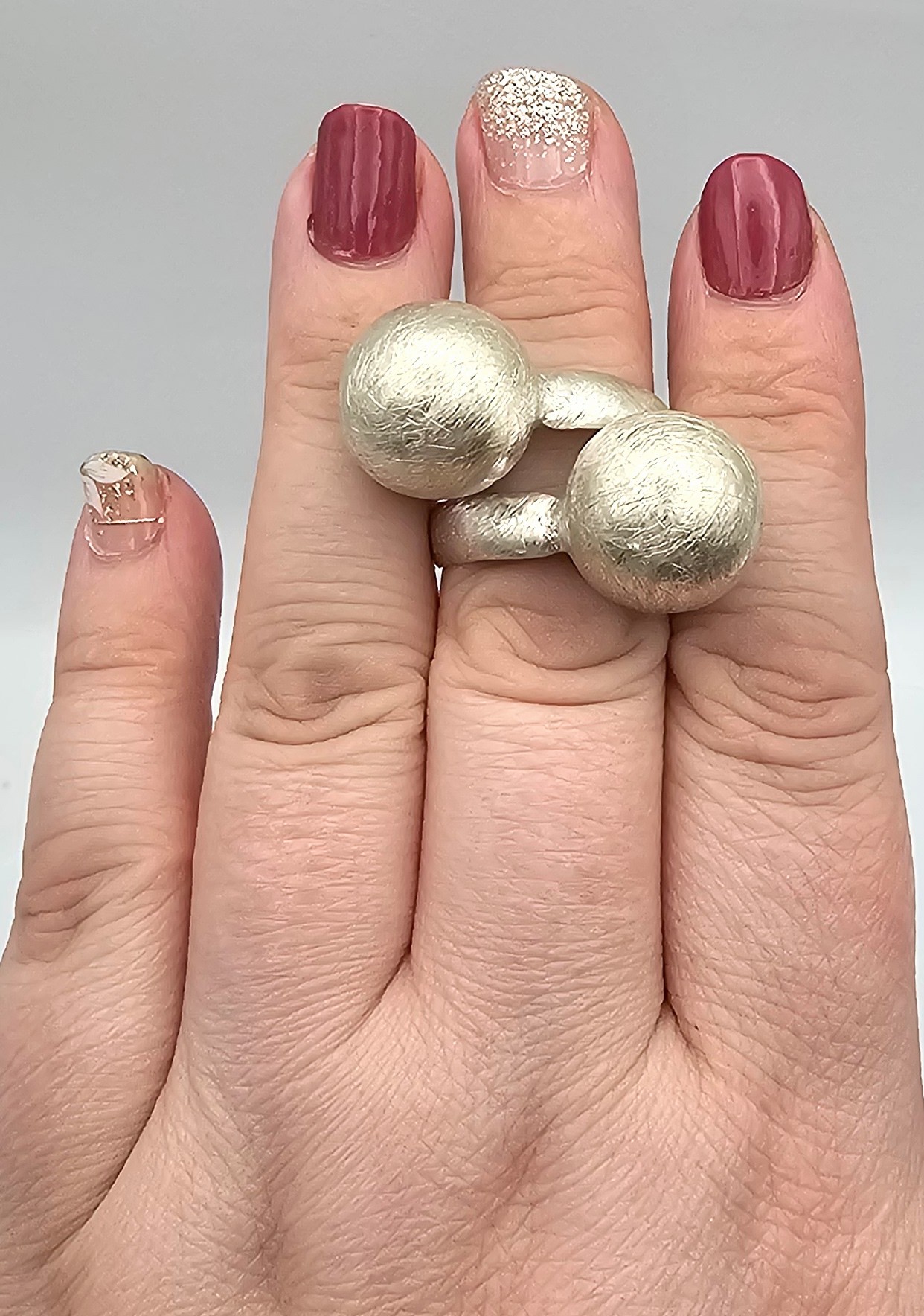 New Balaam Monica Zamora Brushed Sterling Silver Double Sphere adjustable ring 11.7 g