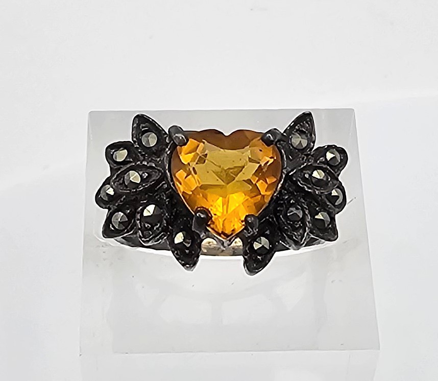 Rhinestone Marcasite Sterling Silver Cocktail Ring Size 5.25 4 g