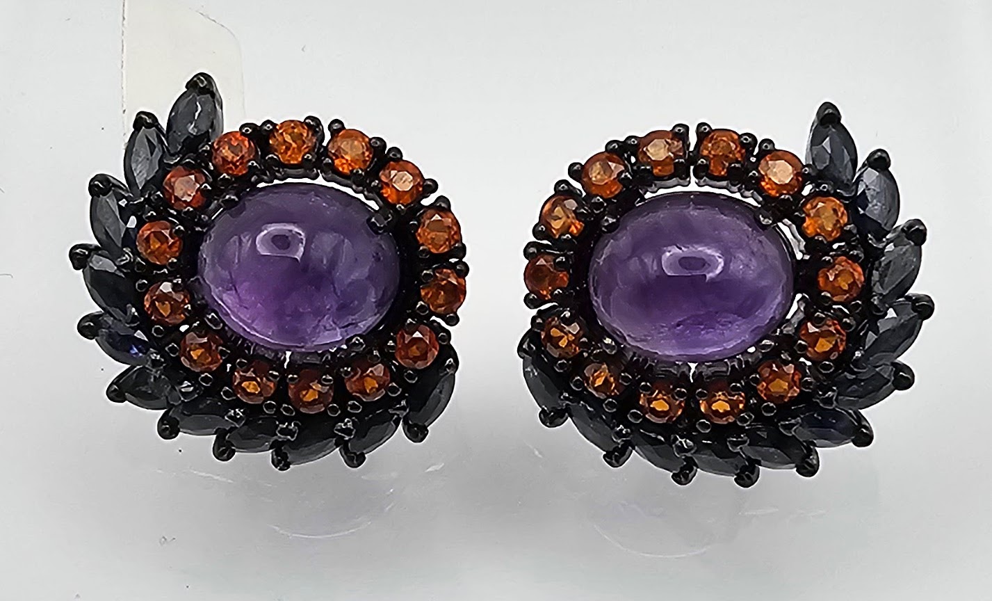 NWT Genuine Sapphire Garnet Amethyst Sterling Silver Earrings 12.6 g