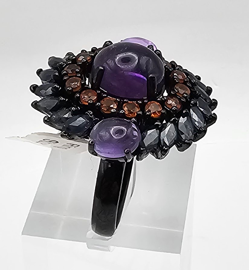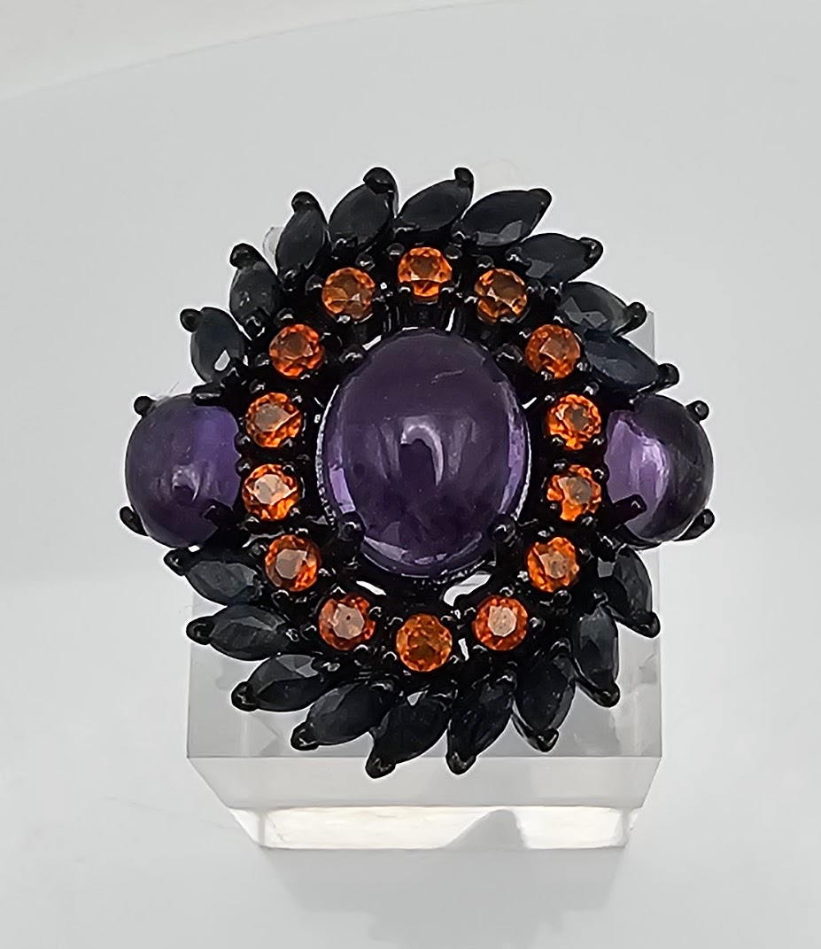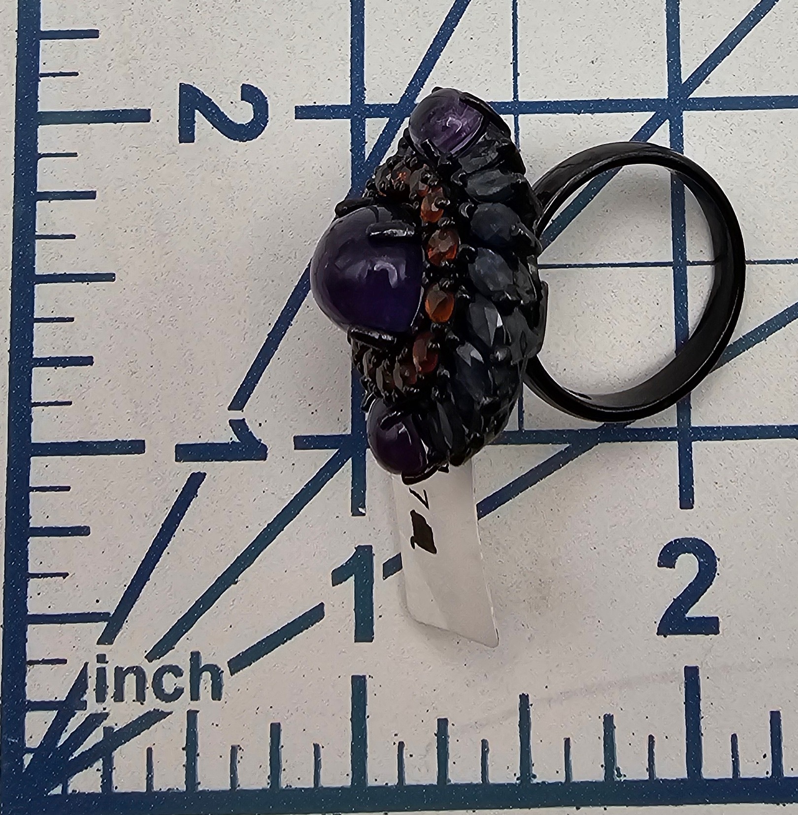 NWT Genuine Sapphire Ruby amethyst Sterling Silver Cocktail Ring Size 7 12.4 g