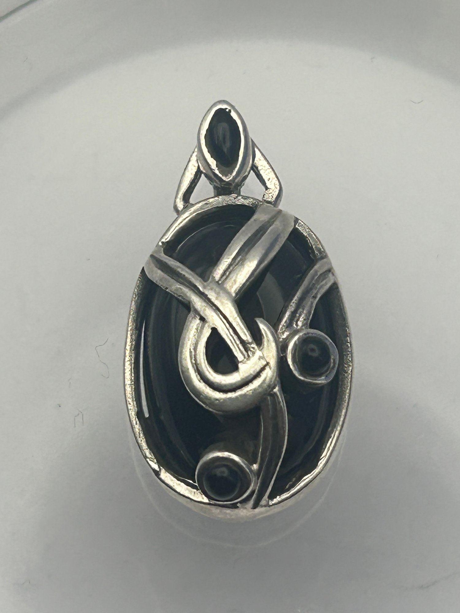 Sterling silver pendant with large oval black stone. 9.61 g. Multiples of this item in the auction with various weights