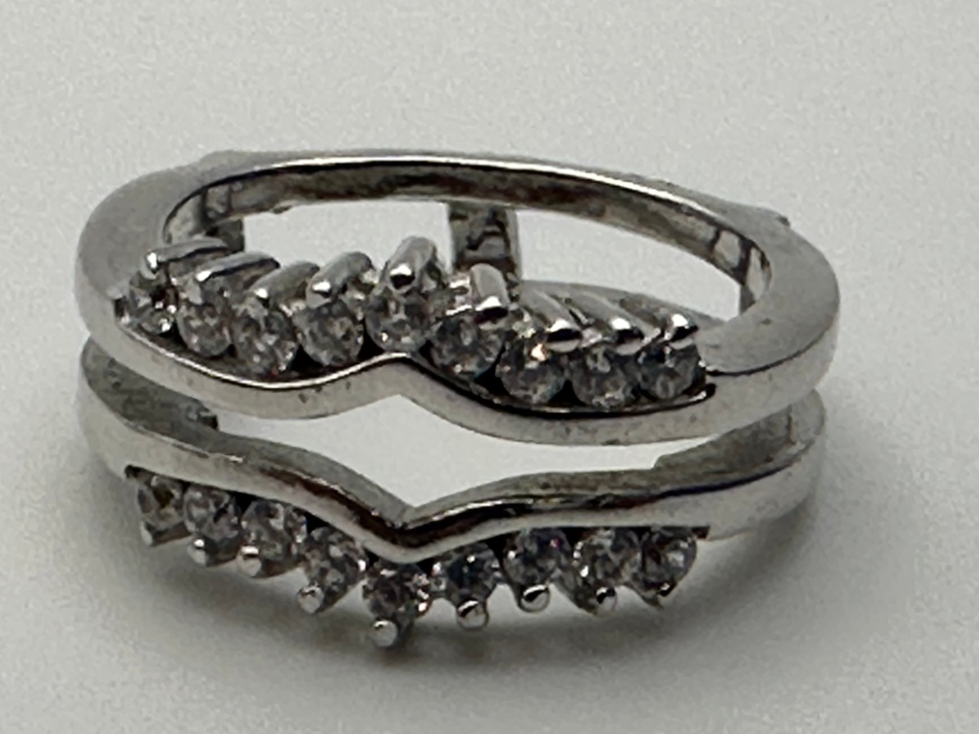 ISA-sterling silver ring with double band and clear rhinestones size 6 4.80 g.