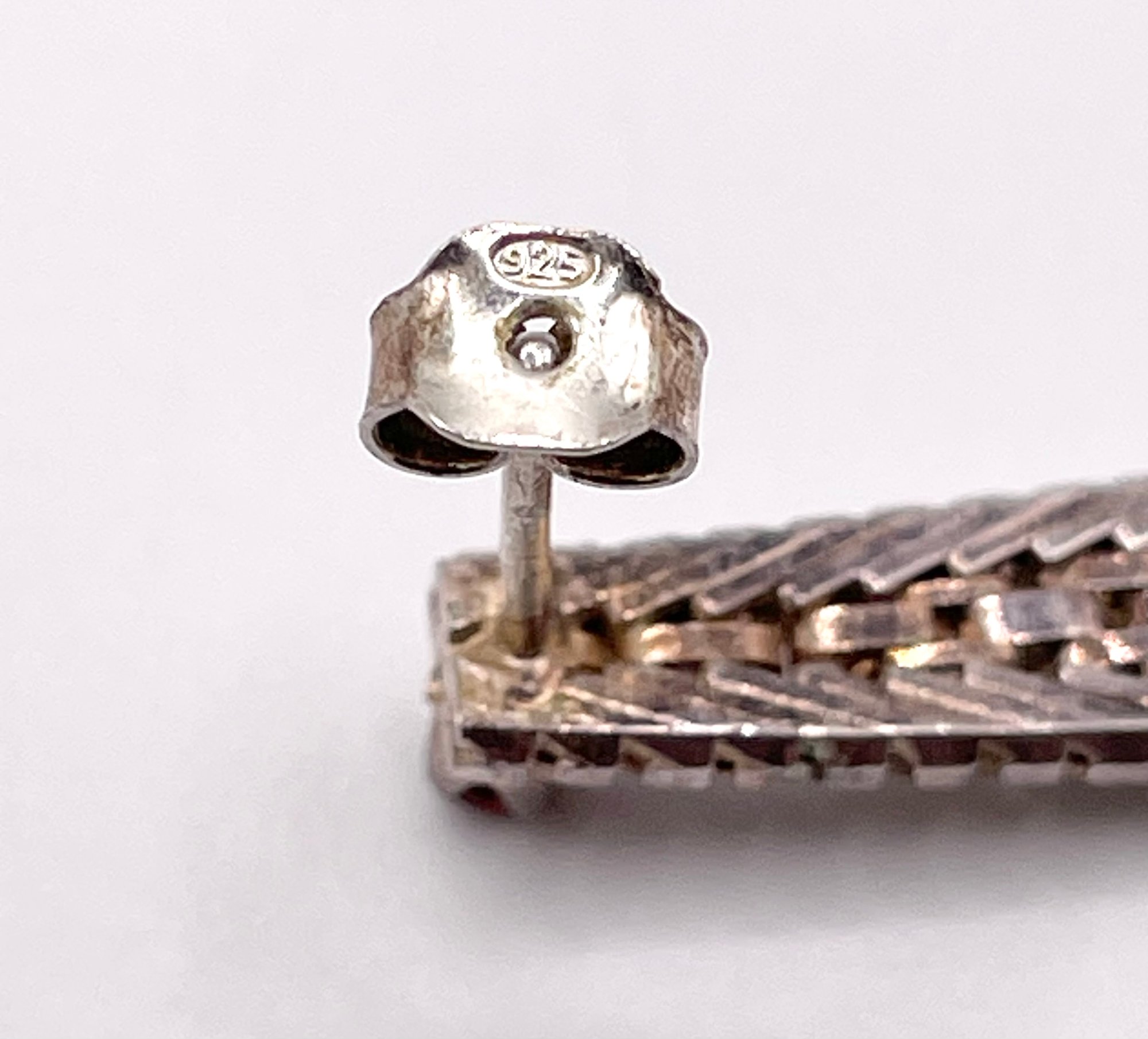 Sterling With Ruby Rhinestones Stud Earrings 4g
