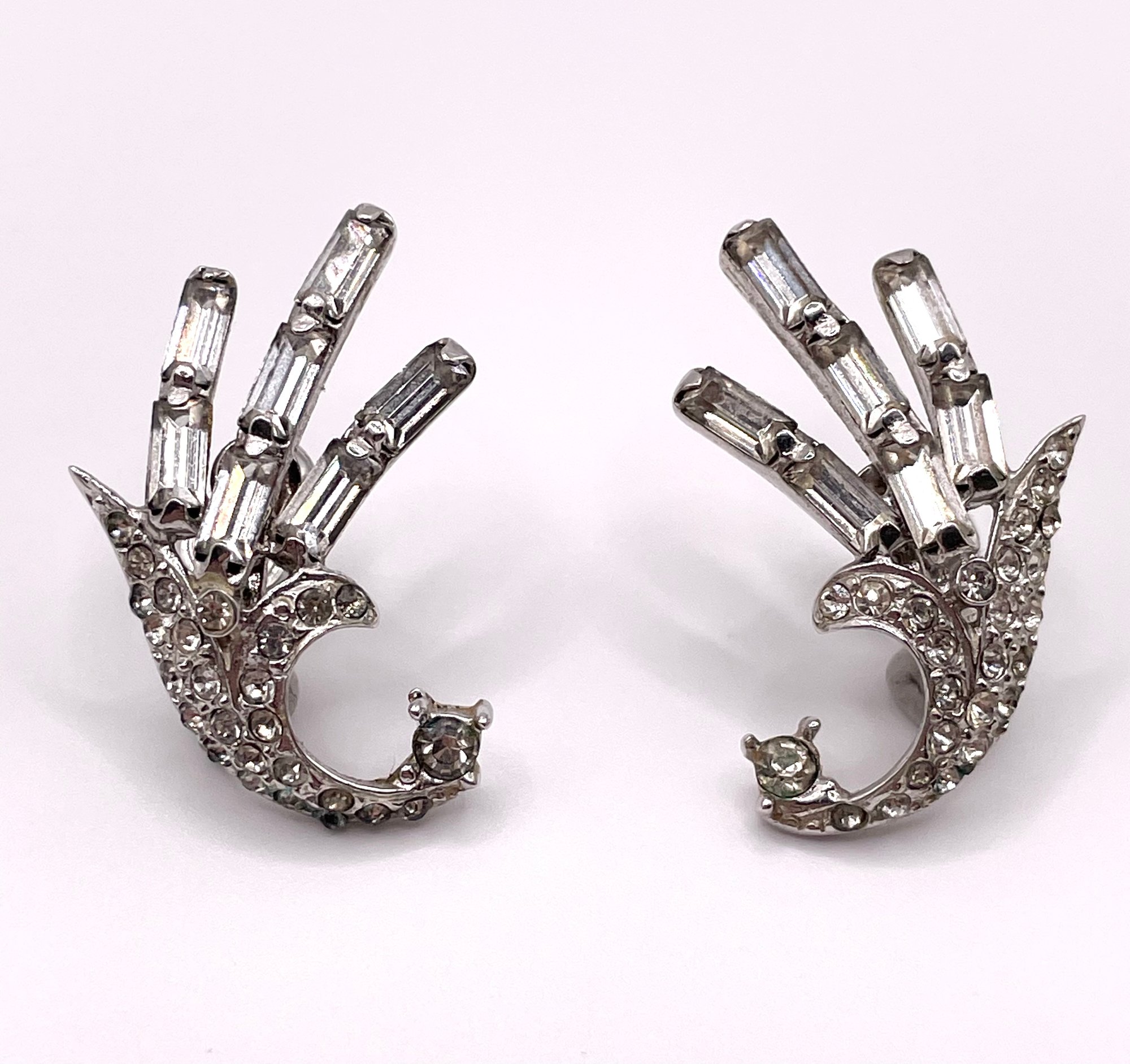 Sterling Clear Rhinestone Screw Back Earrings 8g