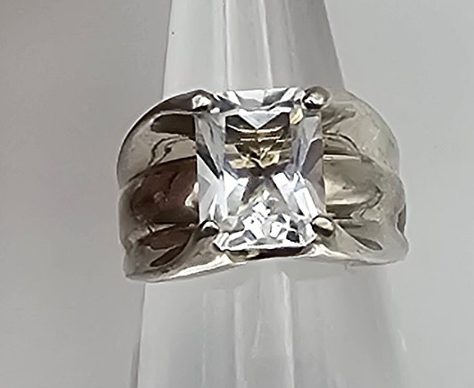 NF Rhinestone Sterling Silver Cocktail Ring Size 5.25 7.6 g