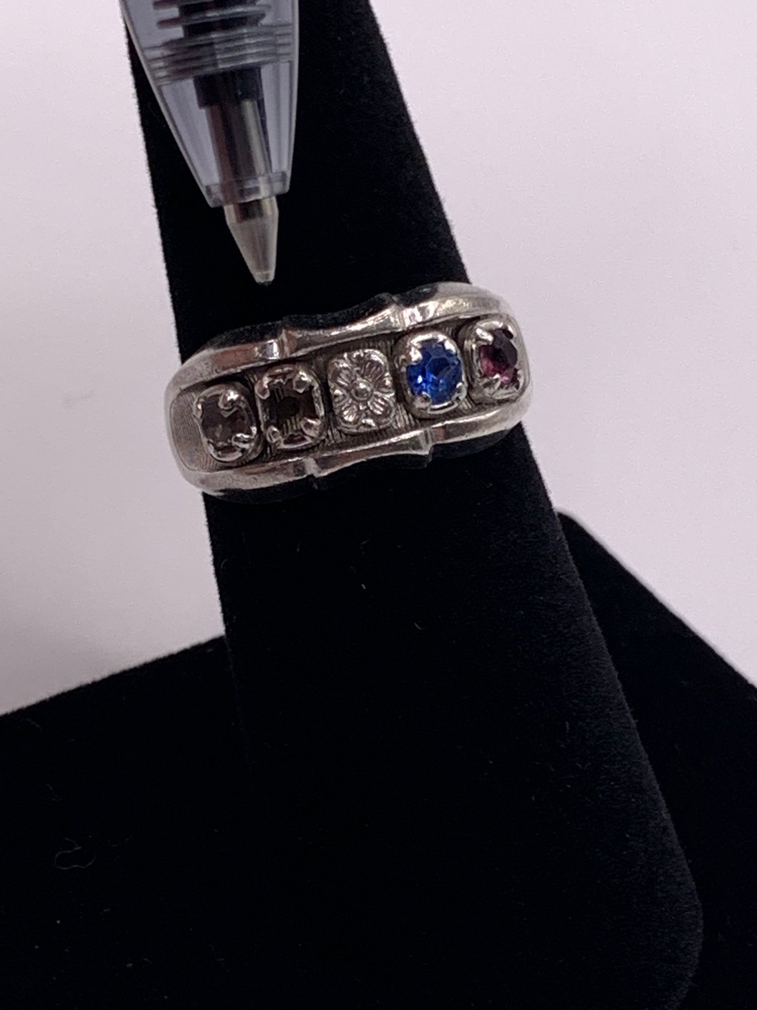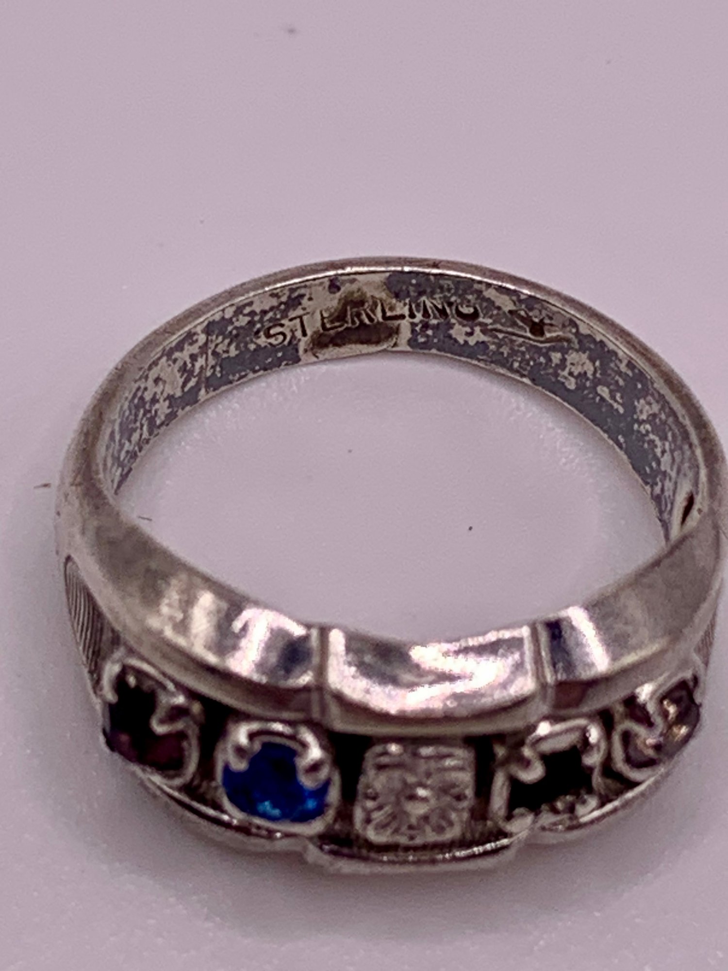 Vintage Sterling Silver Ring With Cobalt Purple Clear Rhinestones 4.6g- {Damaged}- Missing stone size 7