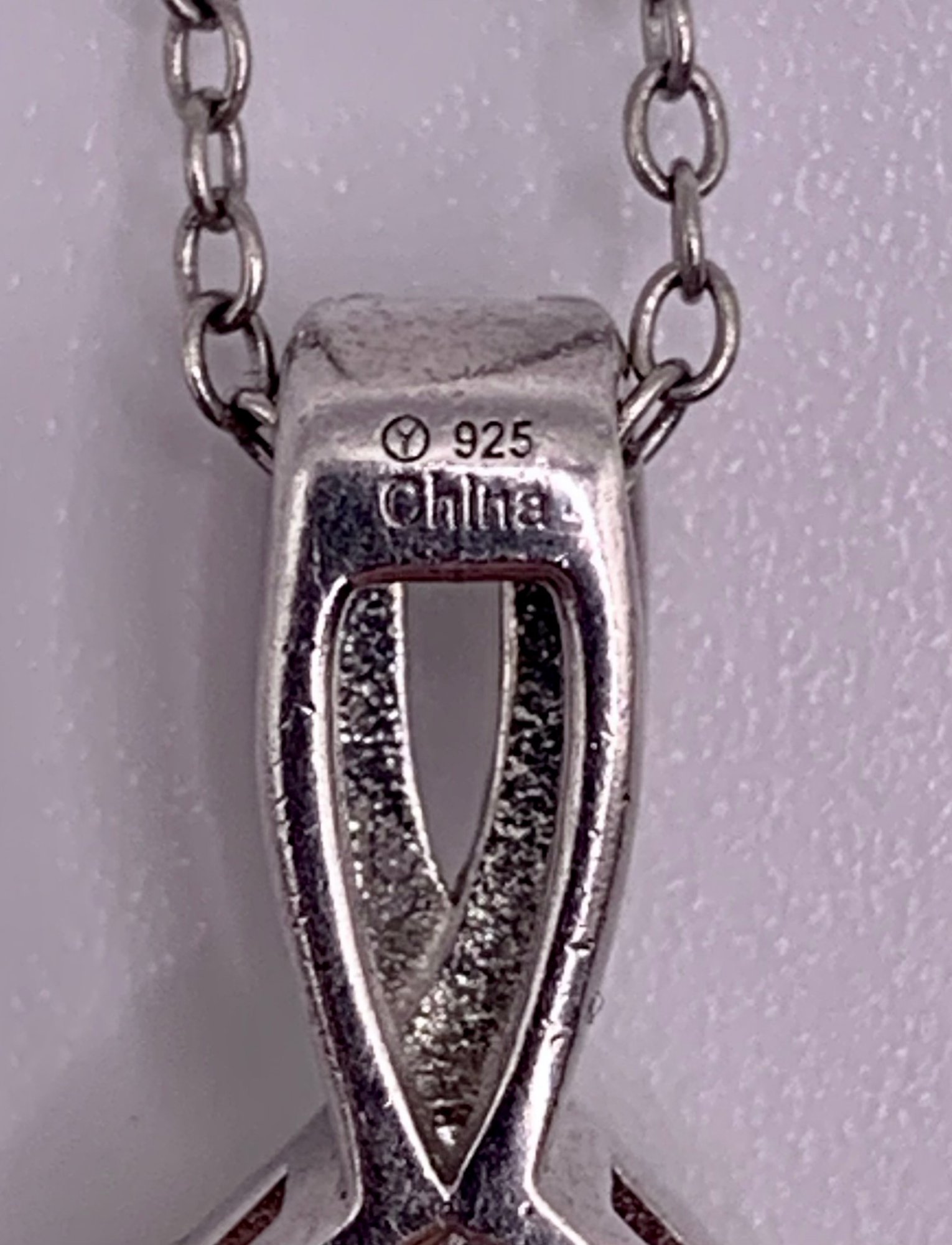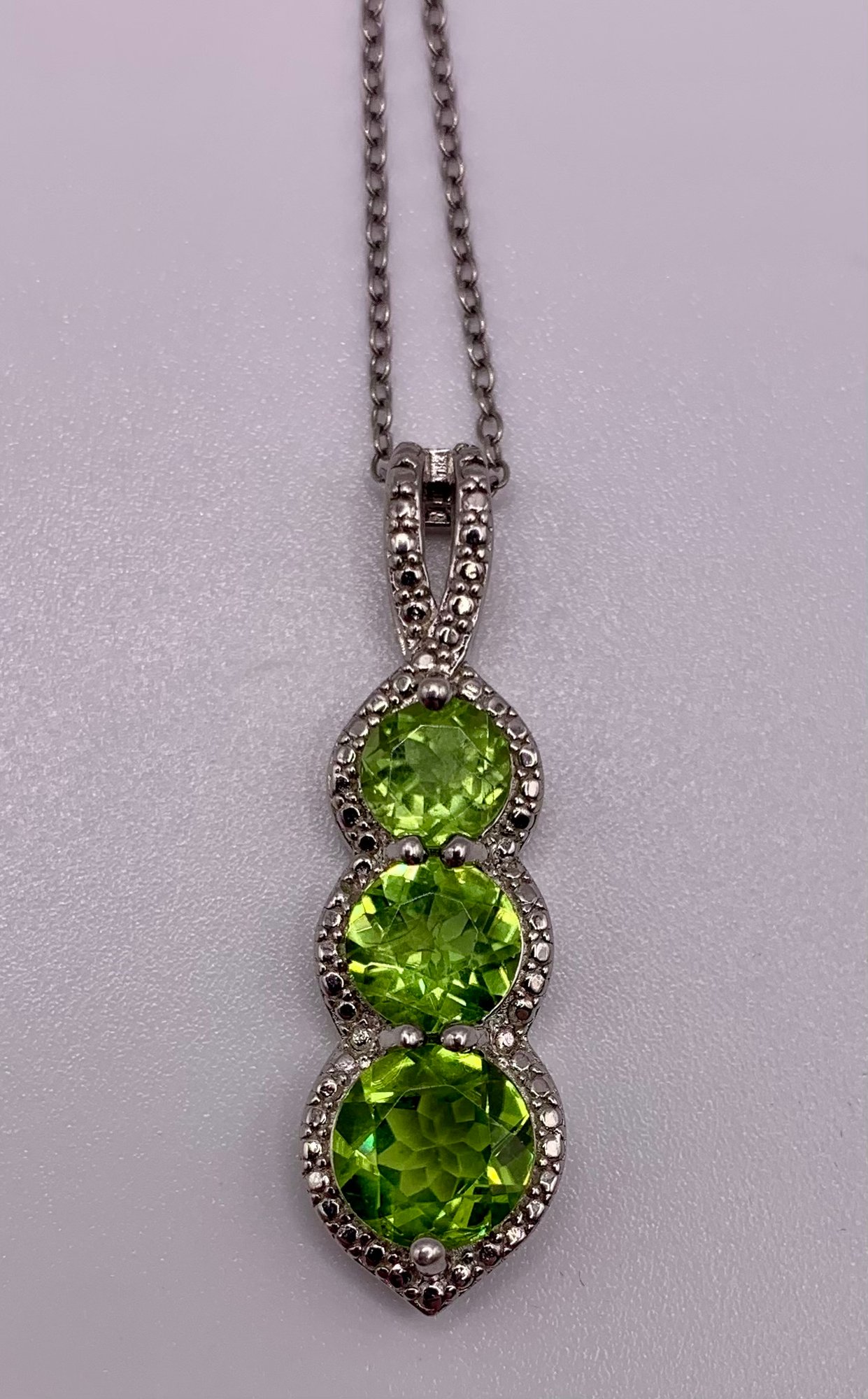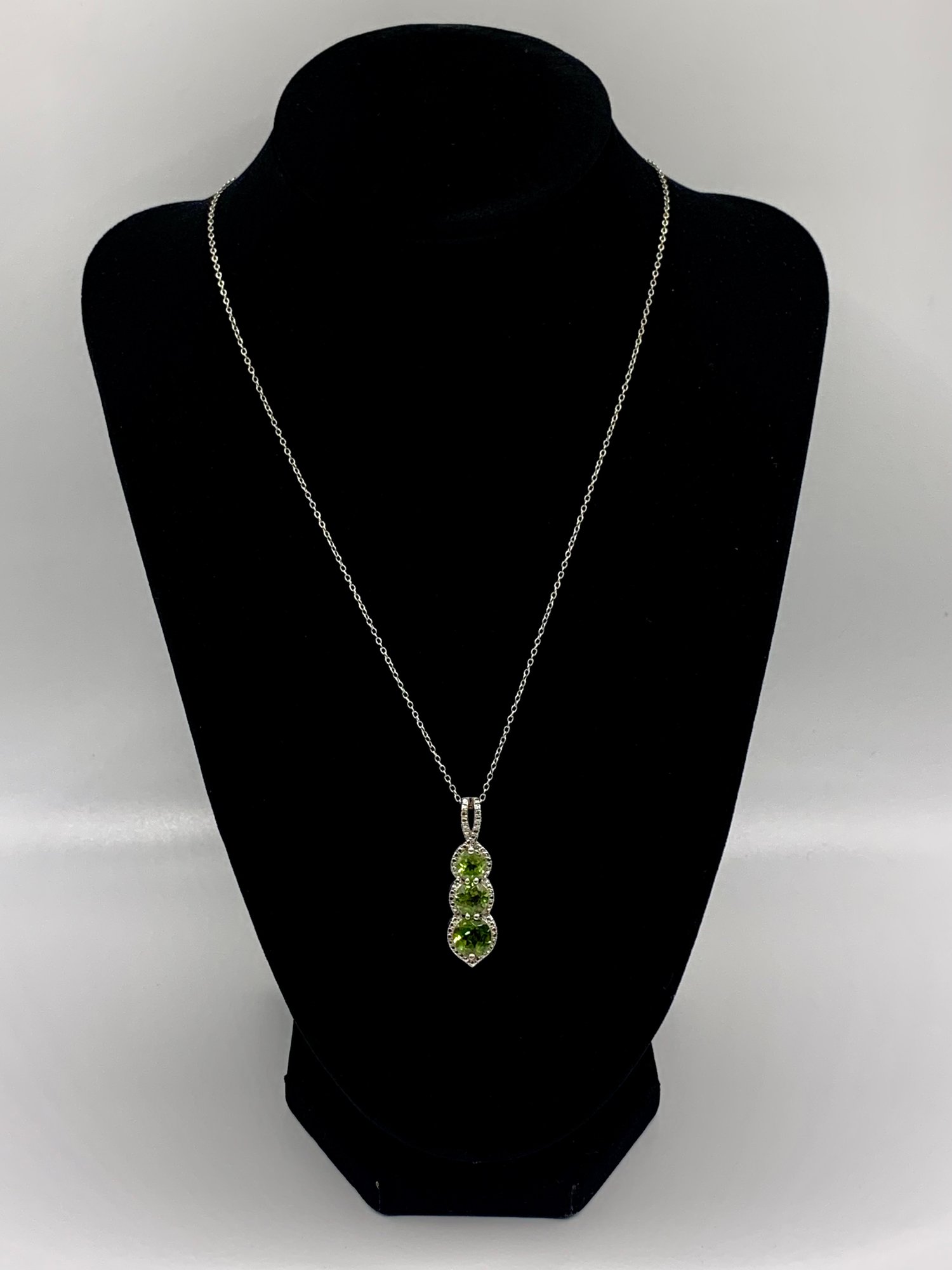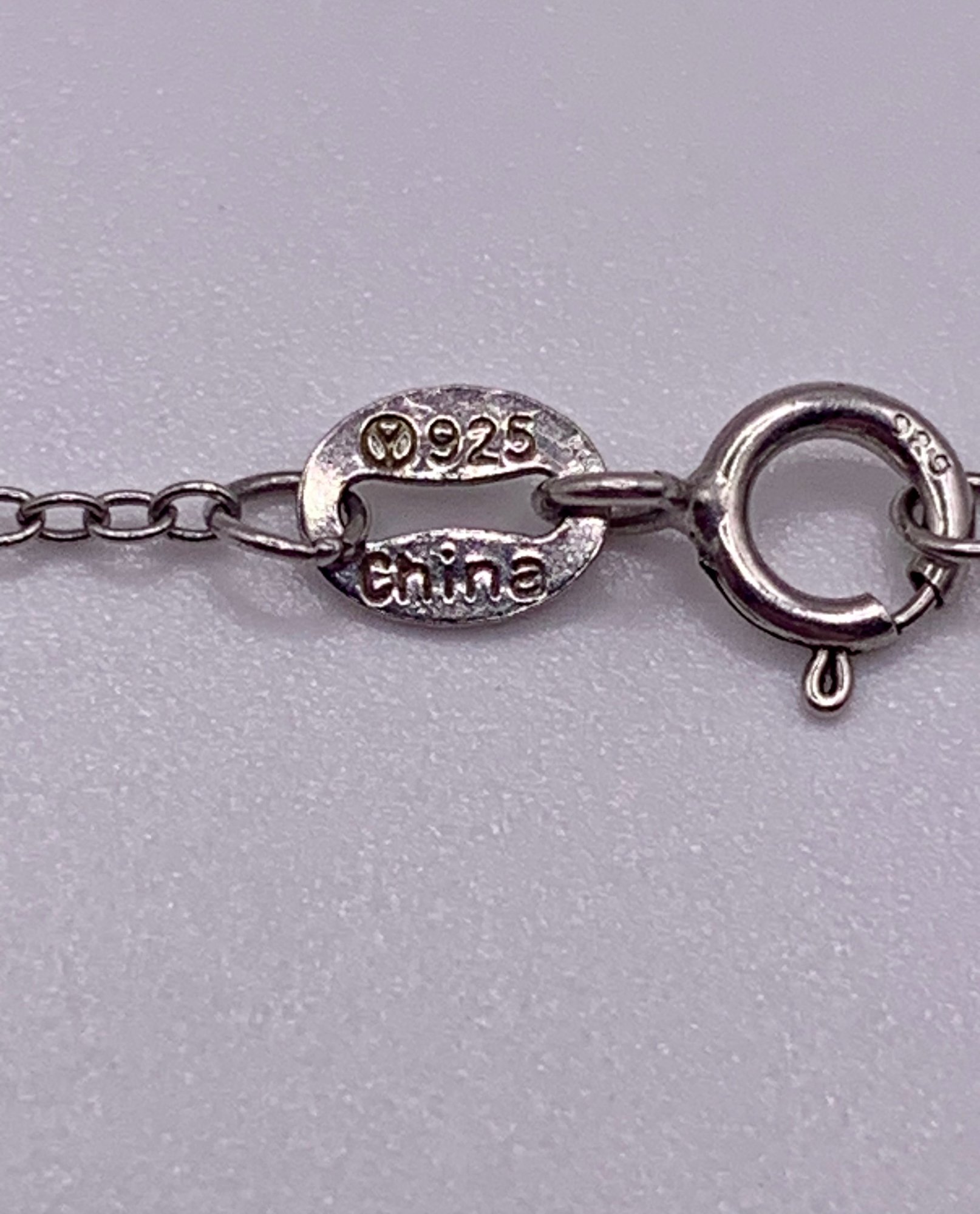 Sterling Silver Dainty Chain Necklace And Pendant With Lime Green Rhinestones 4.9g- China 925 Y in circle symbol