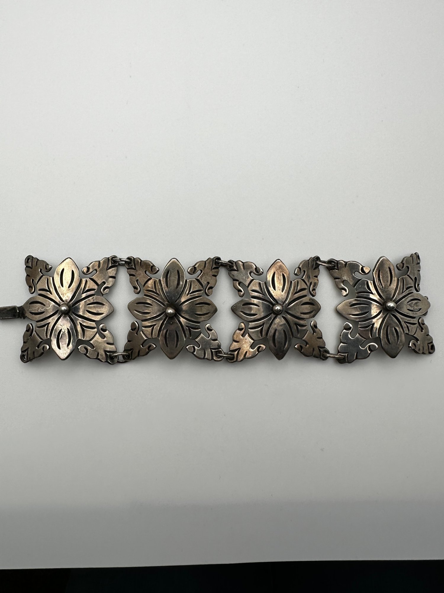 Sterling silver cuff style flower bracelet-Mexico 55.08g