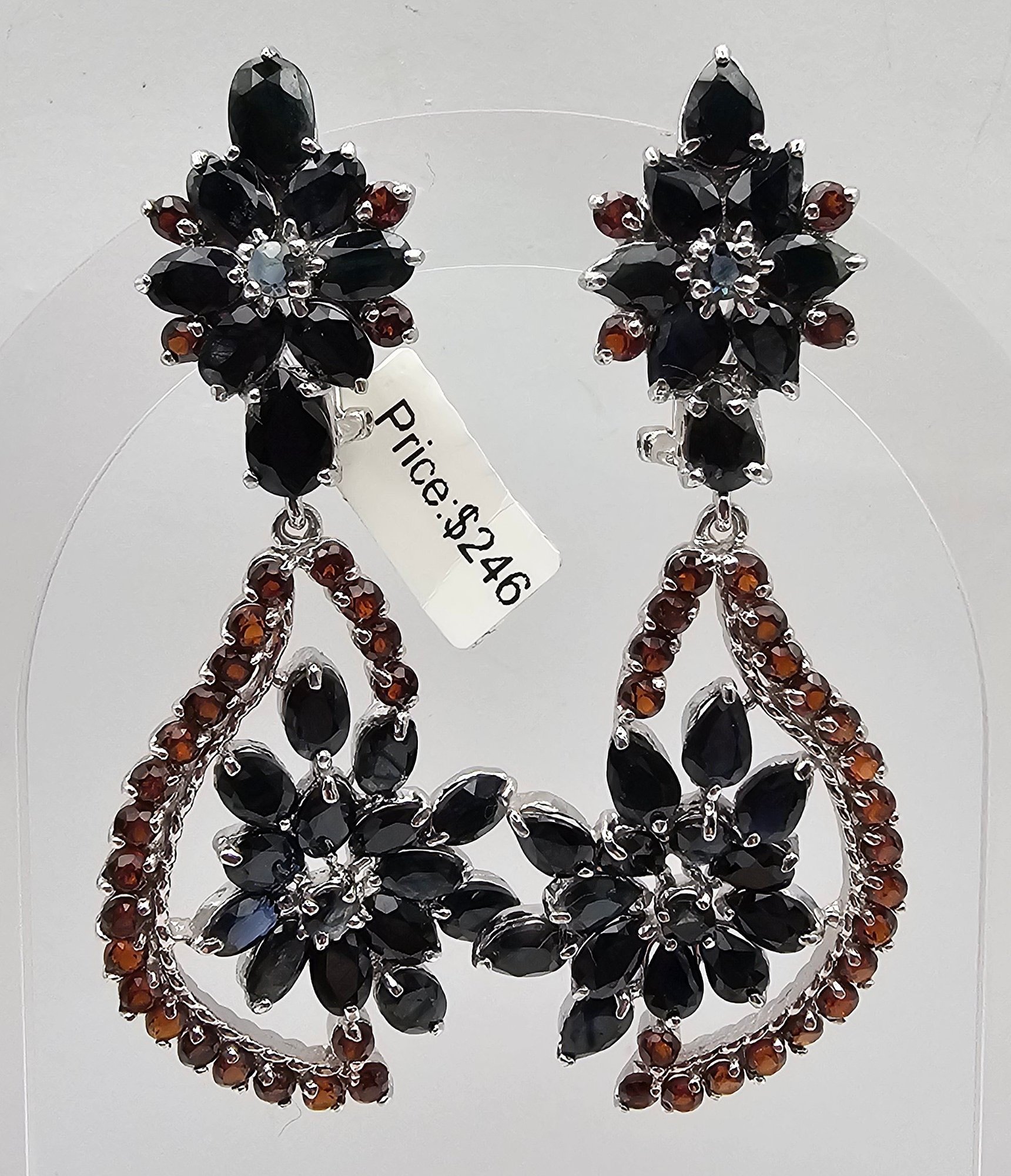 NWT Genuine Sapphire Garnet Sterling silver drop Dangle Earrings 25.9 g
