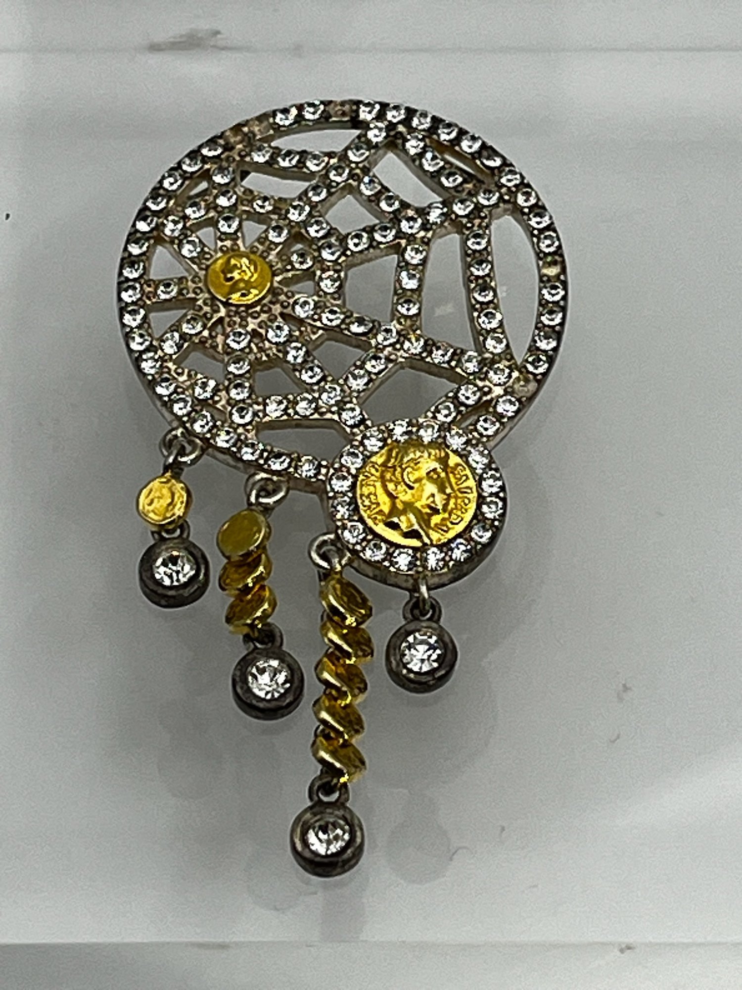 Sterling Pendant With Rhinestone Web Design 10.51g