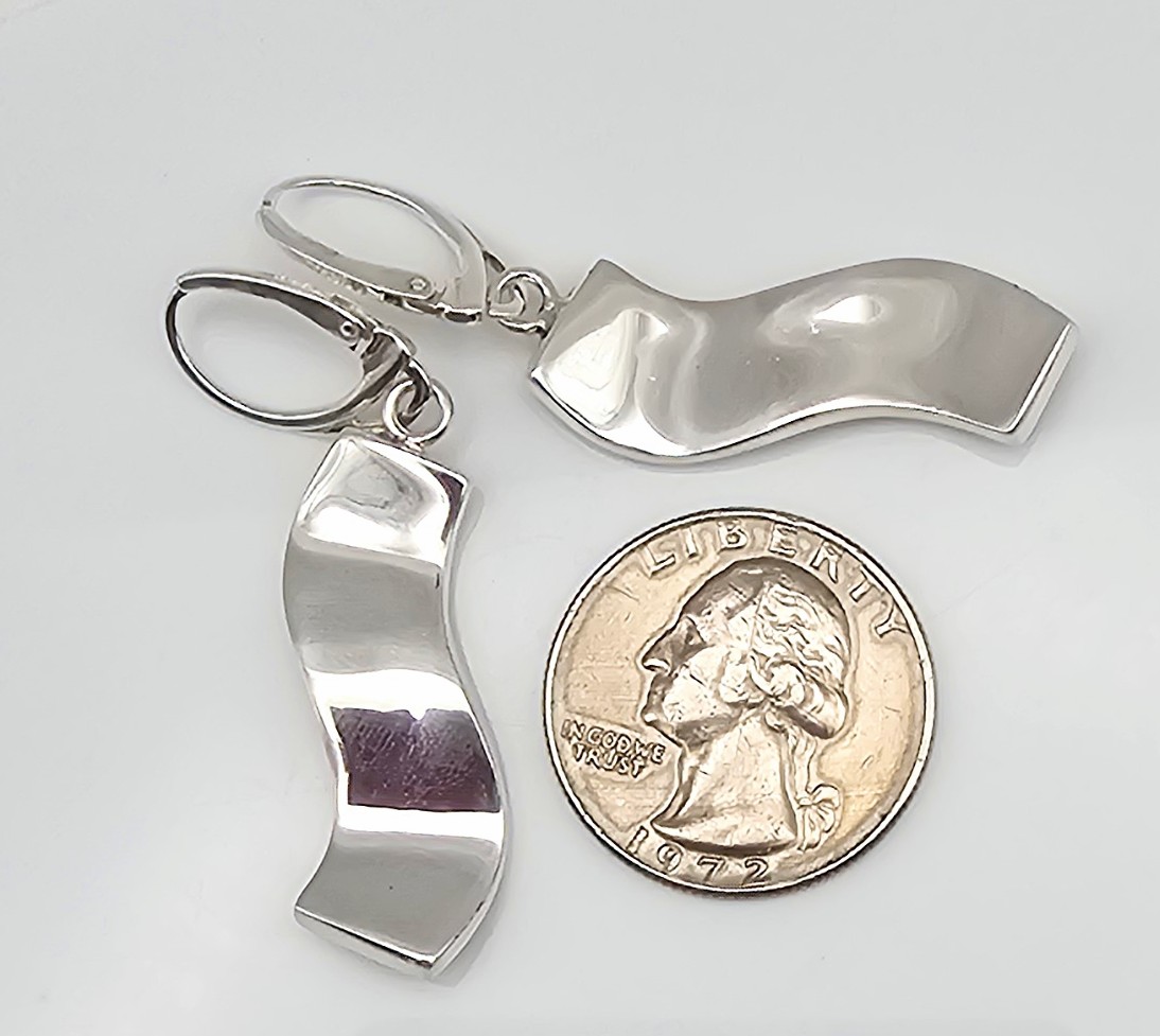 New Great High Quality Poland Amber Green Amber Honey Amber Sterling Silver Wave Dangle Earrings 12.3 g