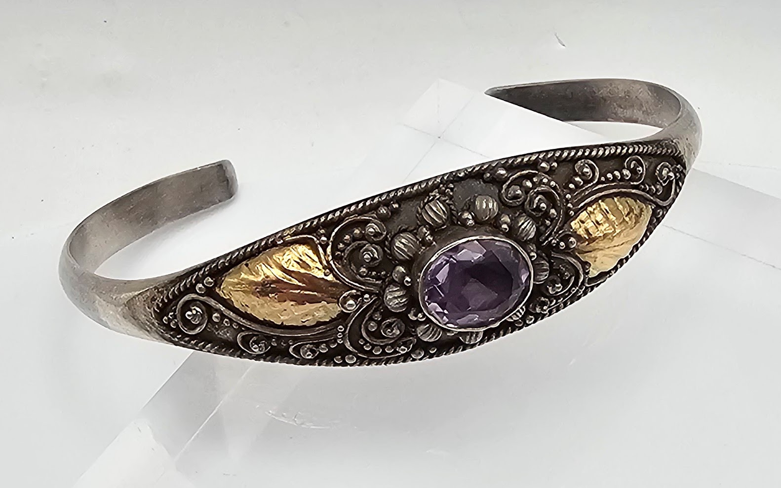 Amethyst Sterling Silver Cuff Bracelet 20.6 g