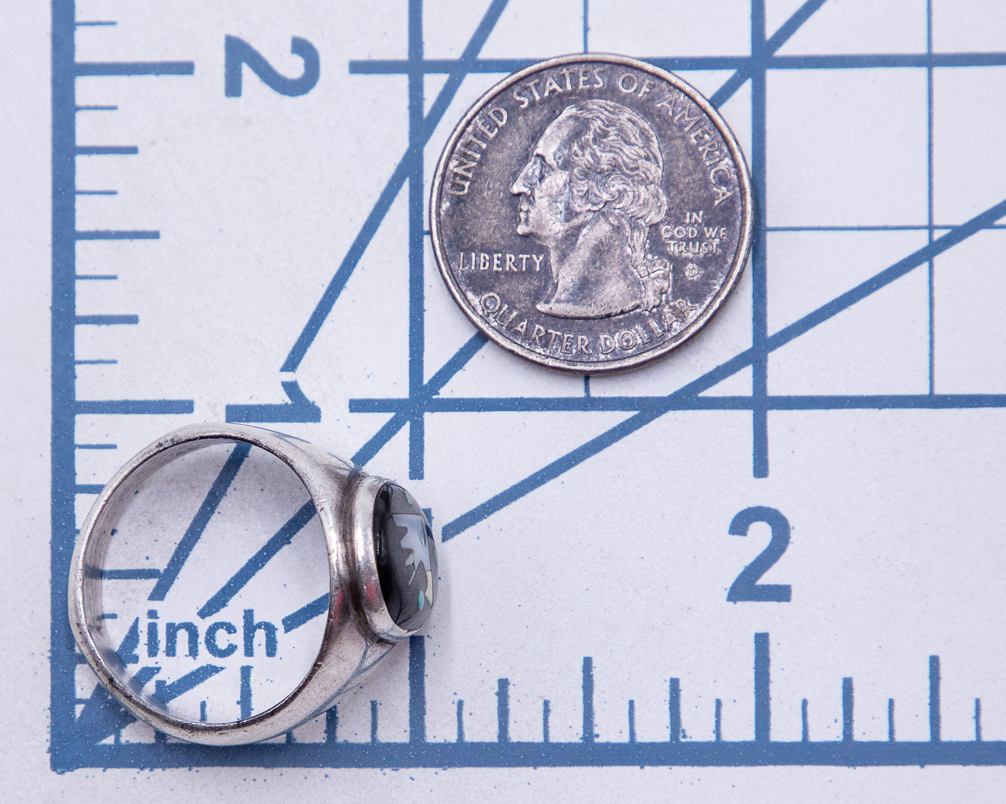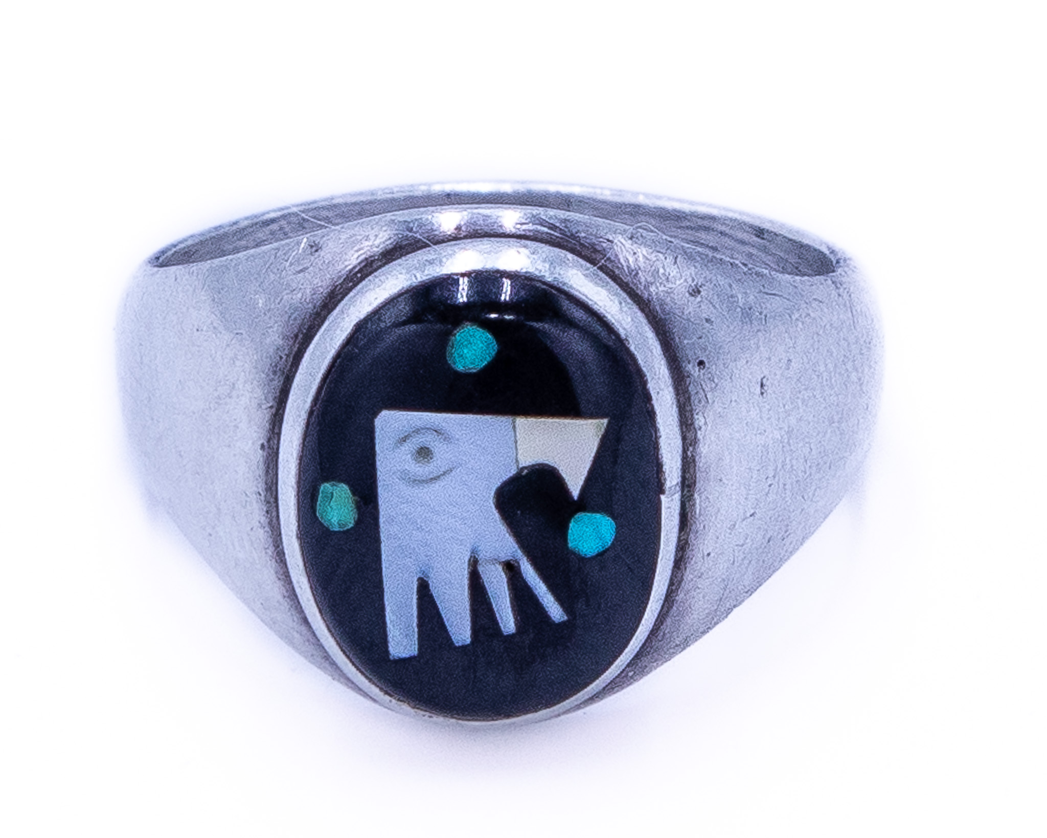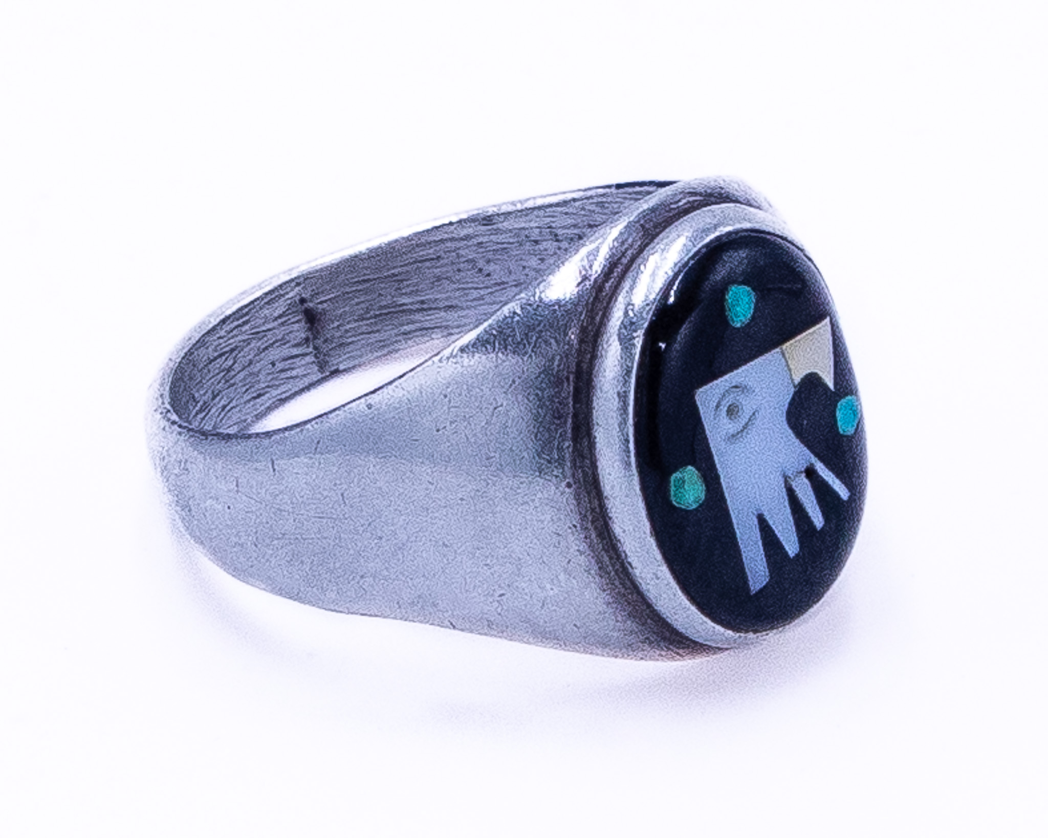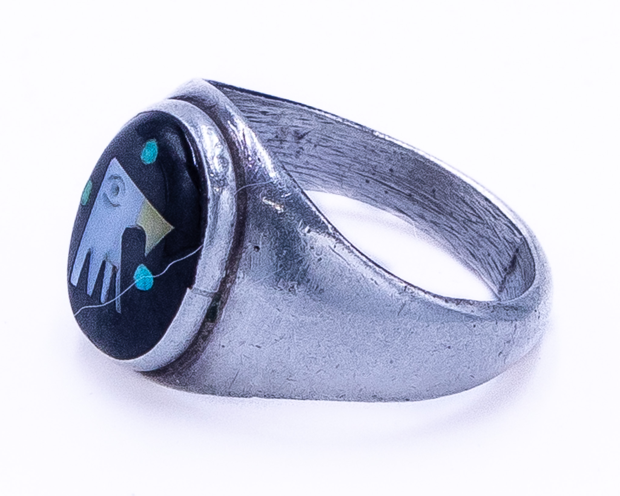 Signed DC Seciua Zuni Multi Stone Eagle Effigy Sterling Inlay Ring Sz 11, 10g