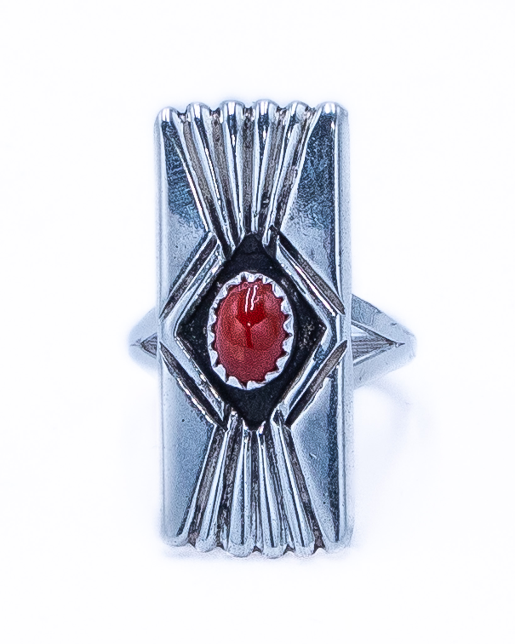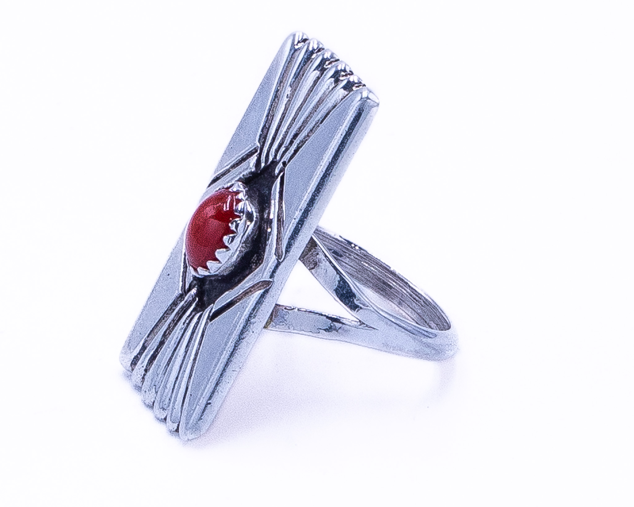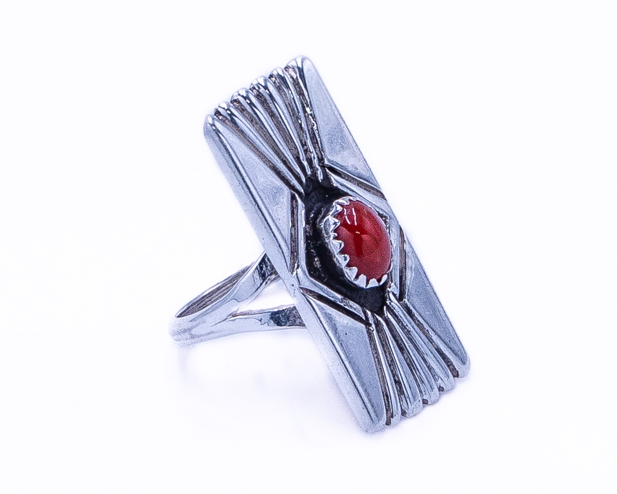 Vintage Navajo Coral Sterling Ring Signed X97 Sz 7, 7g-Cleaned