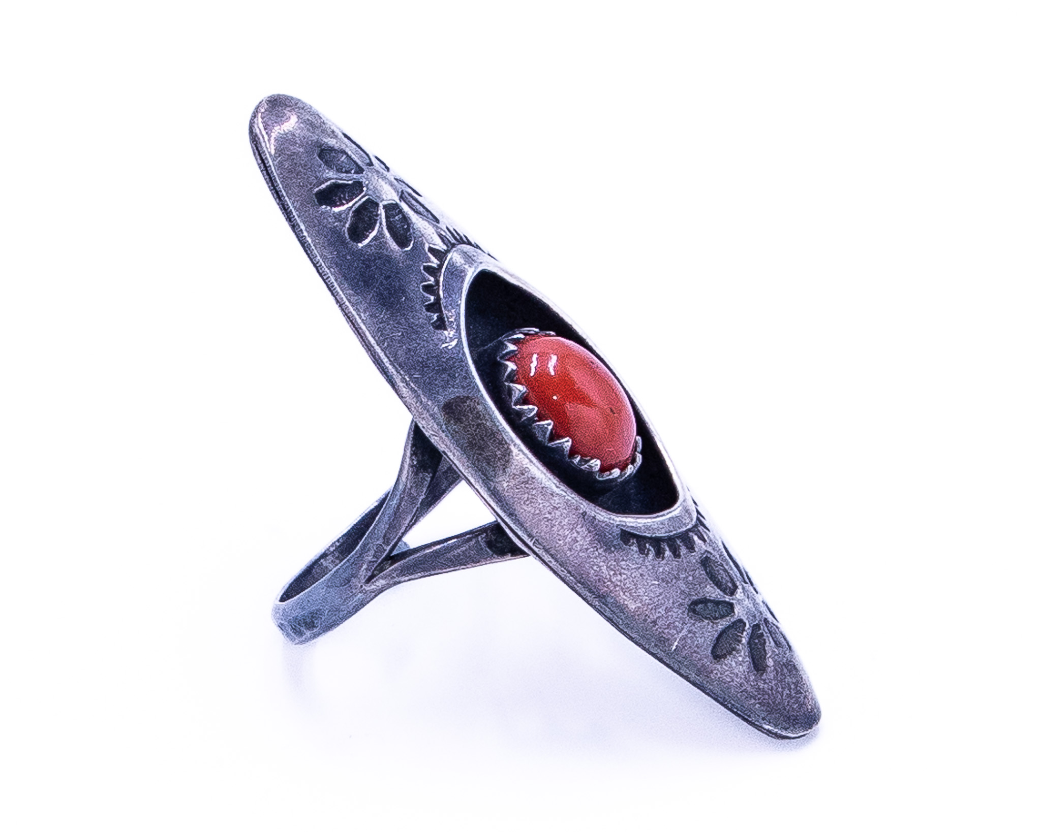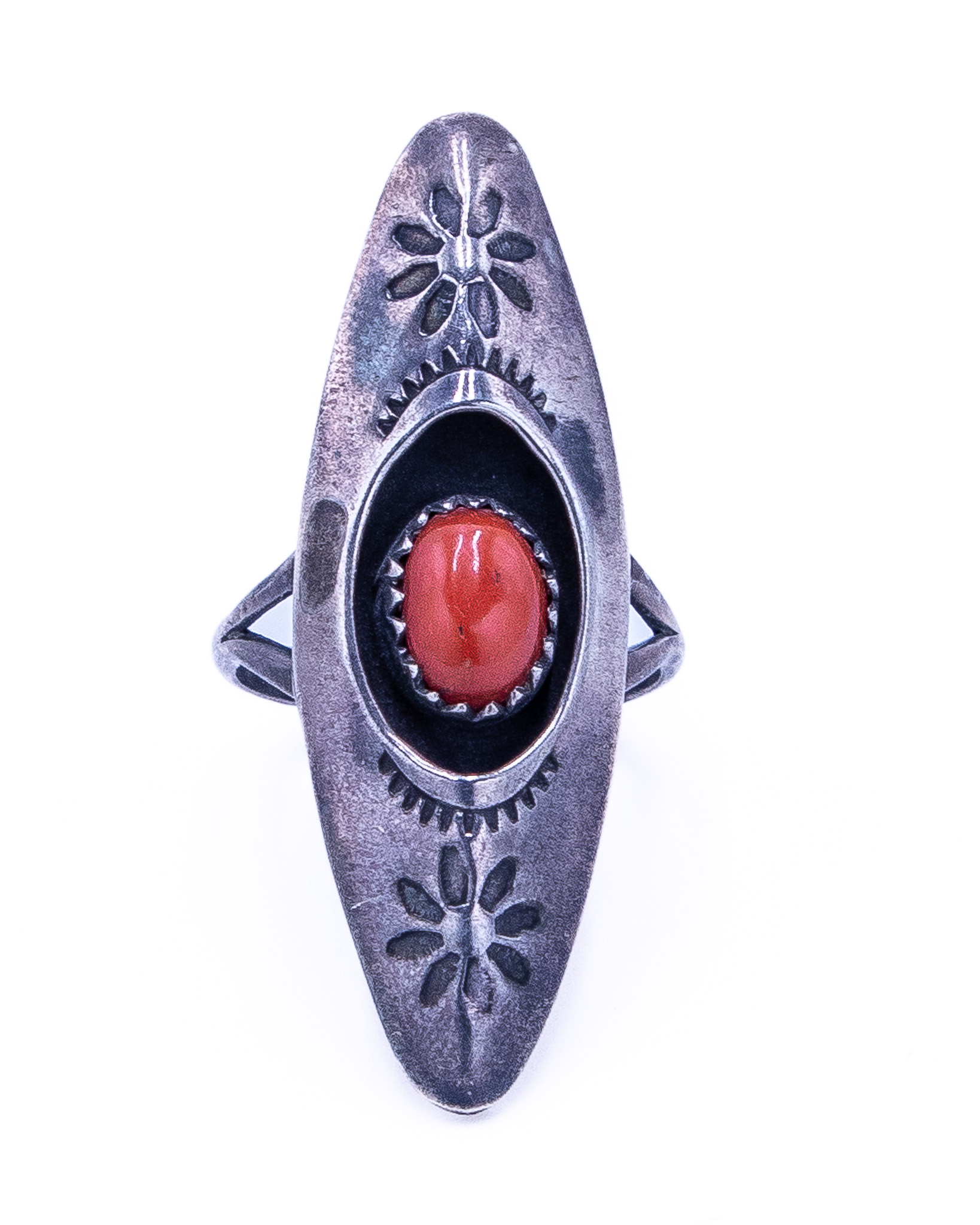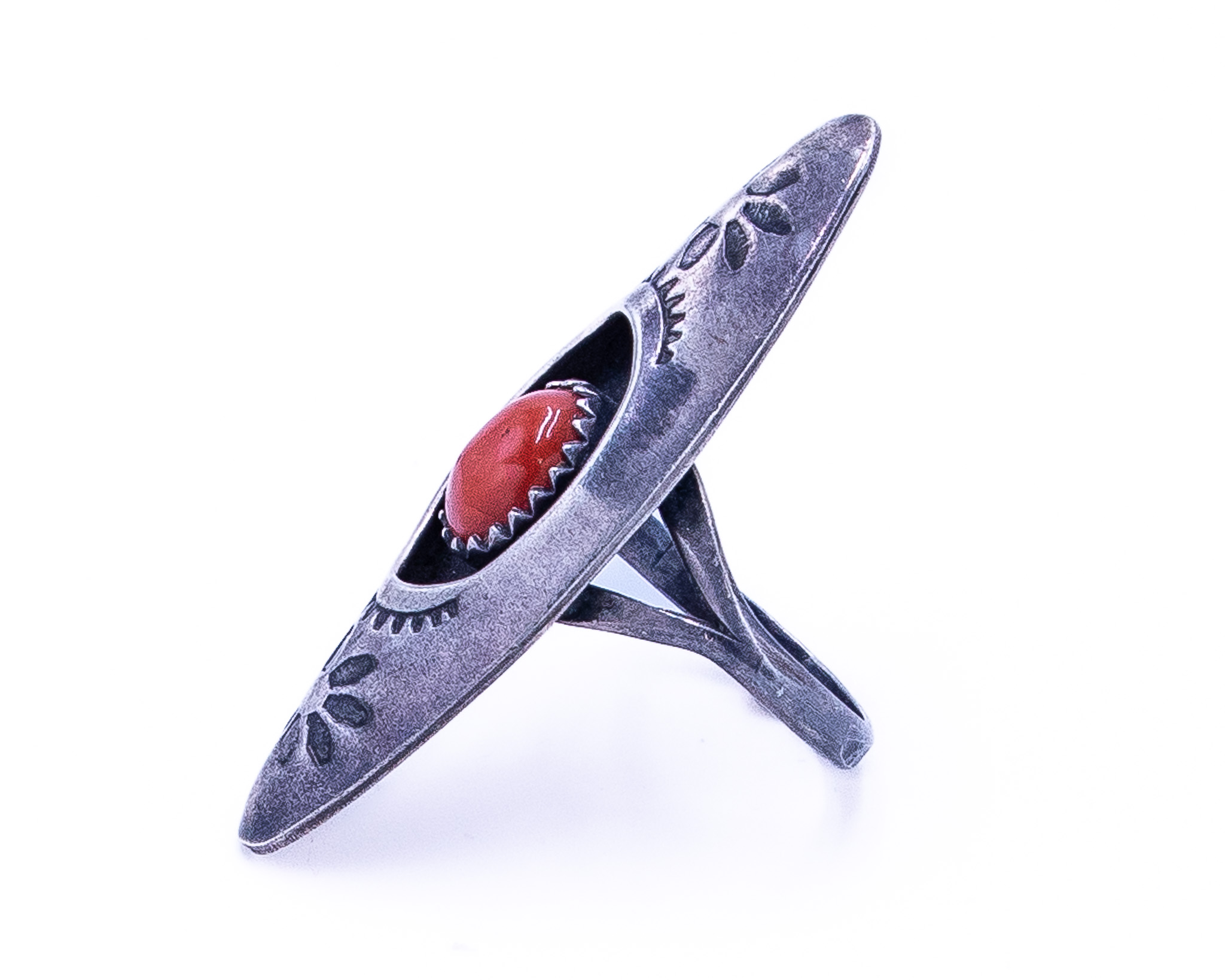 Vintage Navajo Coral Sterling Shadow Box Ring Sz 8.25, 6g
