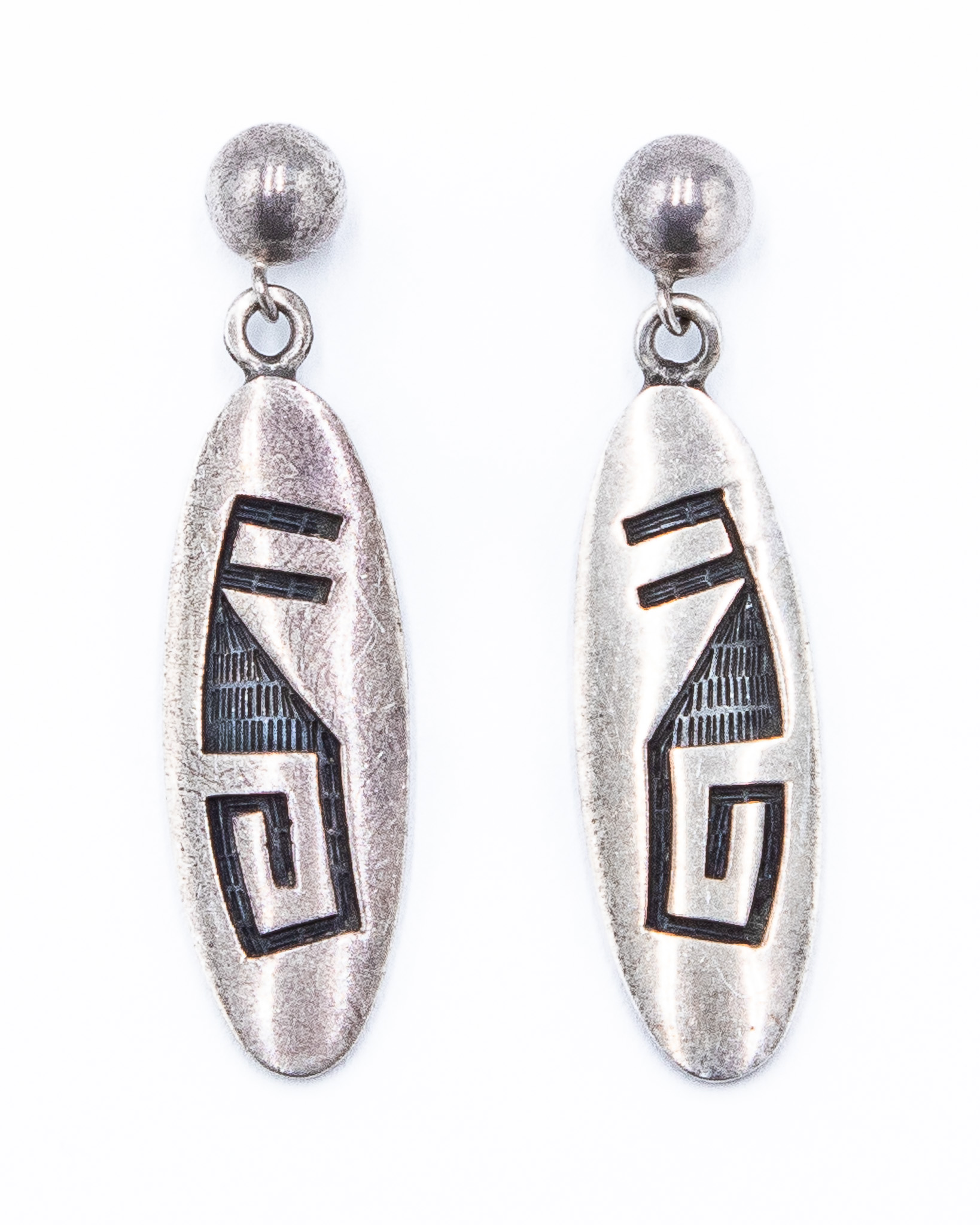 Stewart Tewawina Hopi Overlay Vintage Sterling Dangle Earrings 6.4g