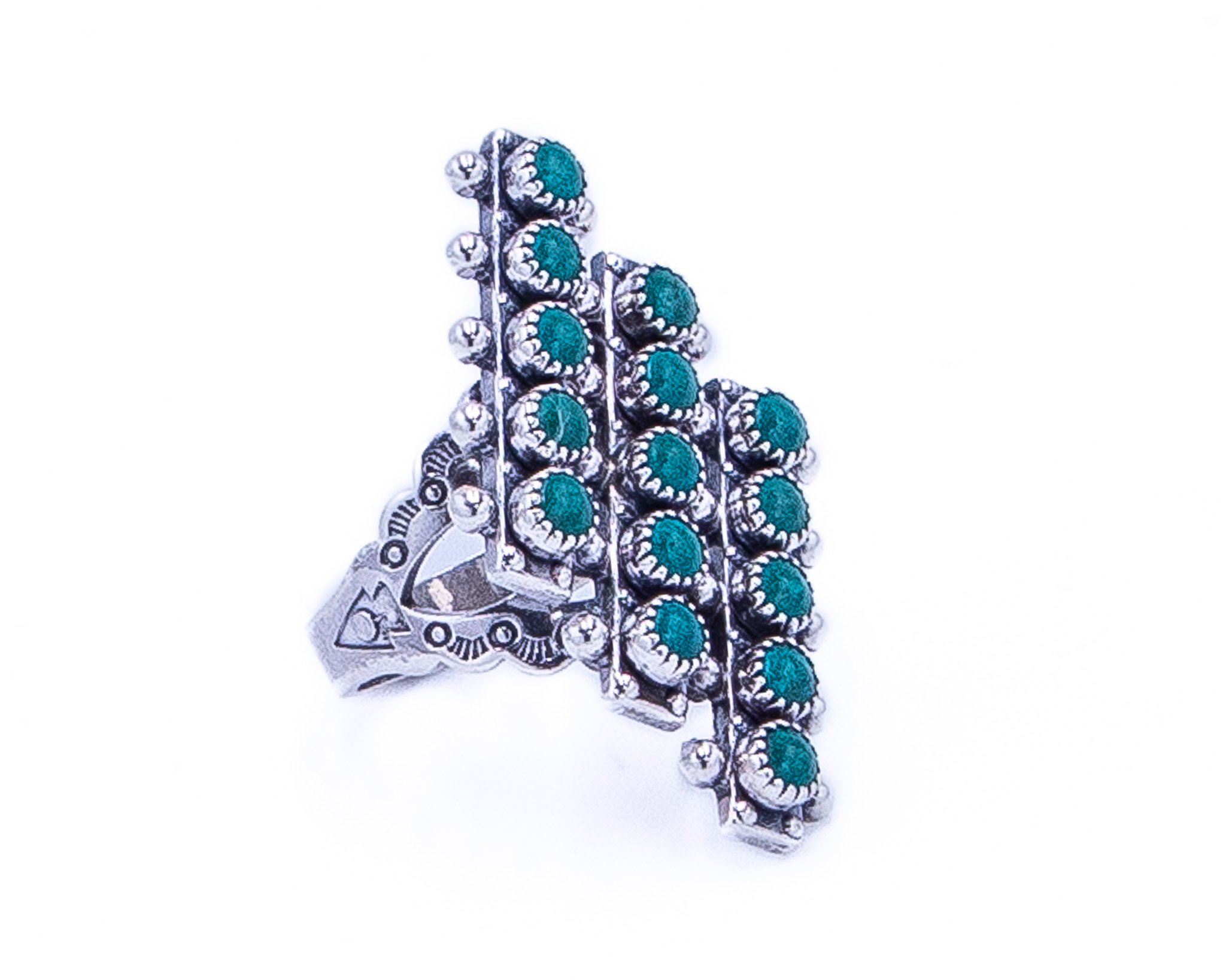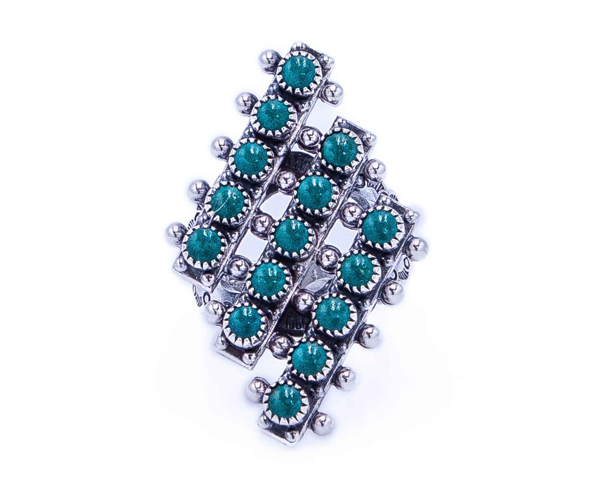 Vintage Zuni Snake Eye Green Turquoise Sterling Ring Sz 5.75, 8.5g