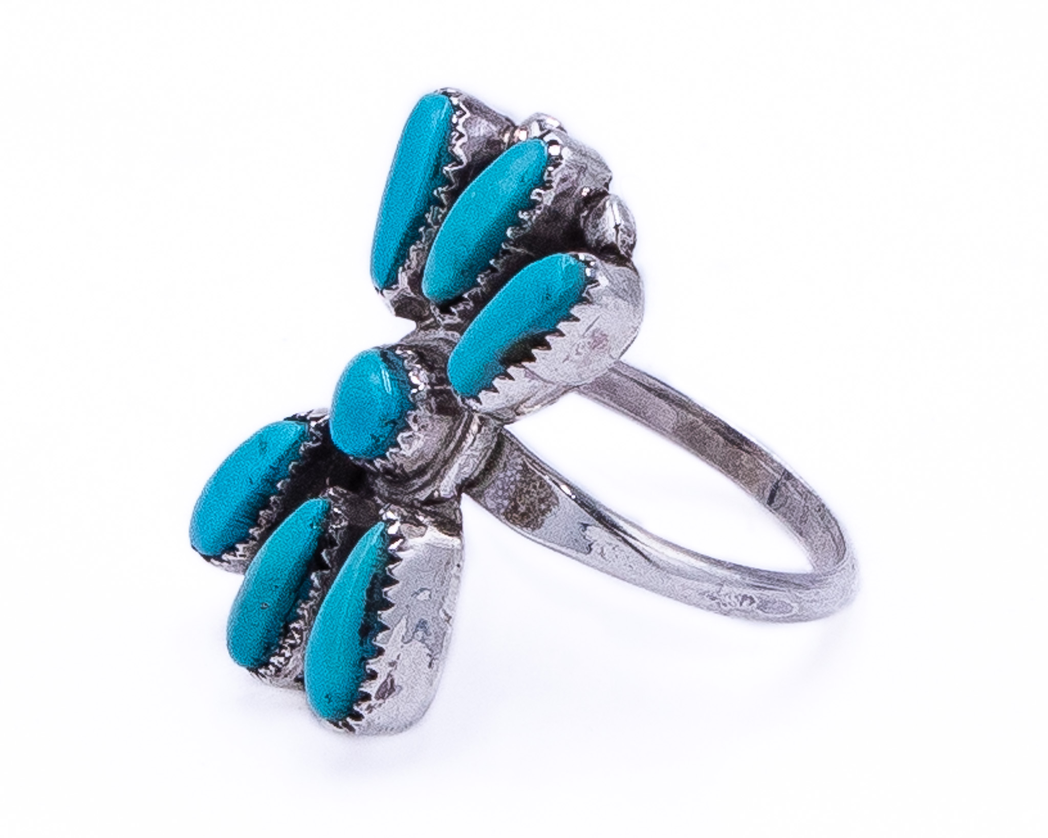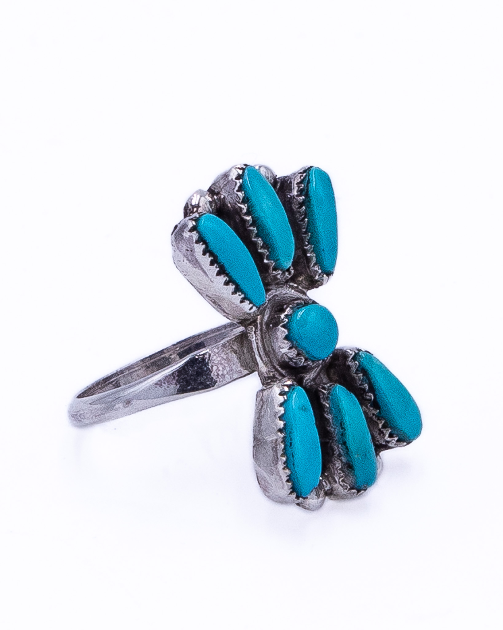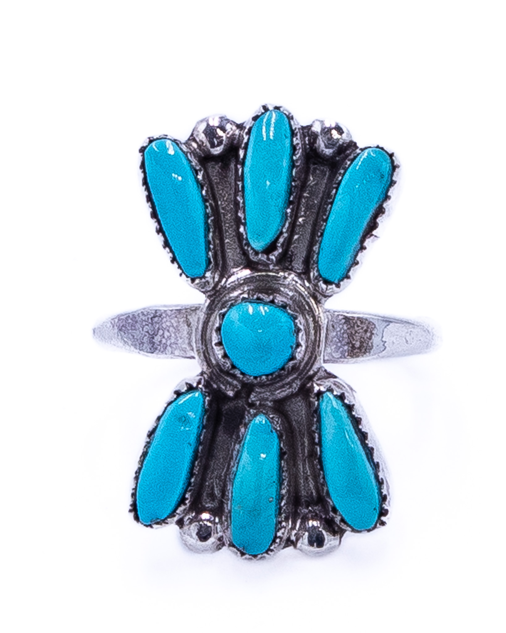 Vintage Zuni Petit Point Round Turquoise Sterling Ring Sz 6.5, 3.5g