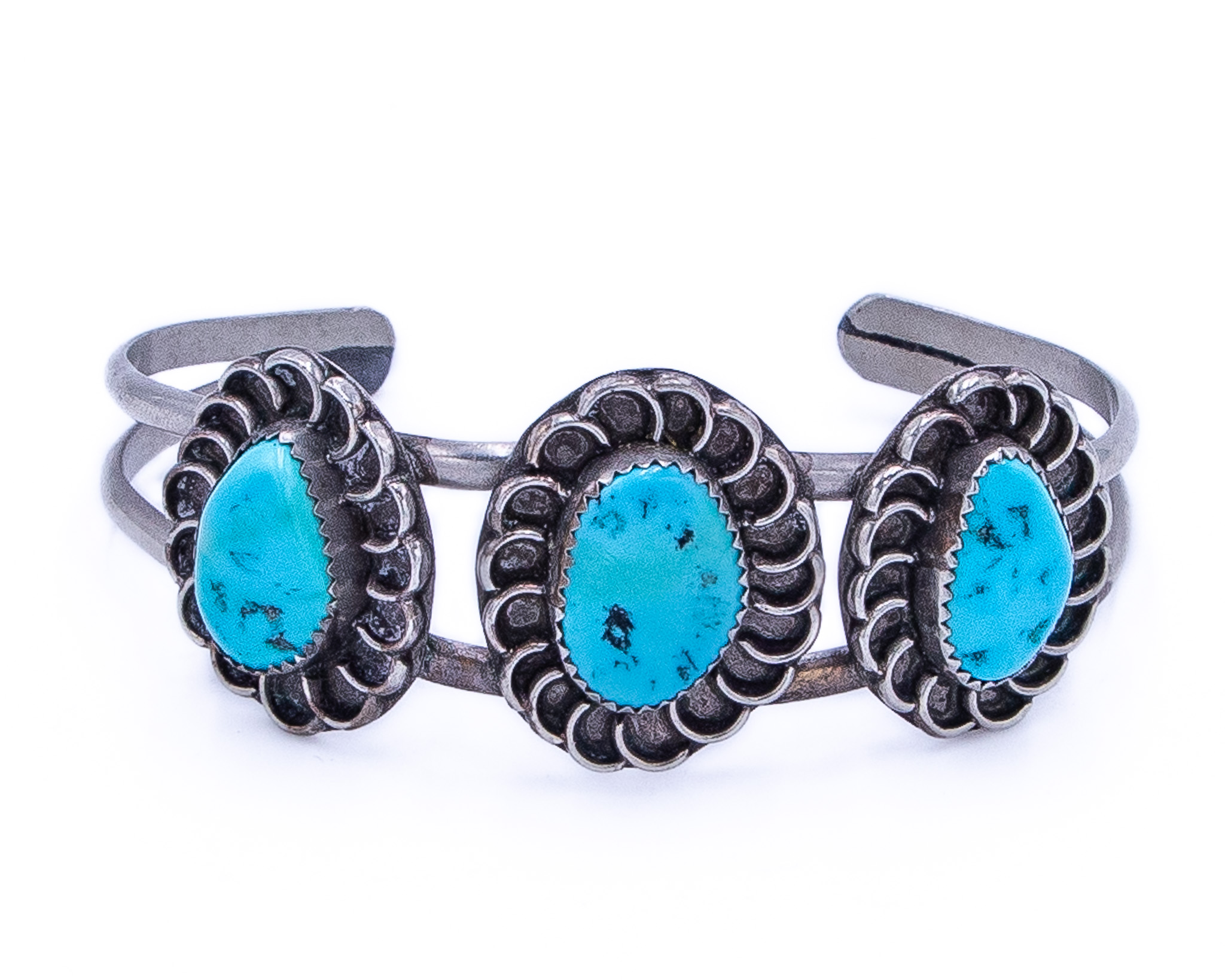Vintage Navajo Turquoise Sterling Cuff Bracelet 25.5g