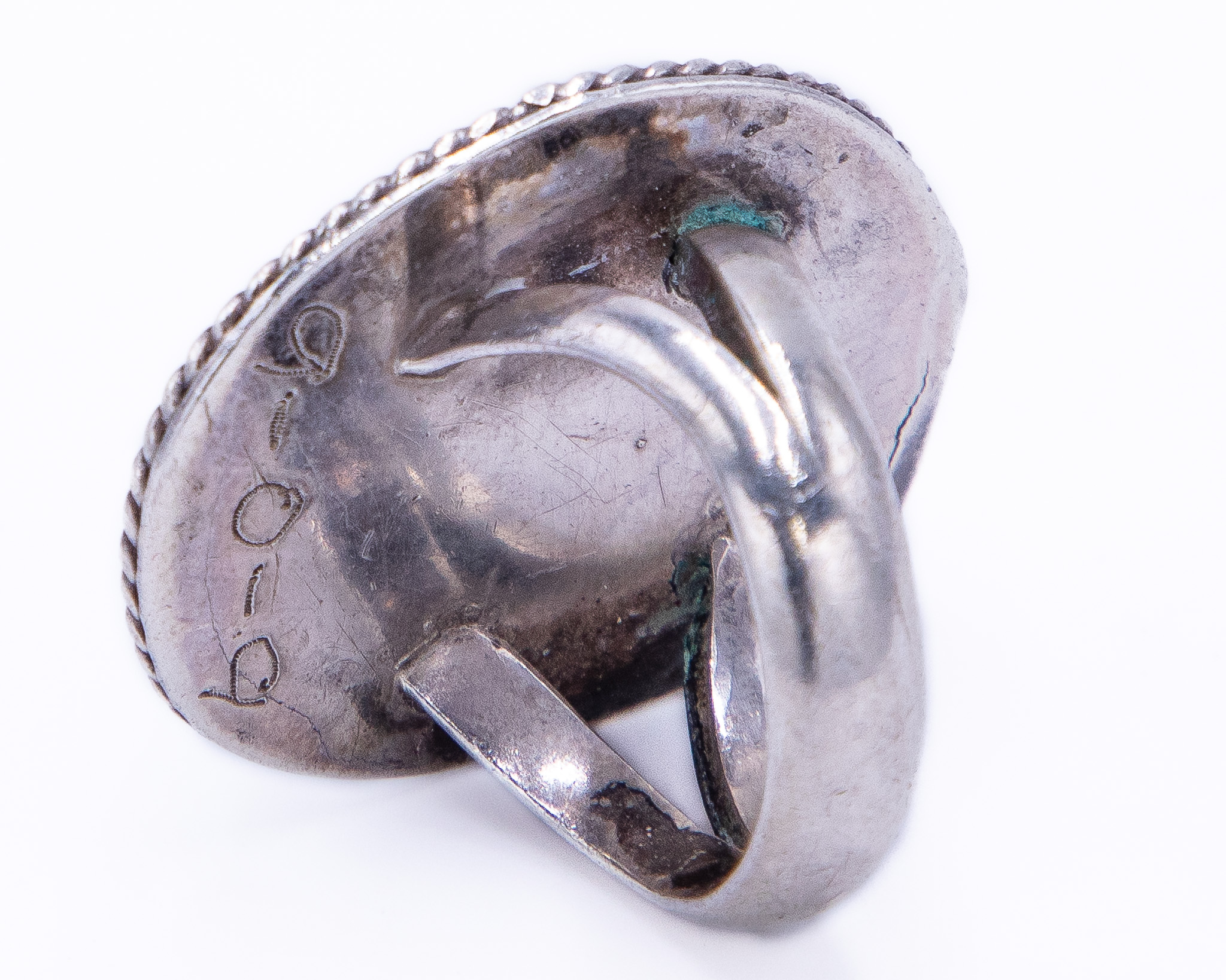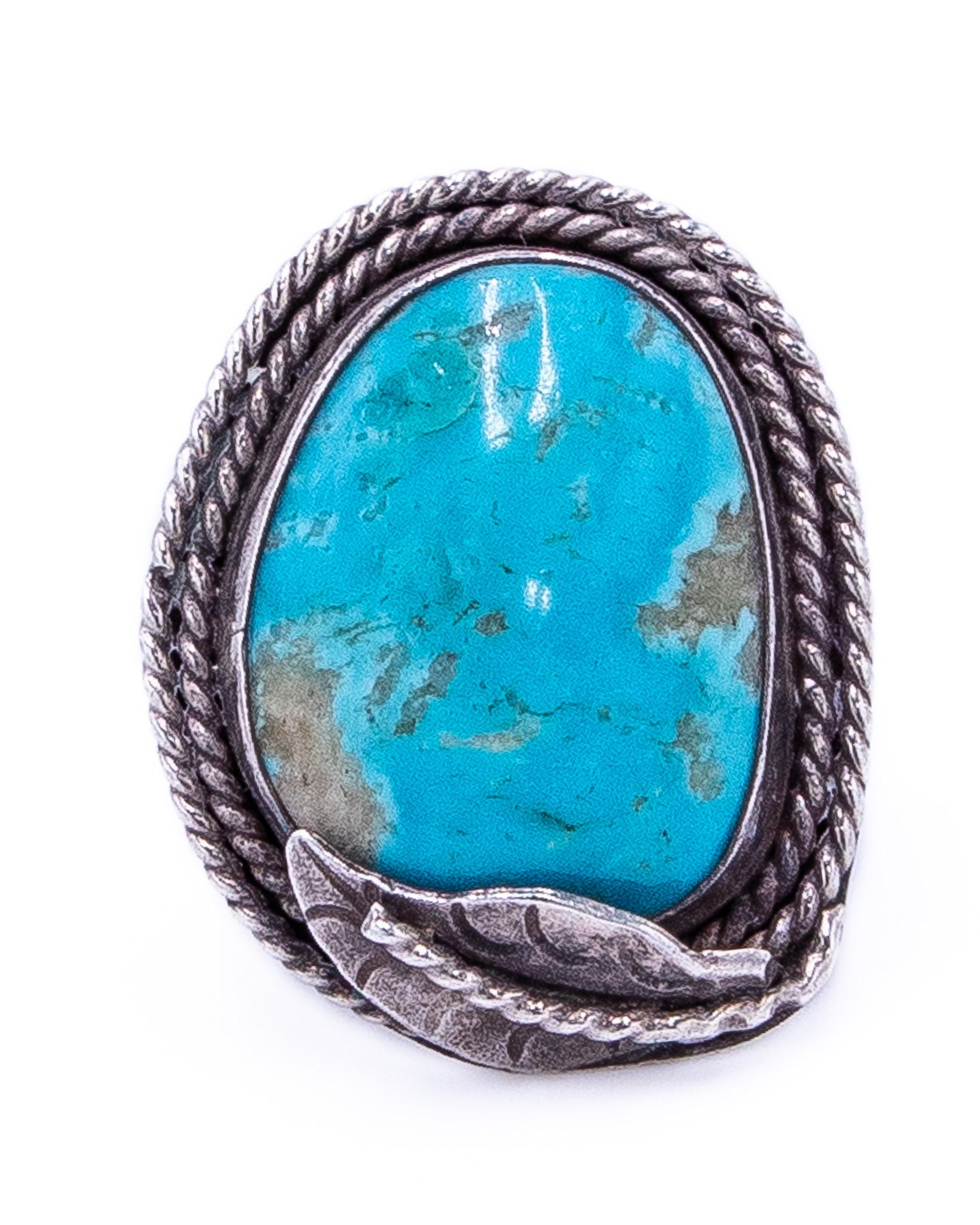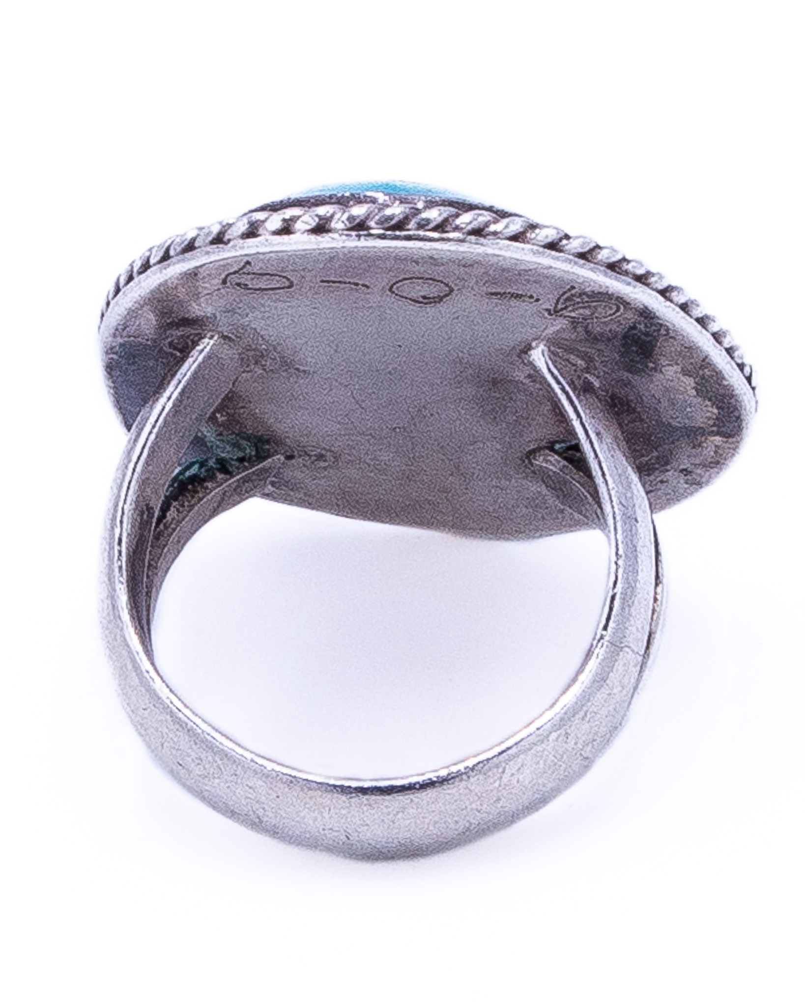 Signed b-o-b Navajo Turquoise Ring Sz 8.75, 17g-Cleaned
