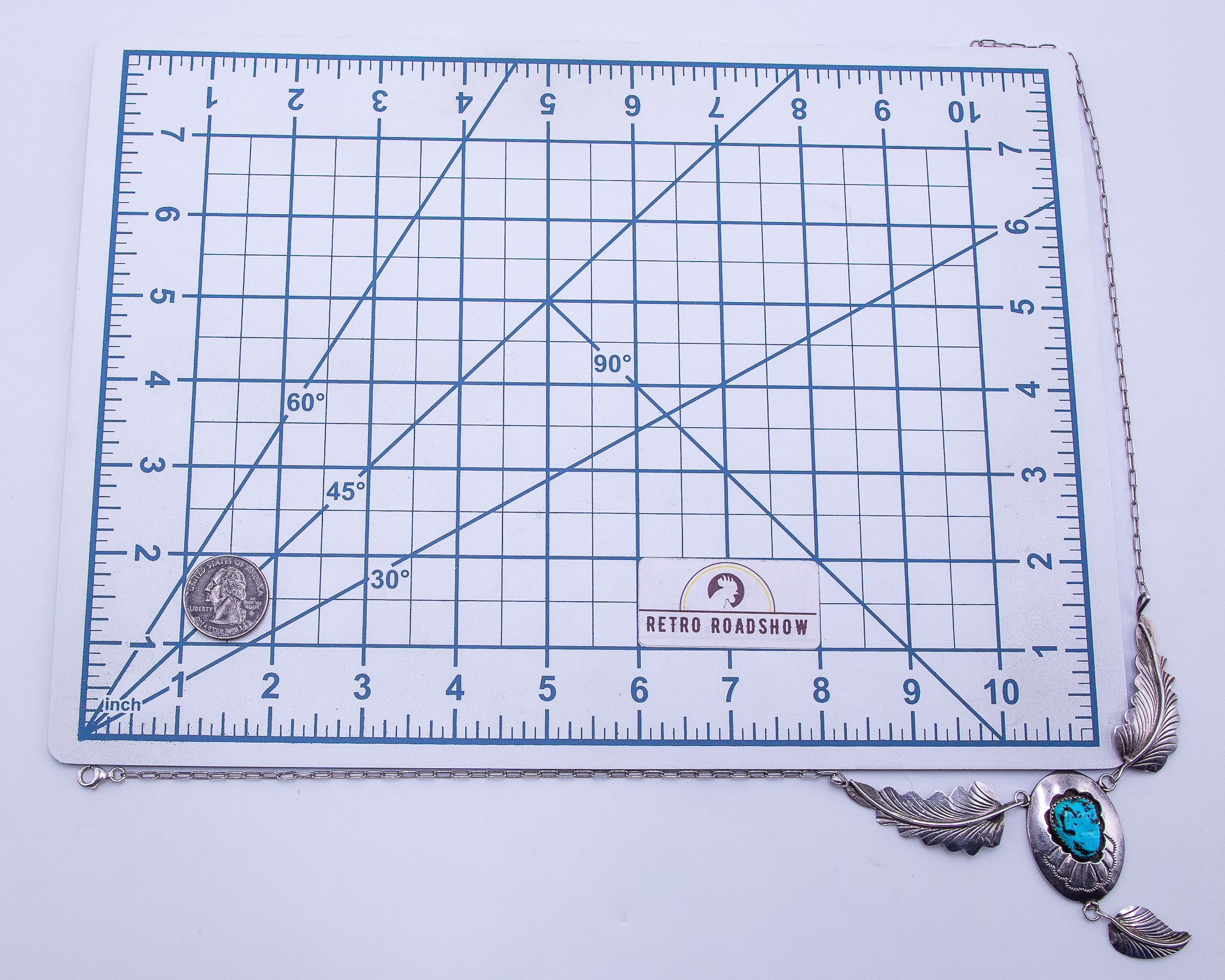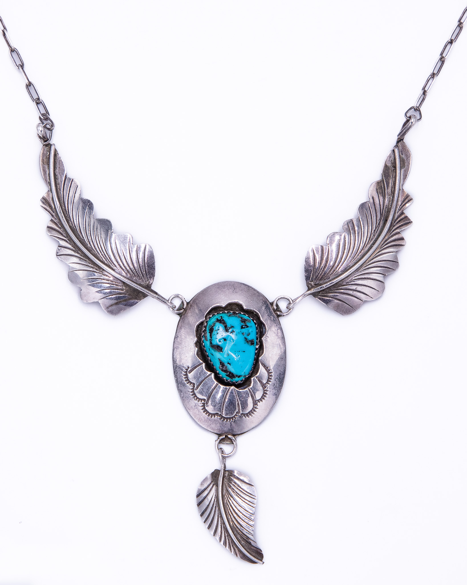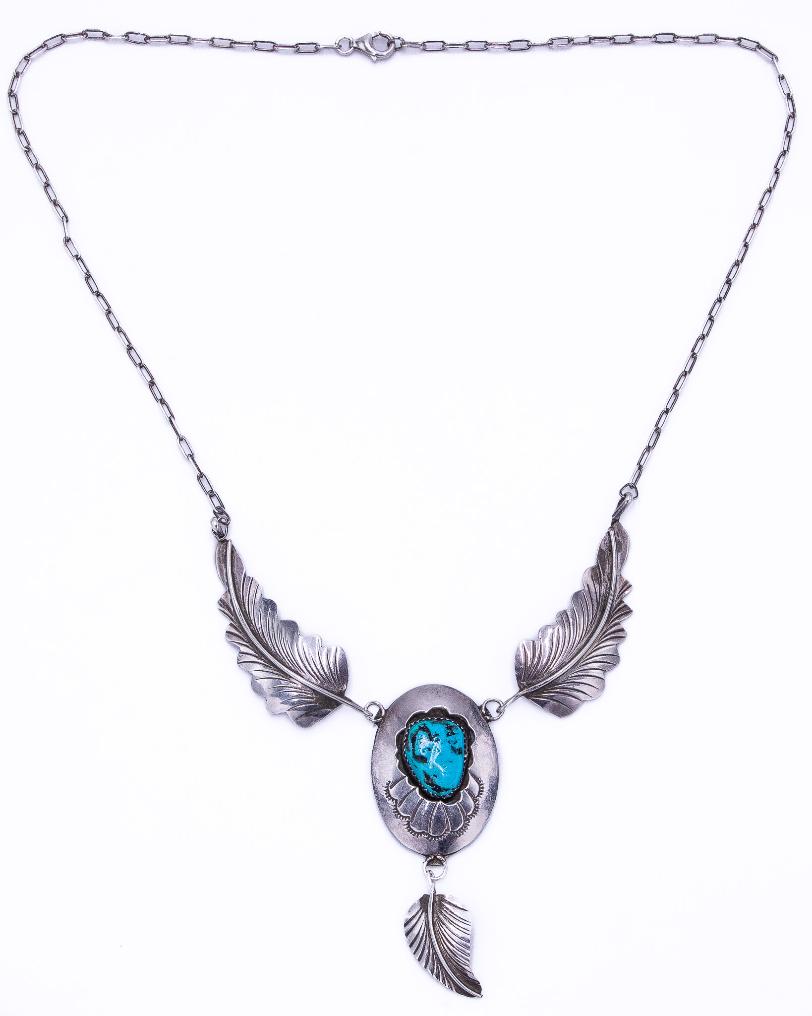 Margie Chee Navajo Turquoise Sterling Feather Dangle Necklace 20g