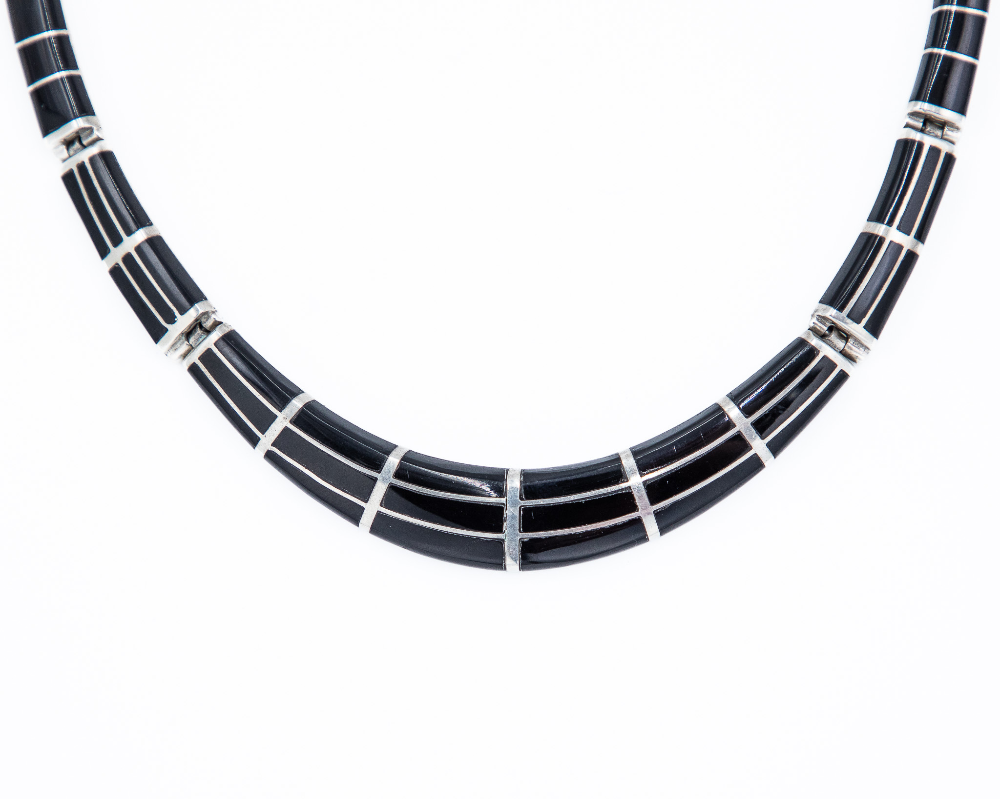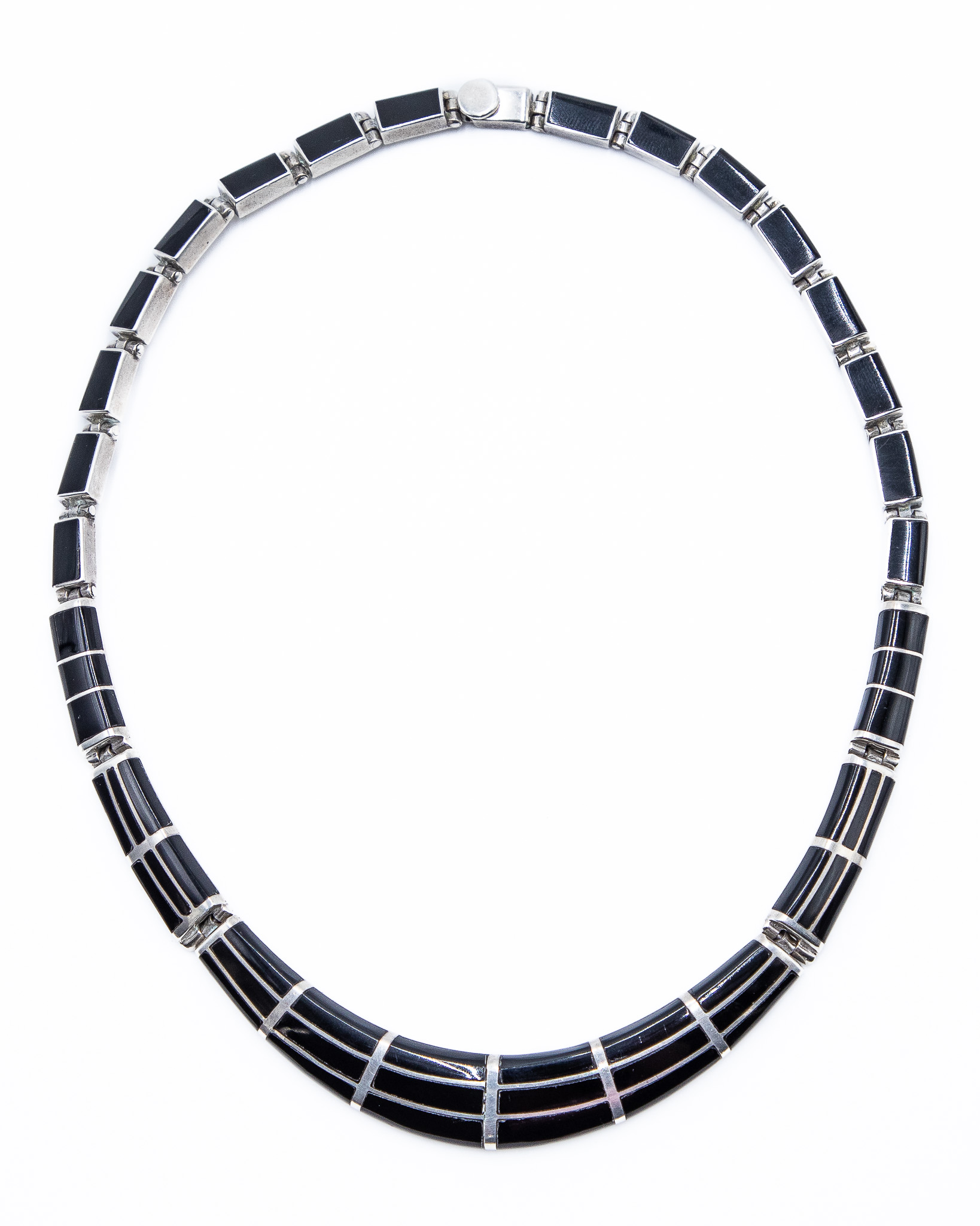 Vintage Taxco TS-101 950 Sterling Onyx Bib Collar Necklace 64g