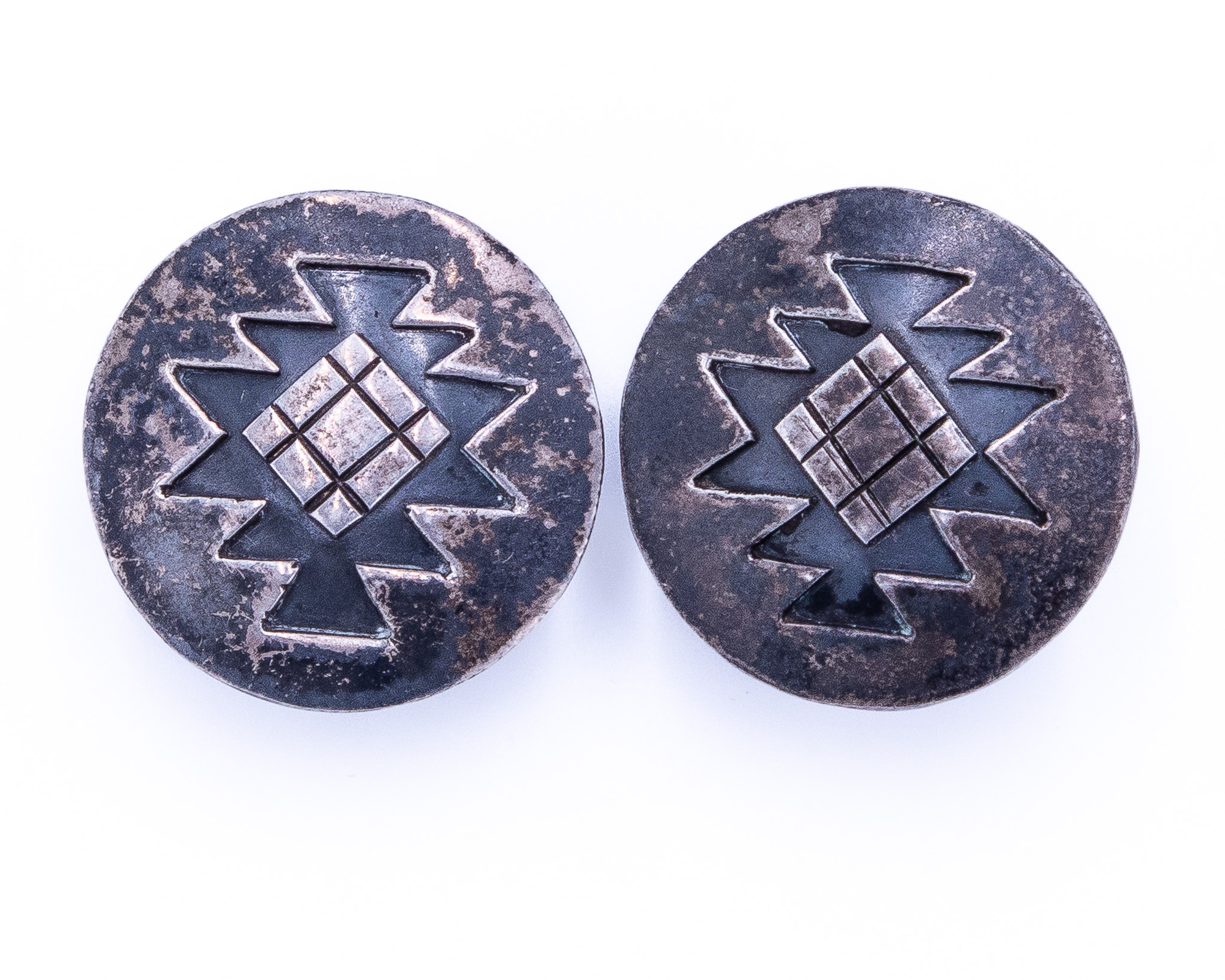 Vintage Hopi Sterling Overlay Screw Back 11g
