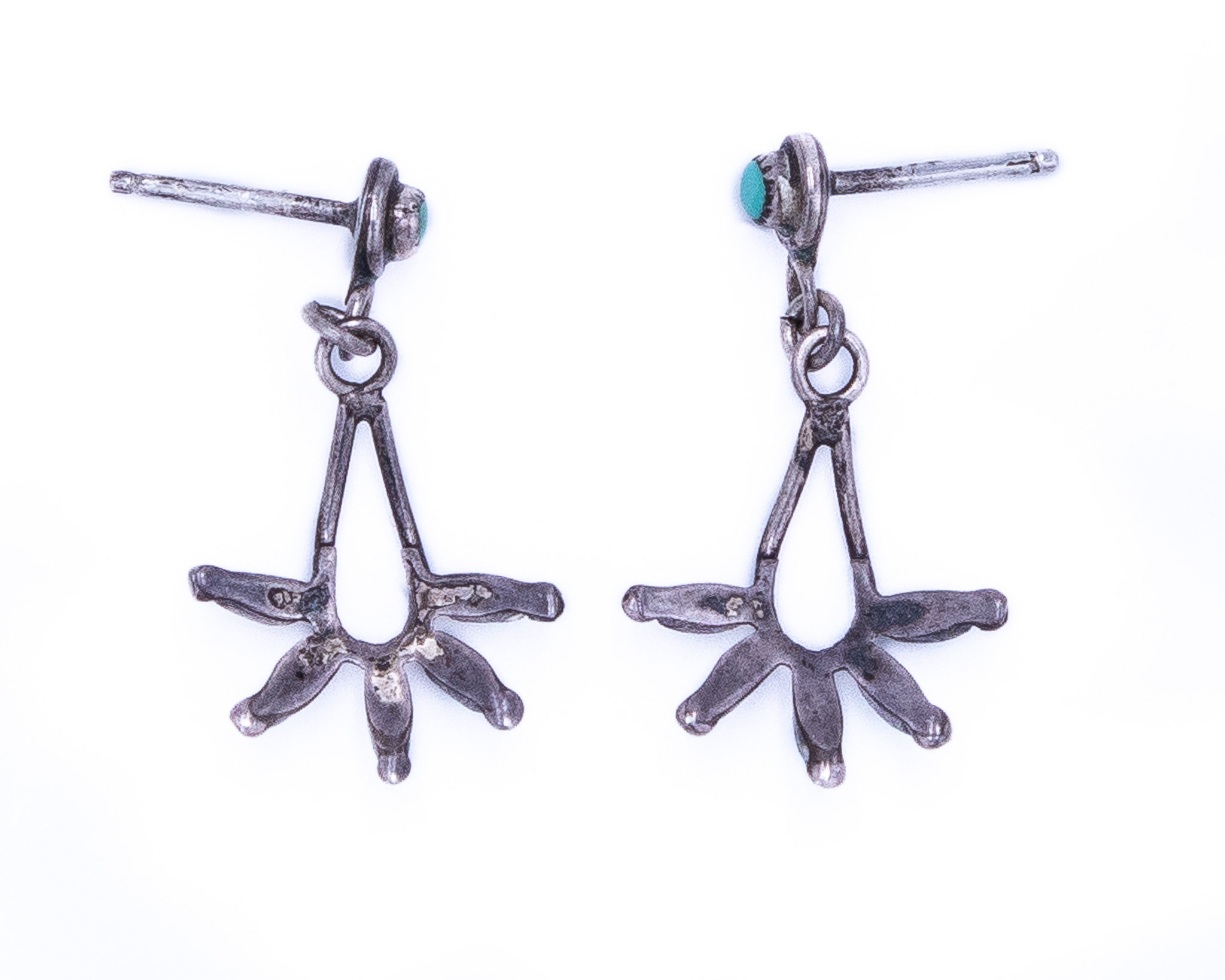 Vintage Zuni Needlepoint Turquoise Sterling Earrings 2g