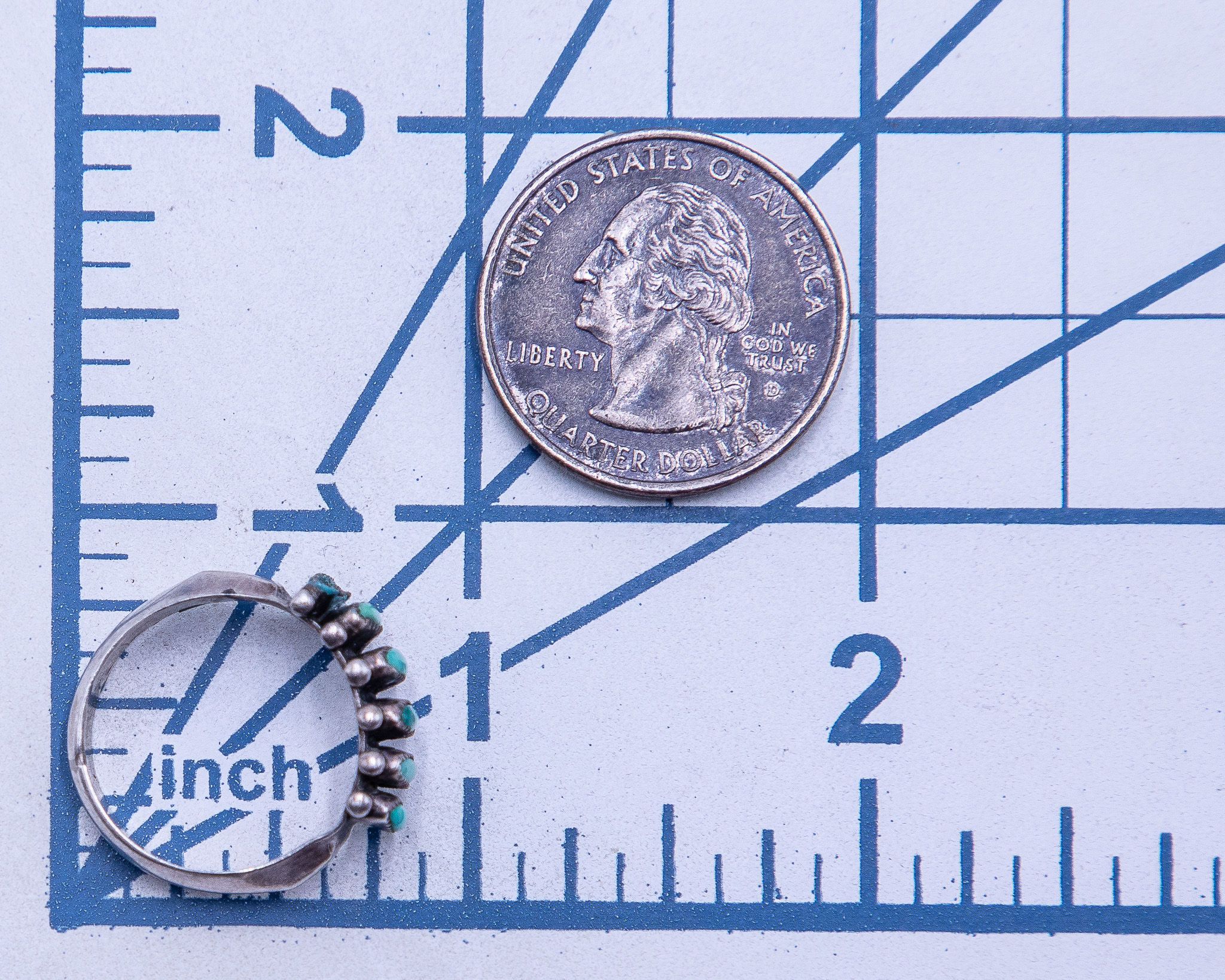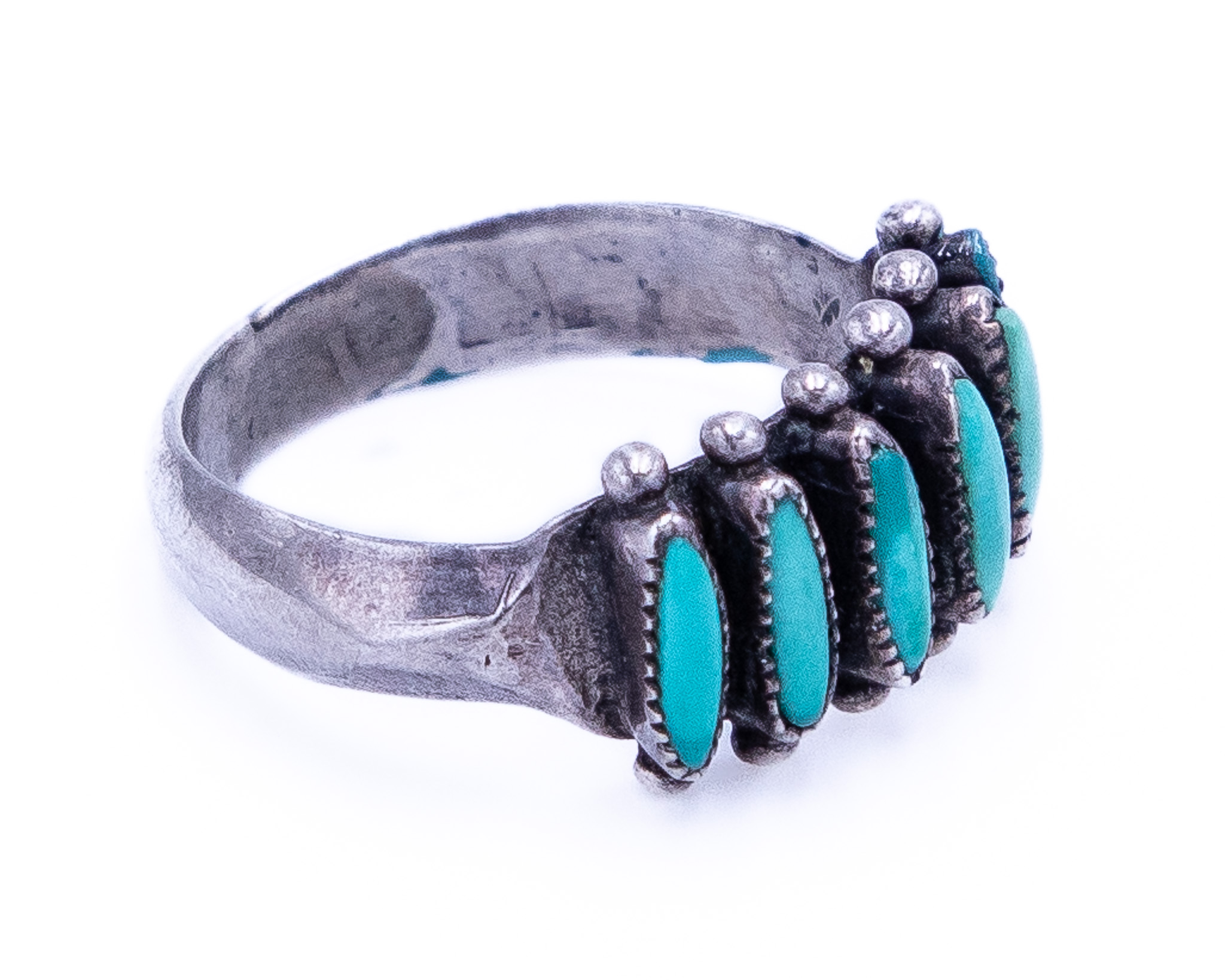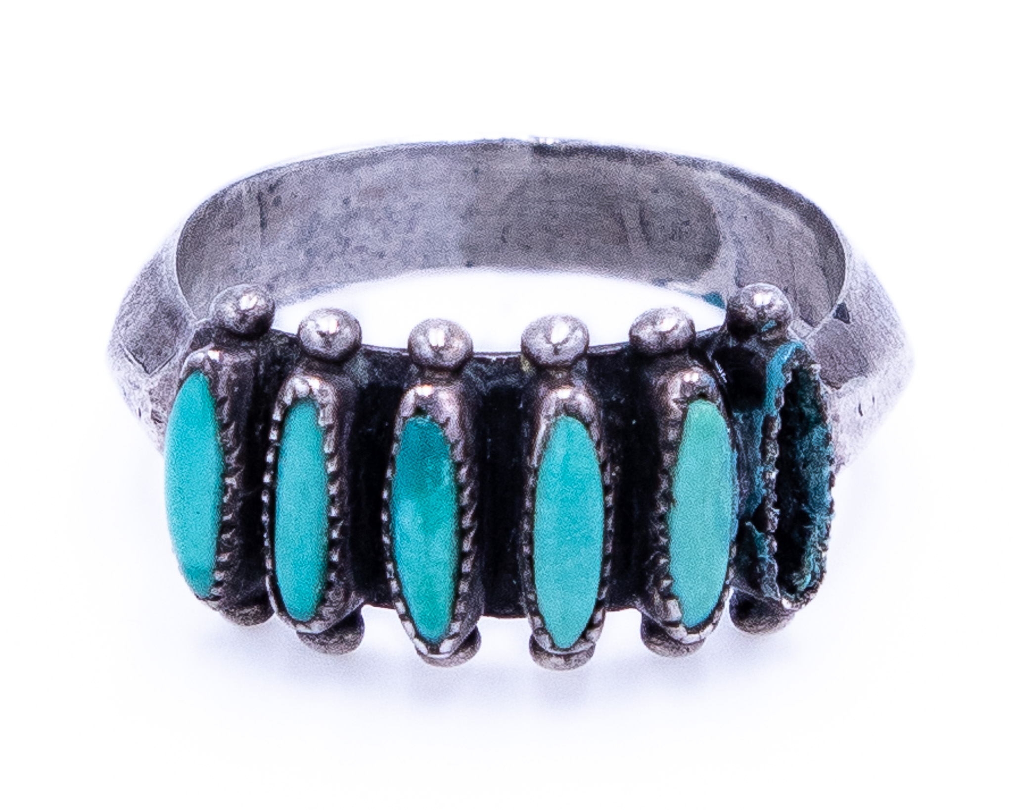 Janice Paloma Zuni Needlepoint Turquoise Sterling Ring Sz 7 As Is 4g-Missing Stone Shown in Photo
