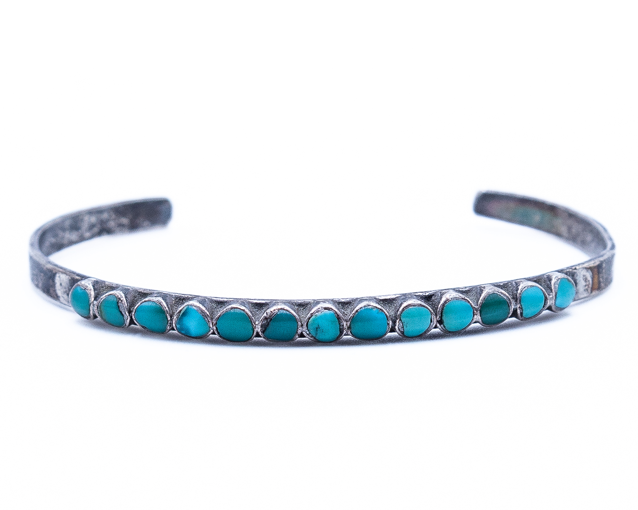 Vintage Zuni Dishta Blue Green Turquoise Sterling Cuff Bracelet 7g