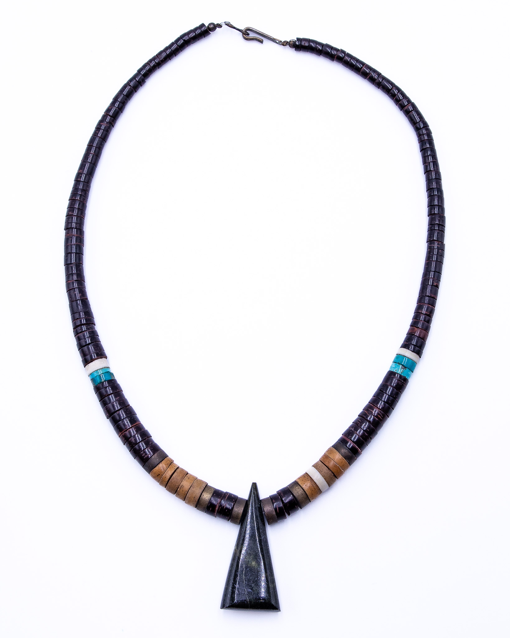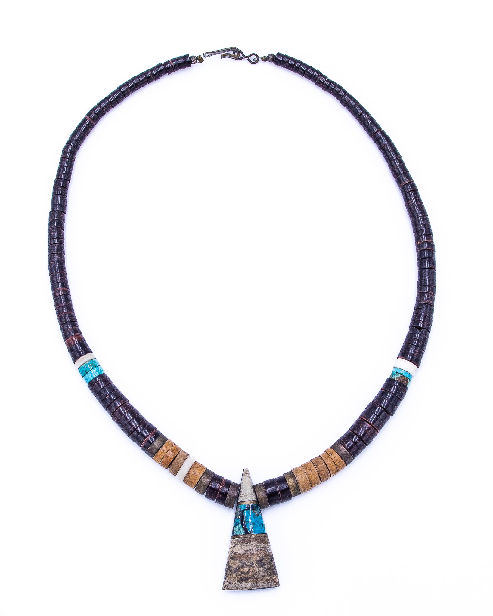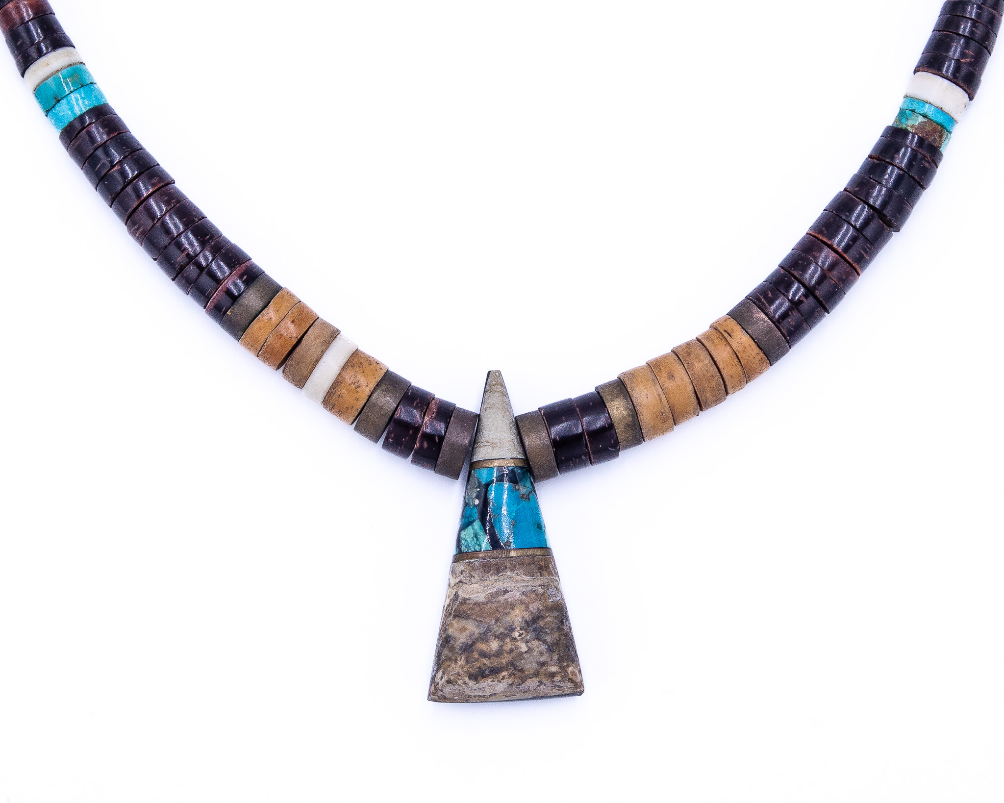 Vintage Santo Domingo Petrified Wood Turquoise Heishi Necklace 35g