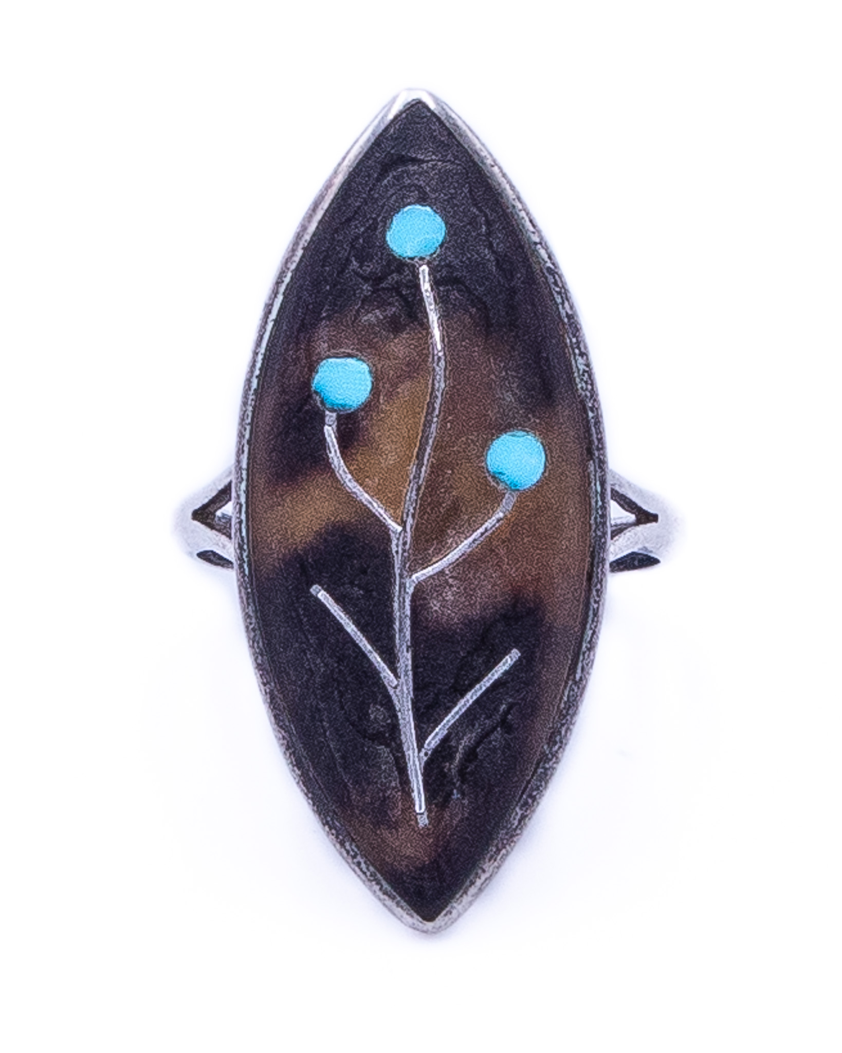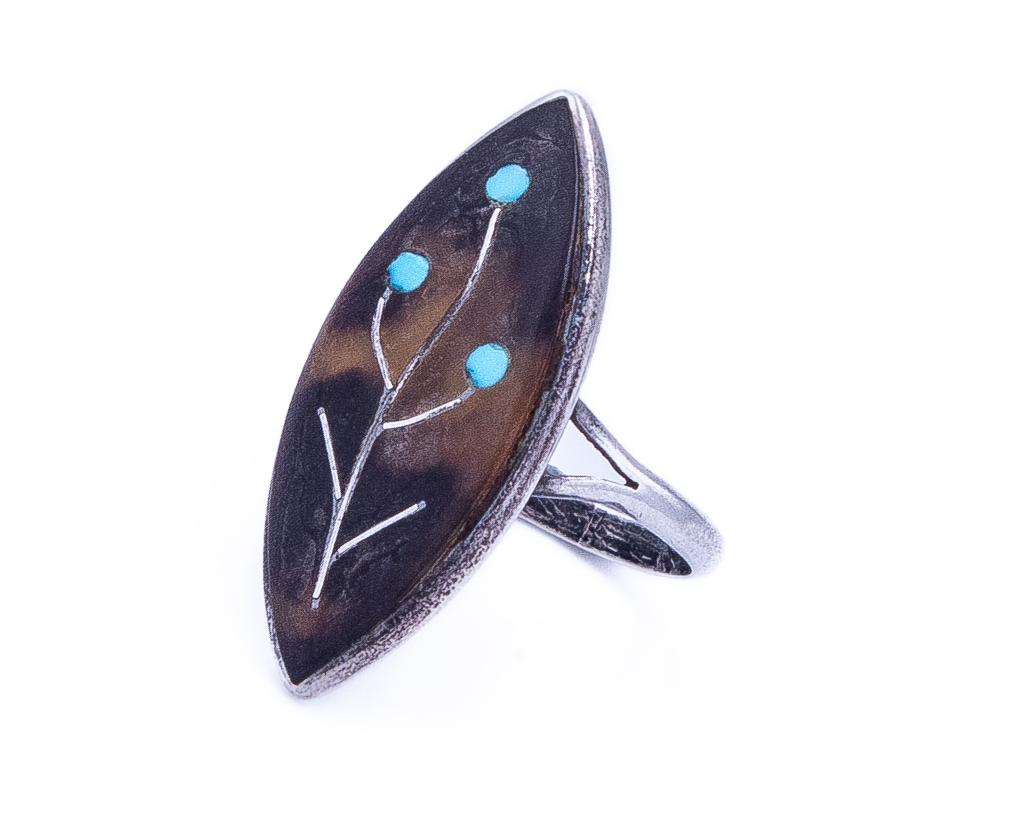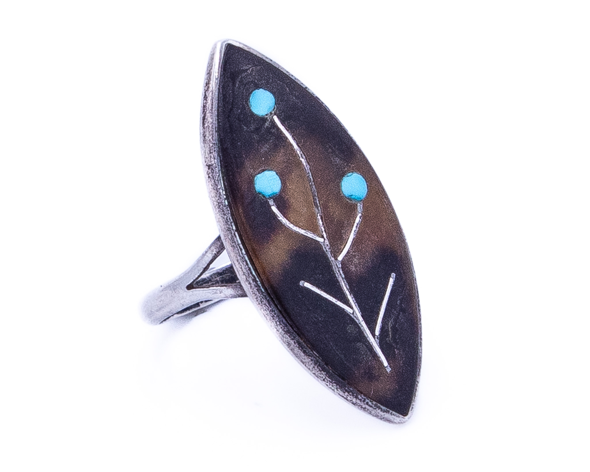 Vintage Zuni Brown Agate Turquoise Sterling Inlay Ring Sz 7.75, 4g