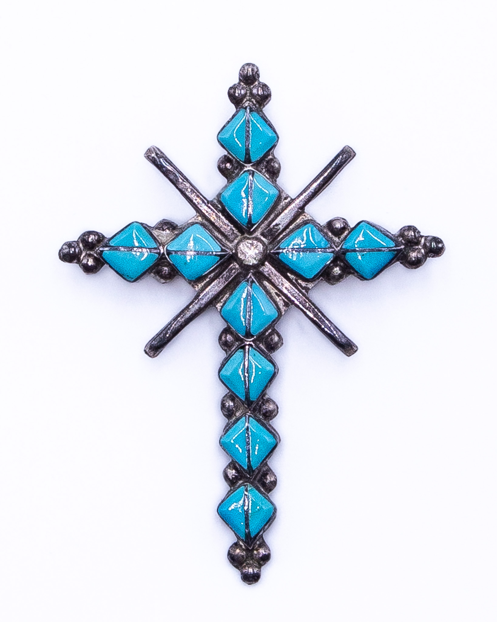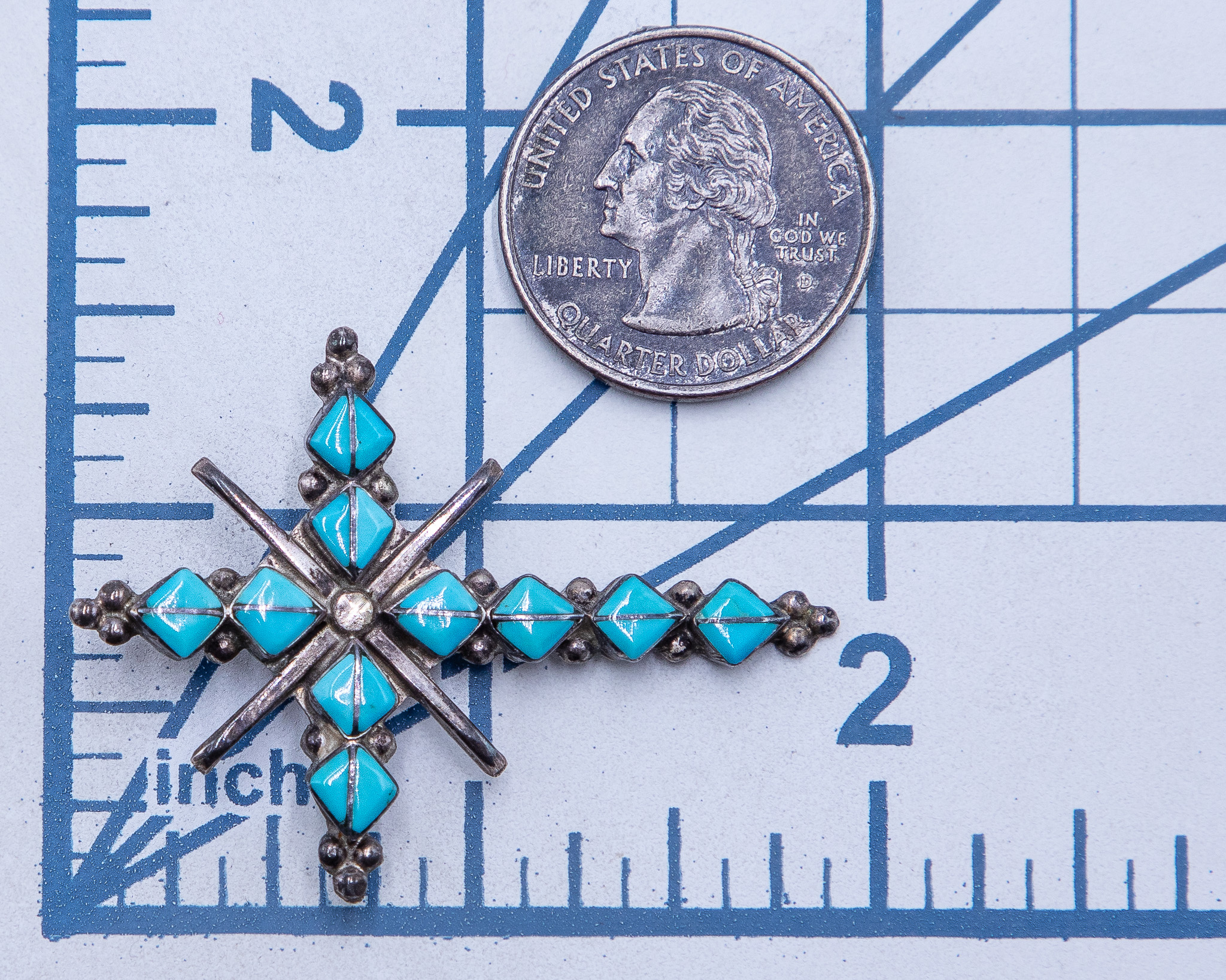 Silvia Noche Zuni Turquoise Sterling Cross Brooch Pendant 6g