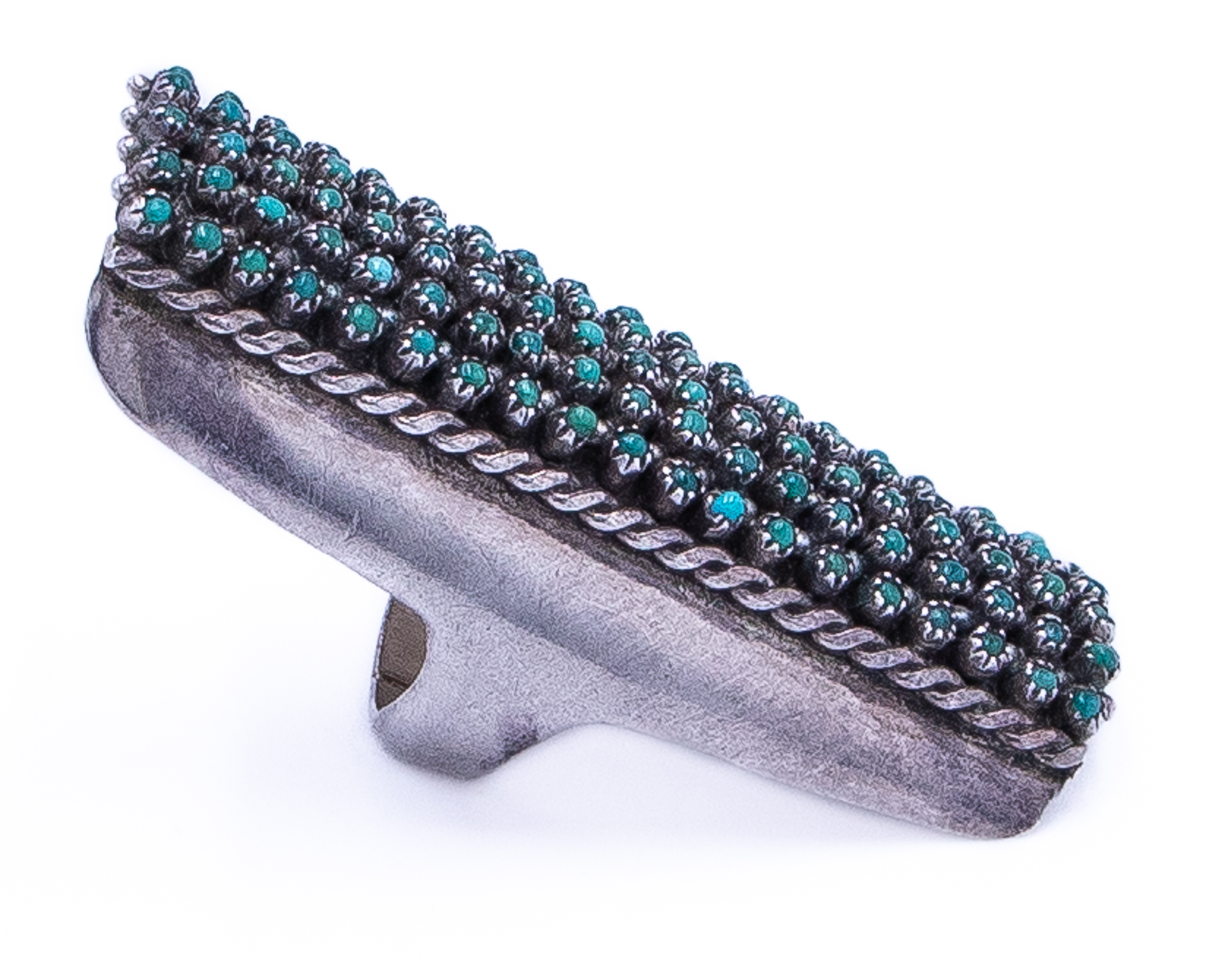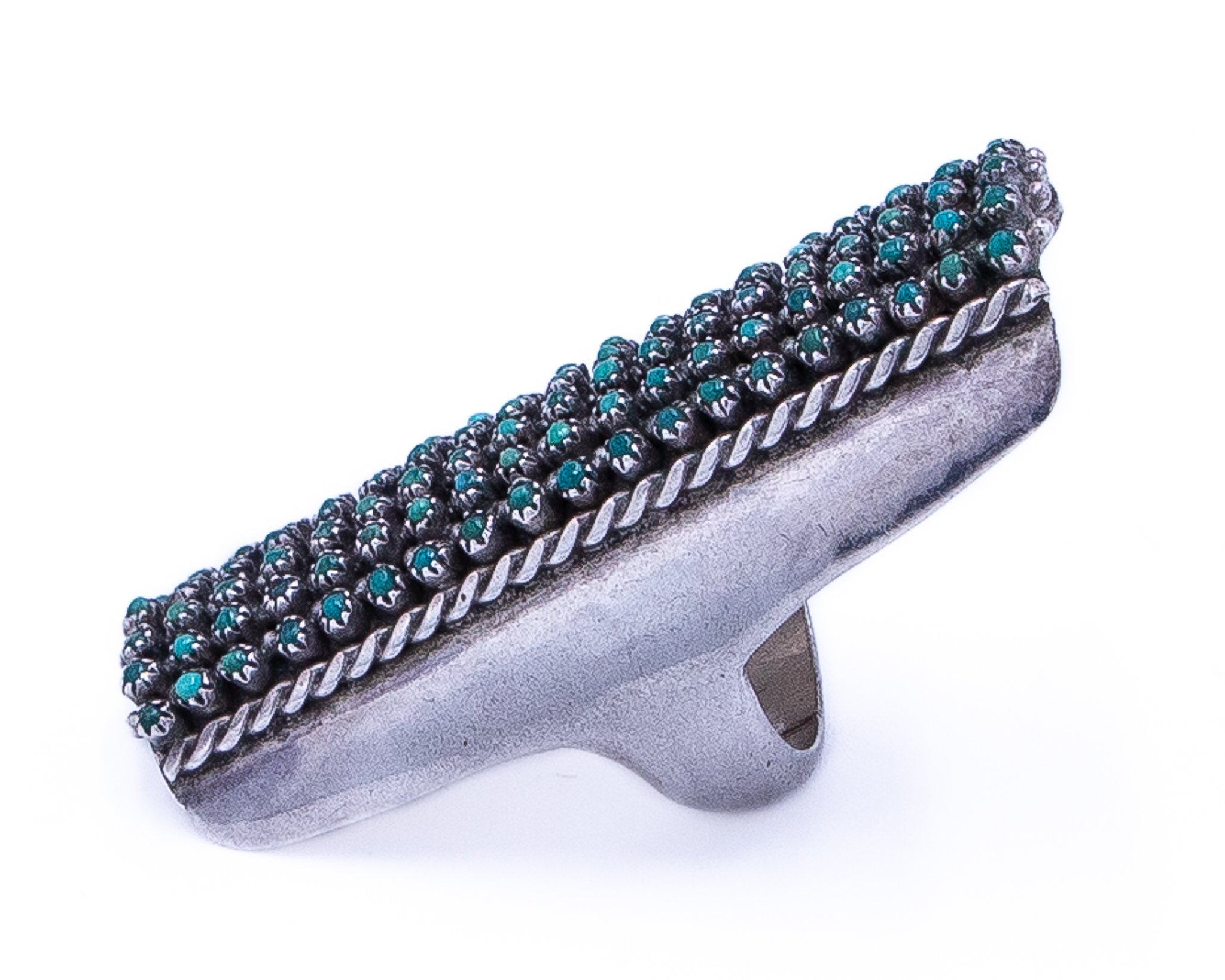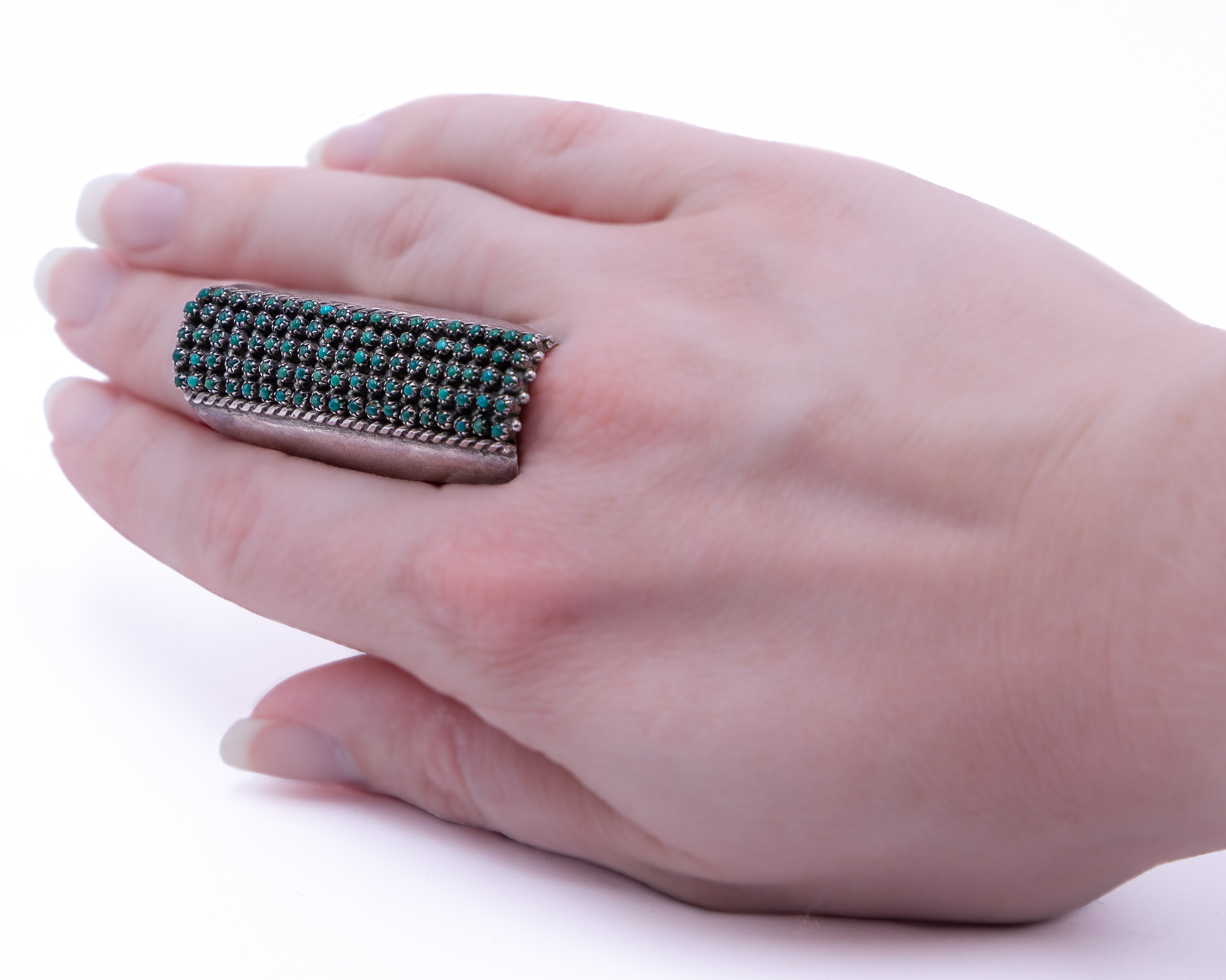 Pete & Vivian Haloo Snake Eye Green Turquoise Cluster Sterling Ring Sz 8.25, 19g