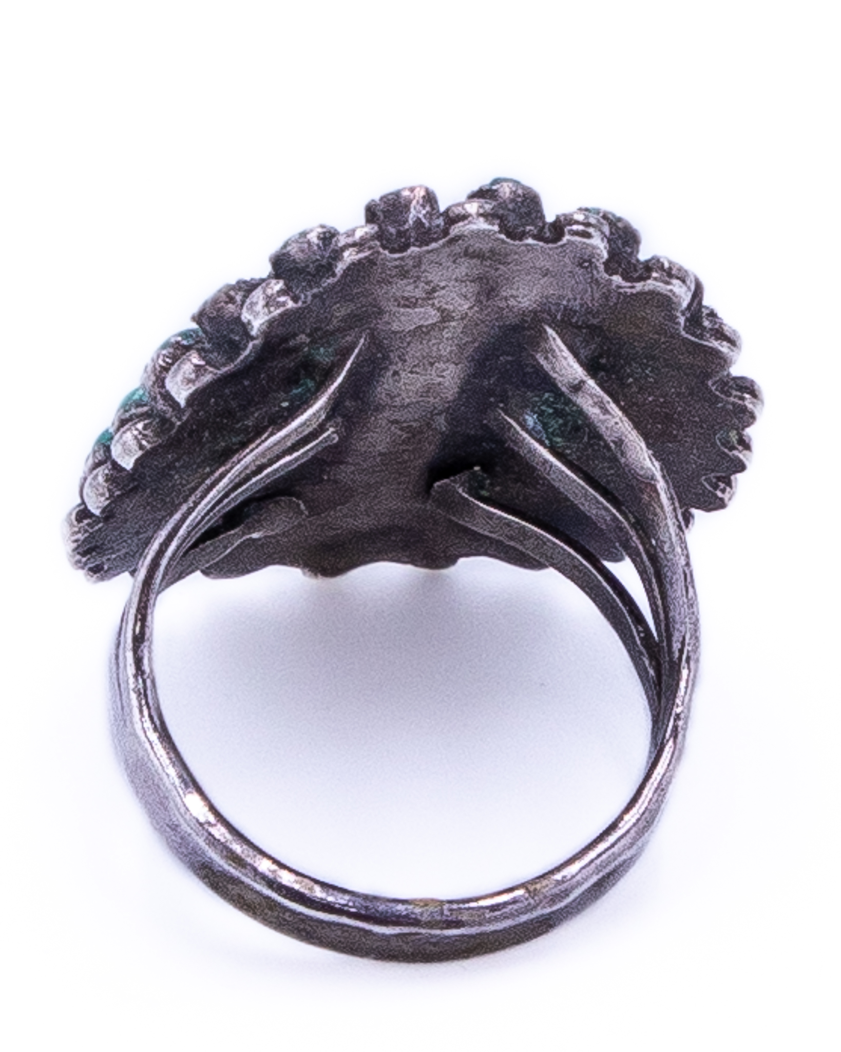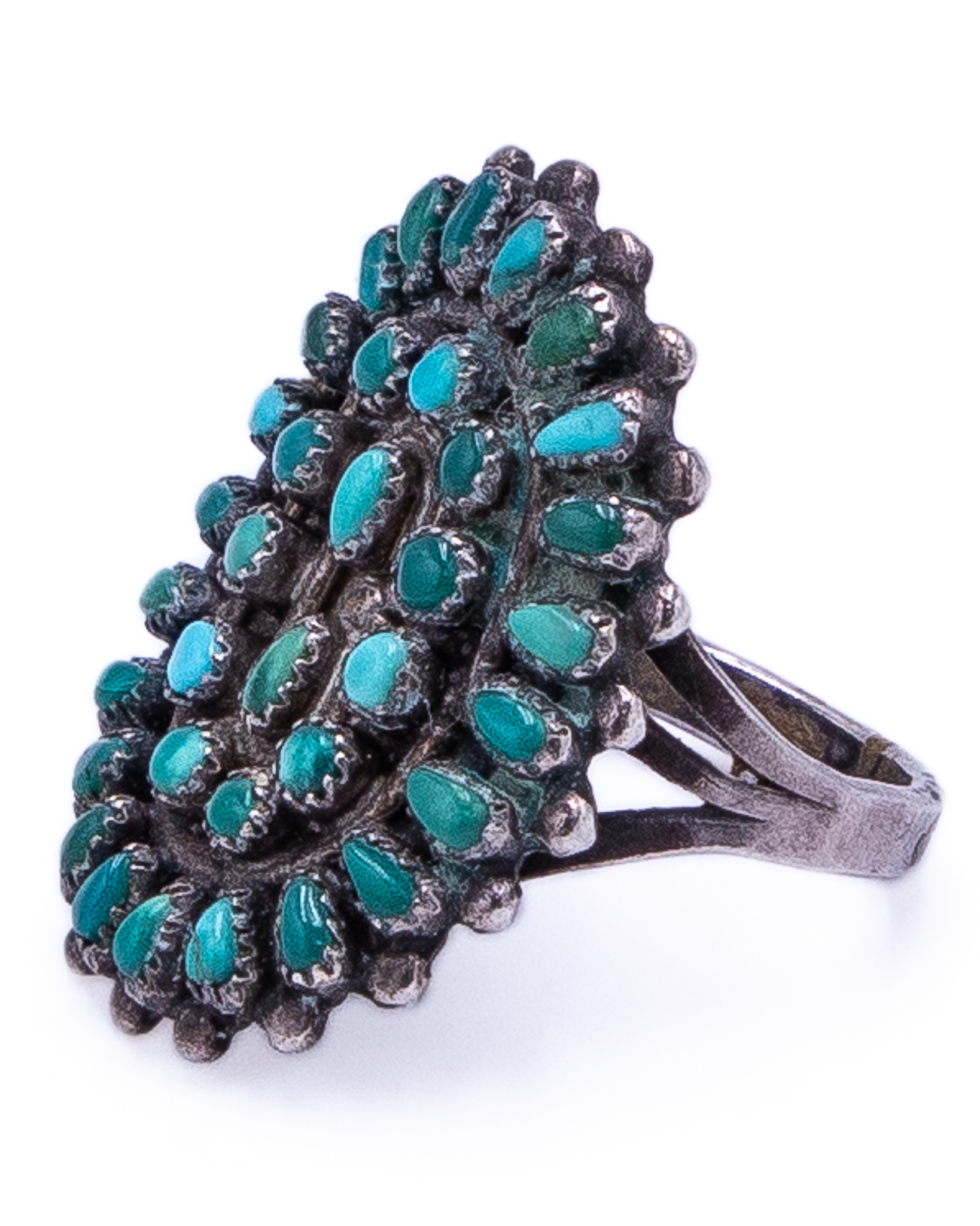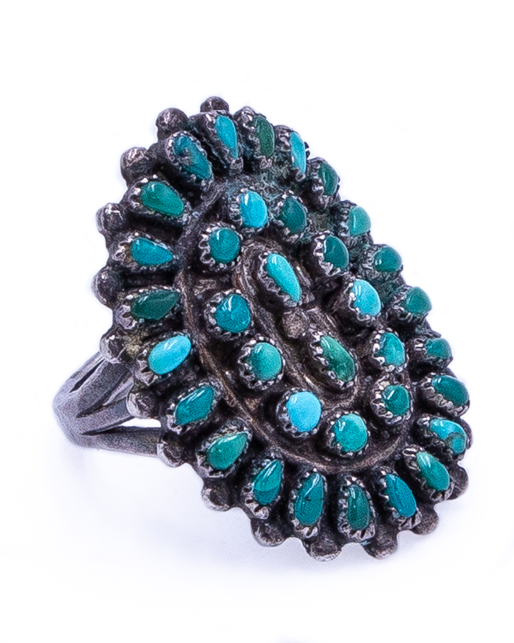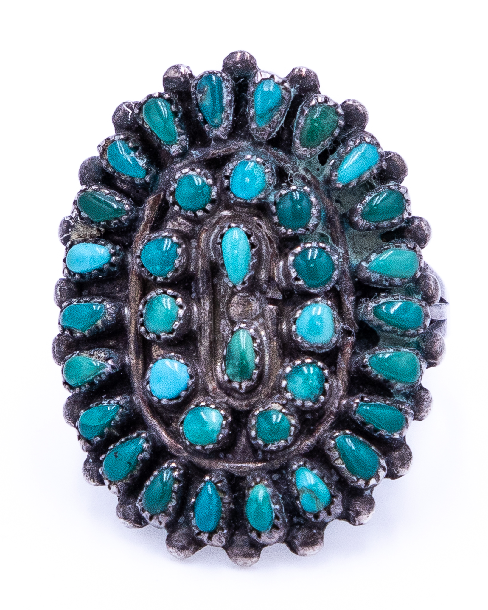 Vintage Zuni Green Turquoise Cluster Sterling Ring Sz 8 As Is 8g-Band Broken