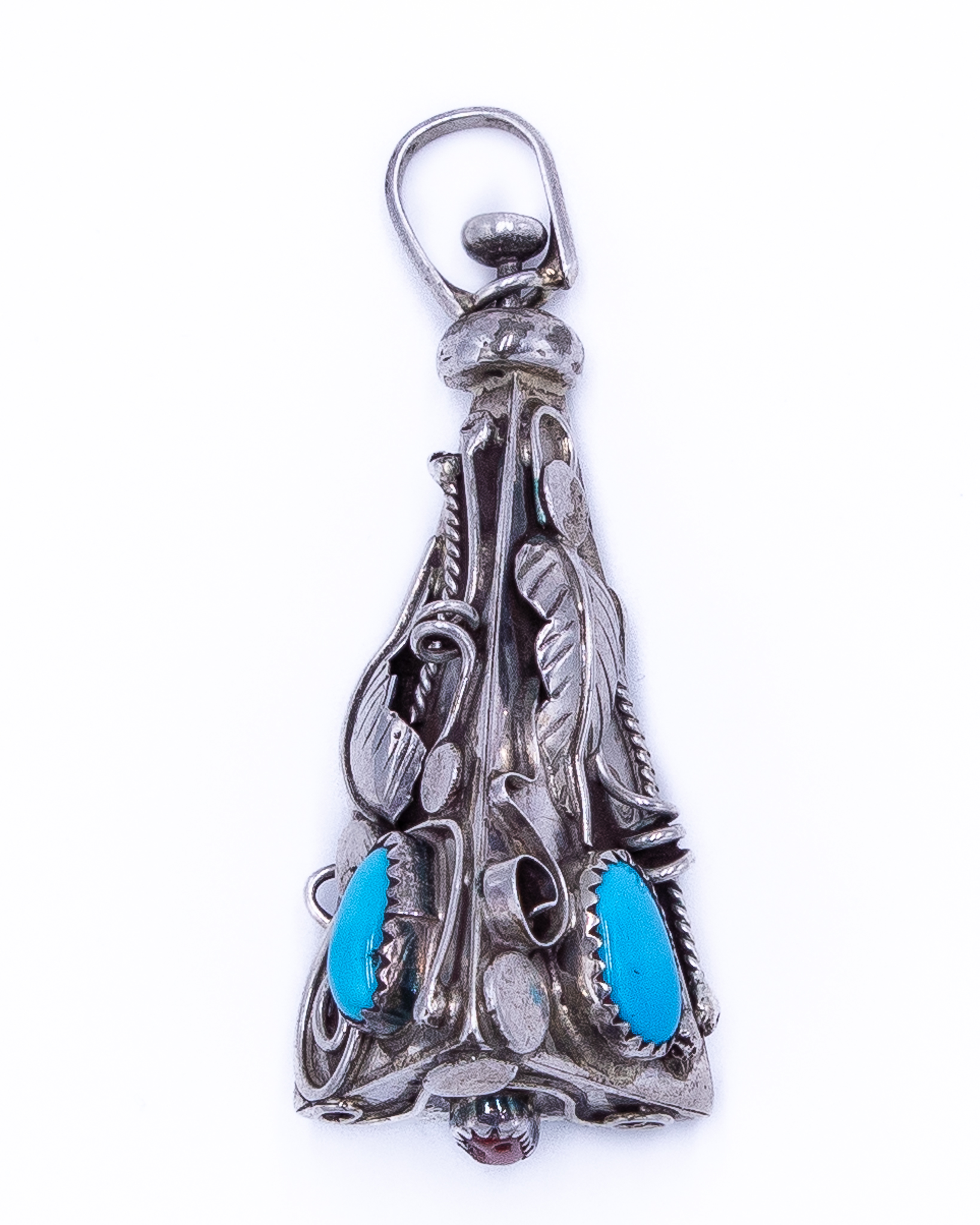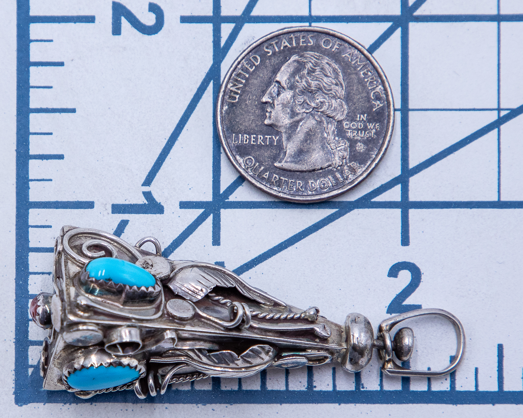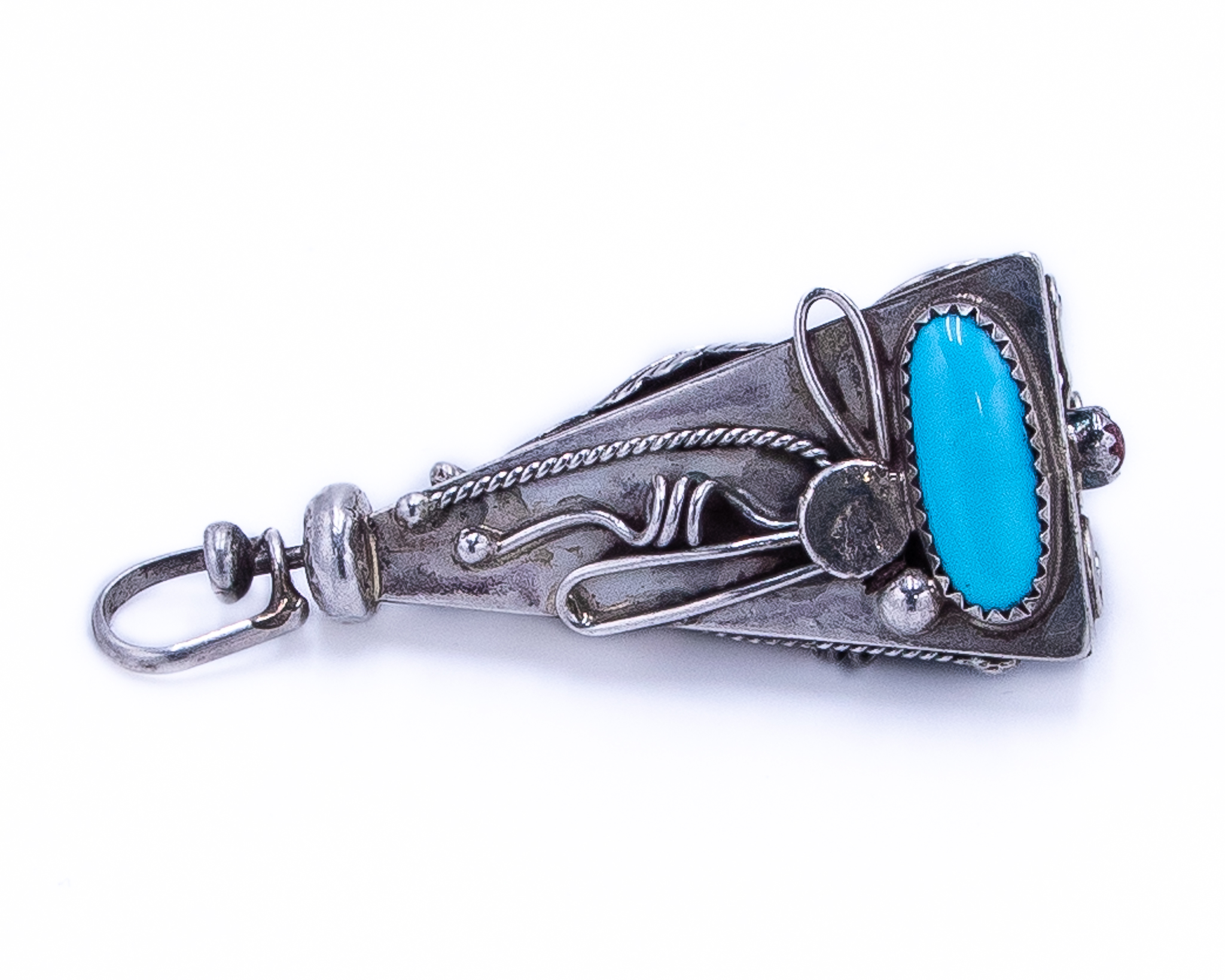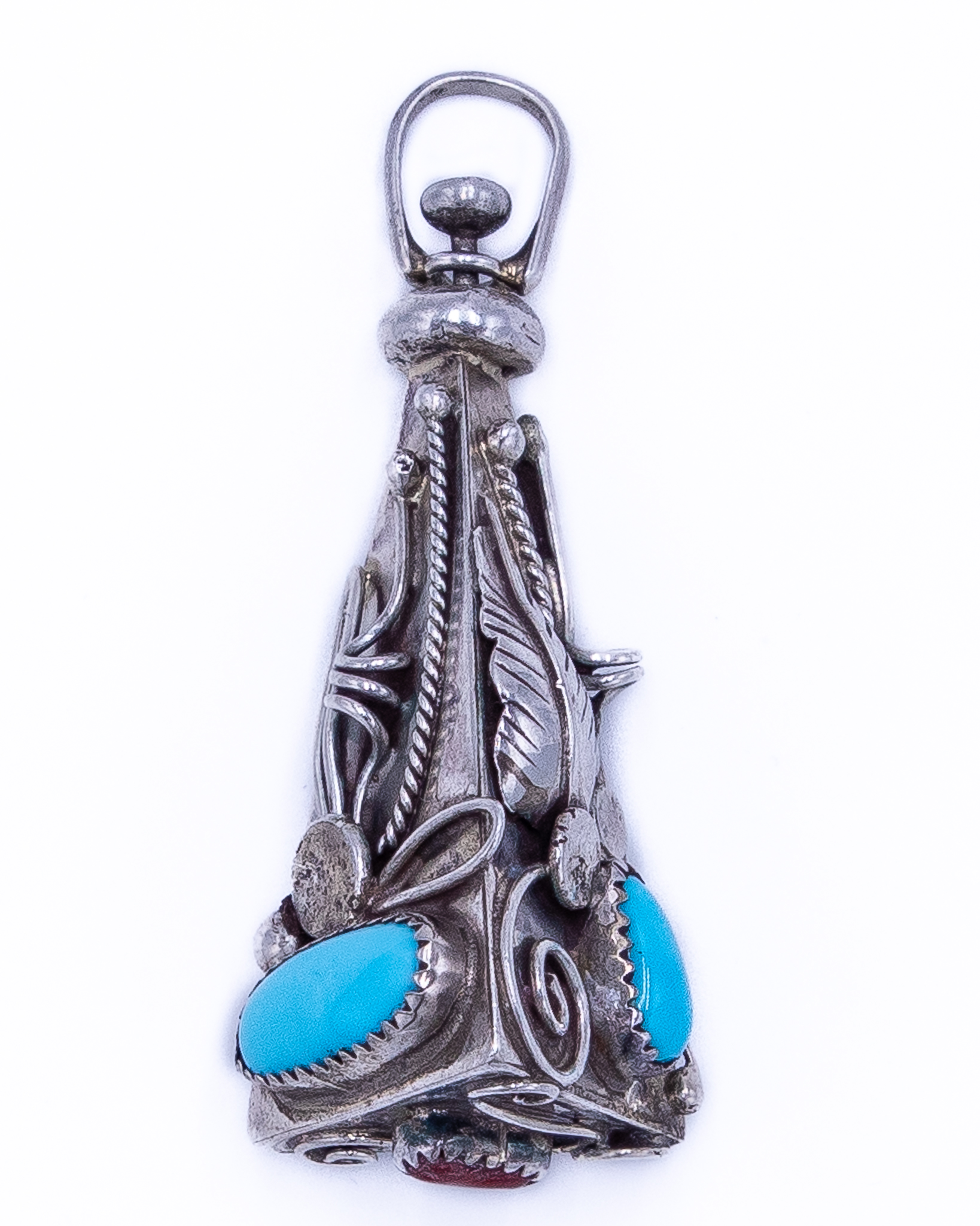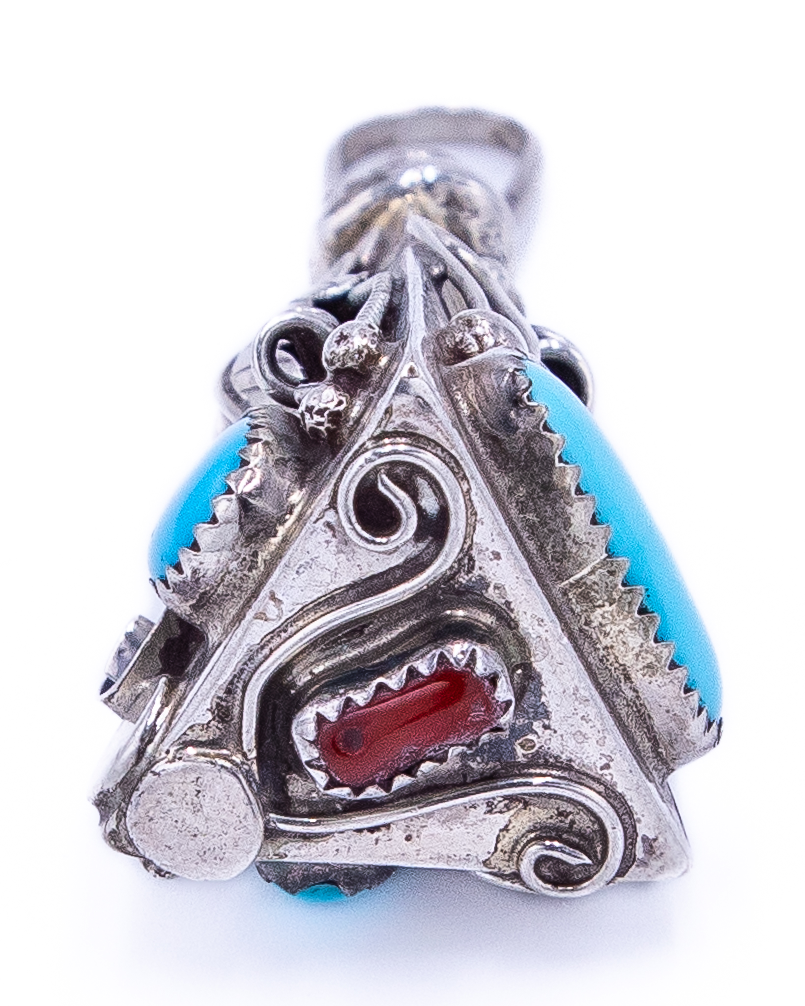 Navajo 3 Sided Pyramid Turquoise Coral Sterling Pendant 15g