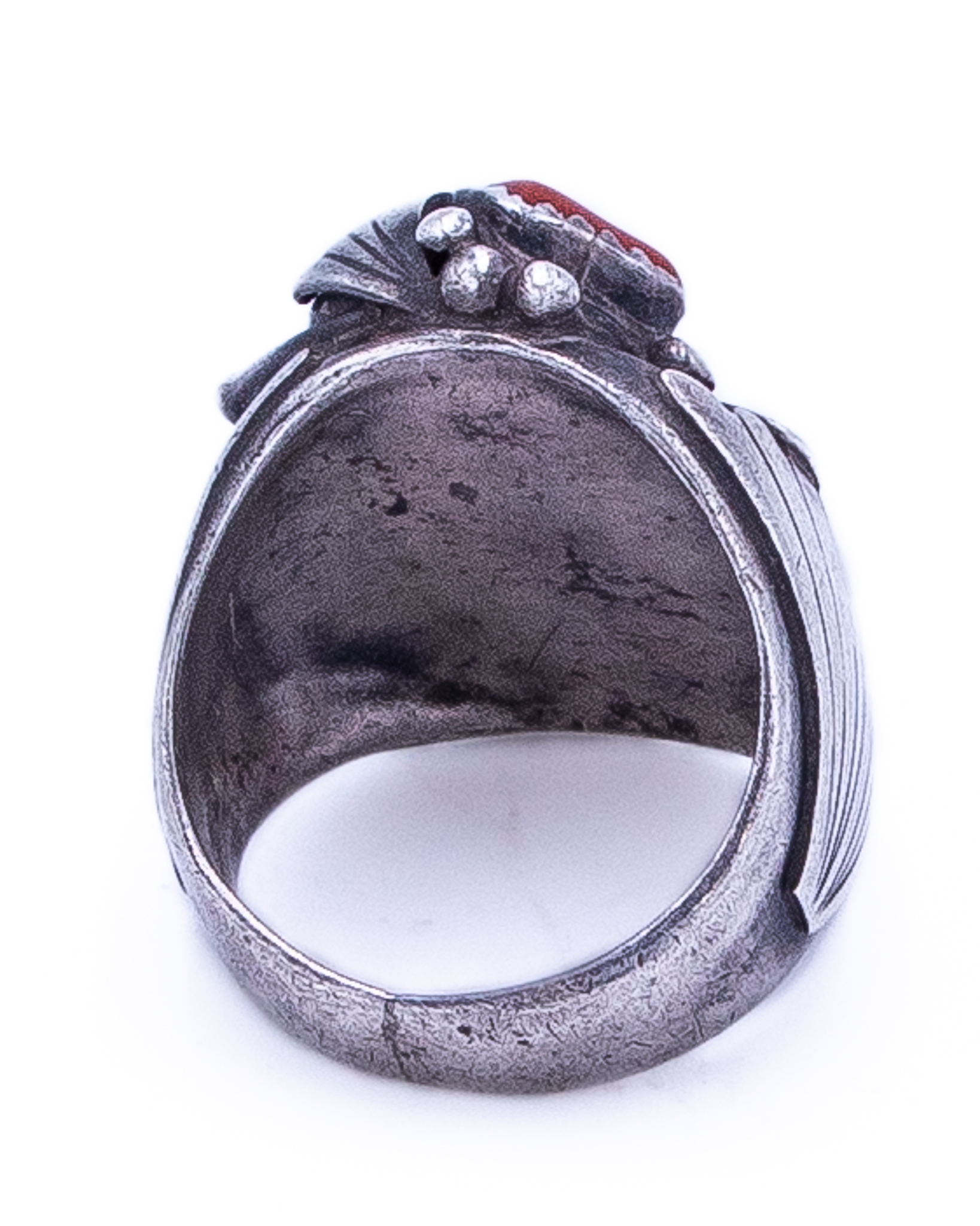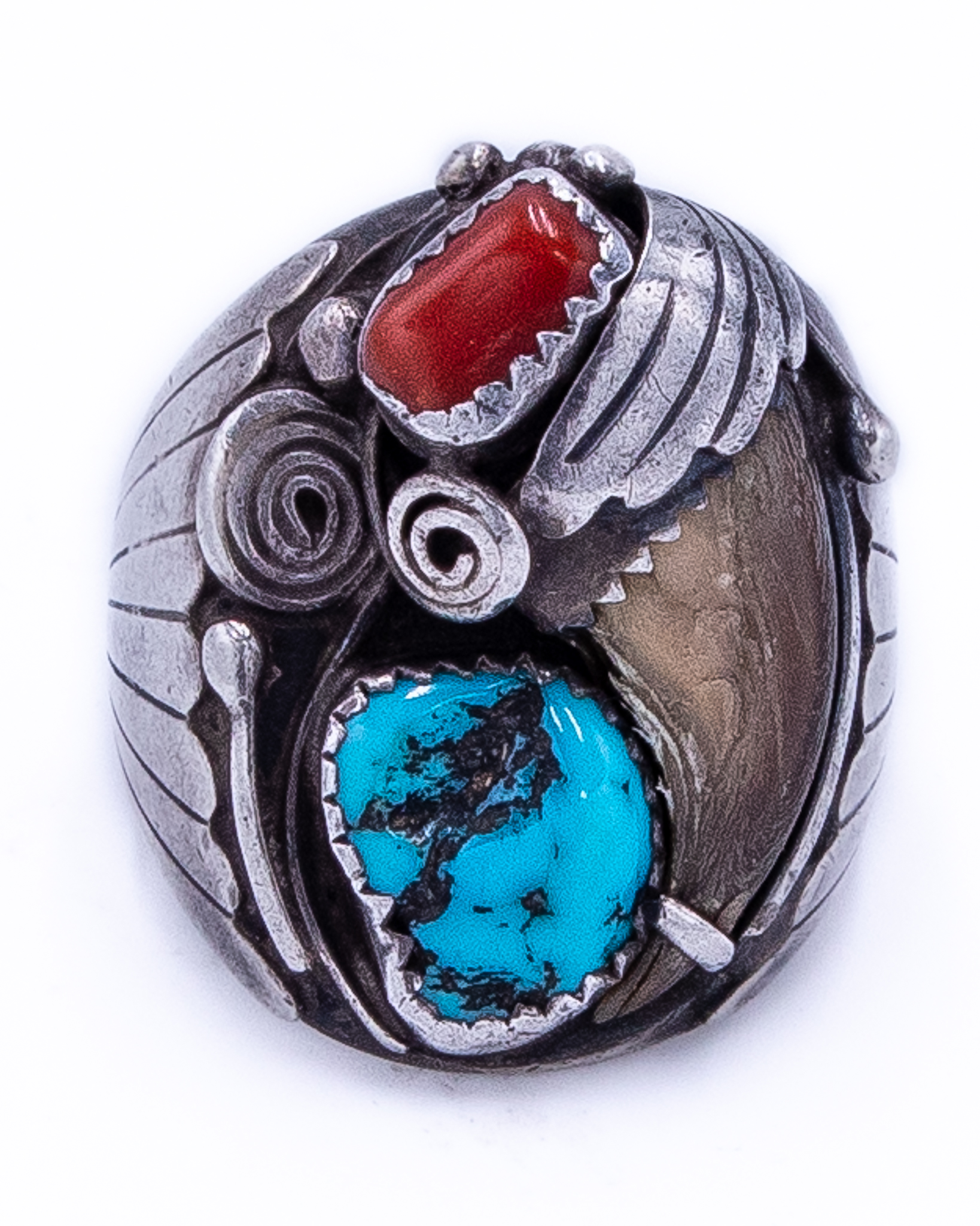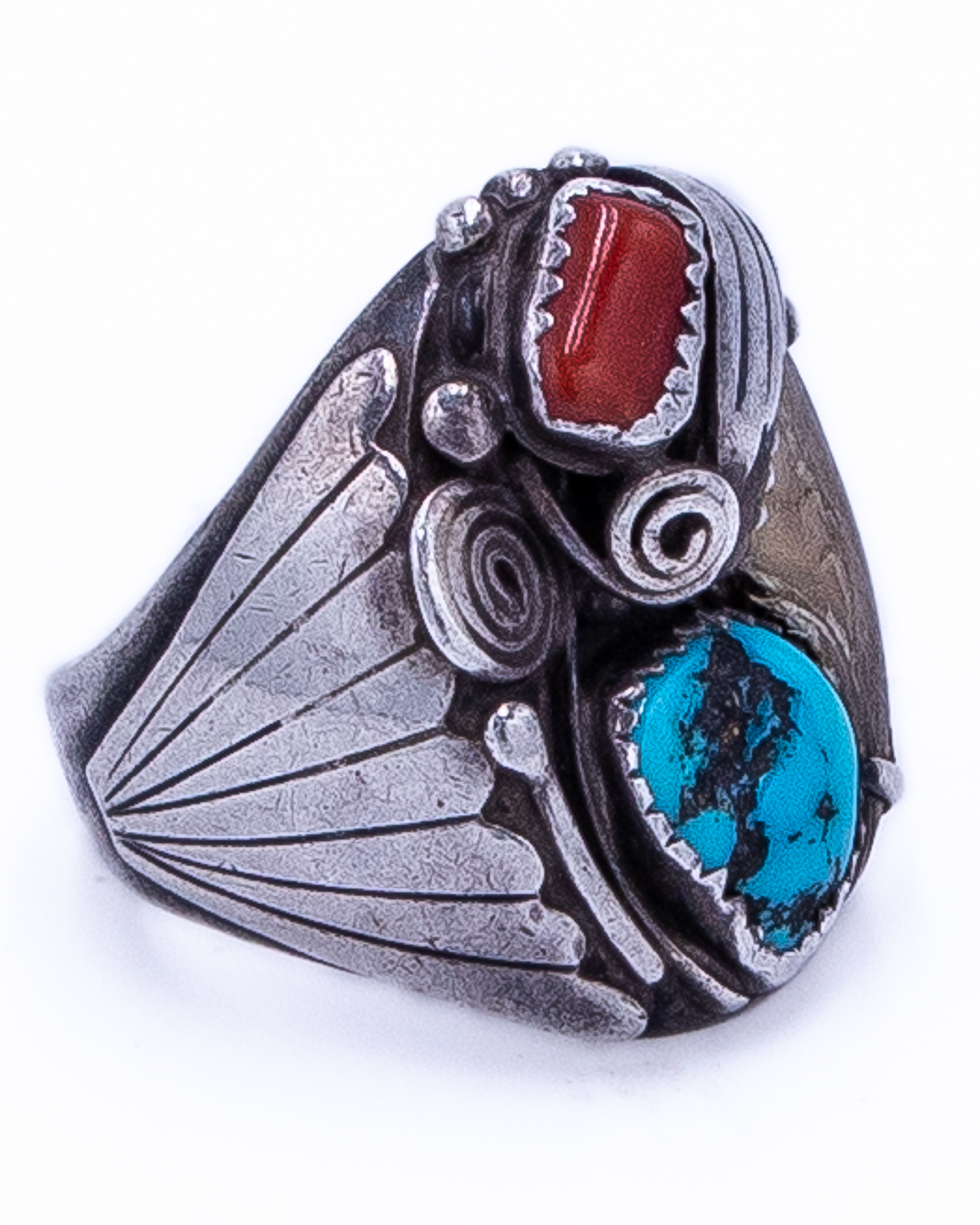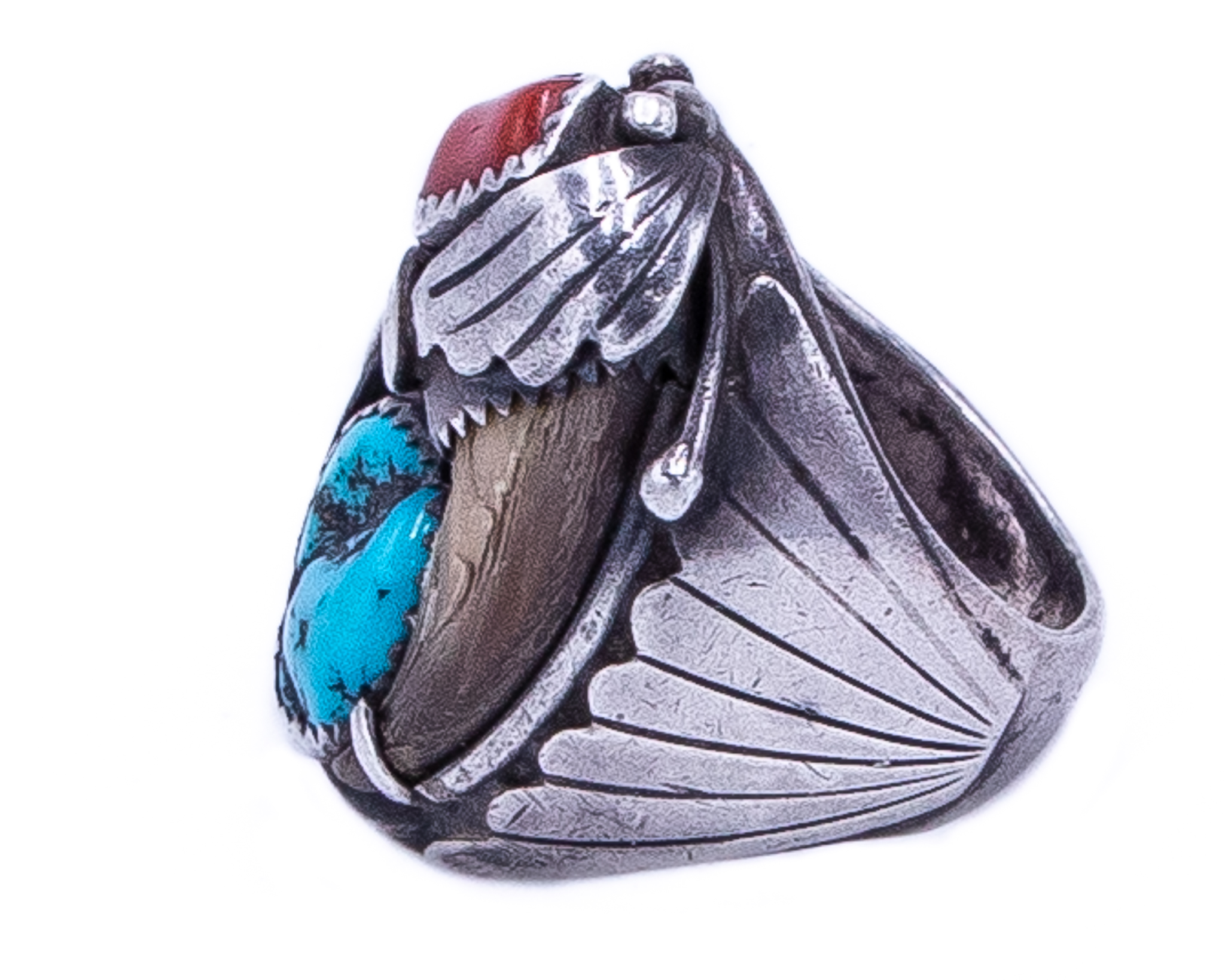 Vintage Navajo Turquoise Coral Sterling Bear Claw Ring Sz 9, 19g
