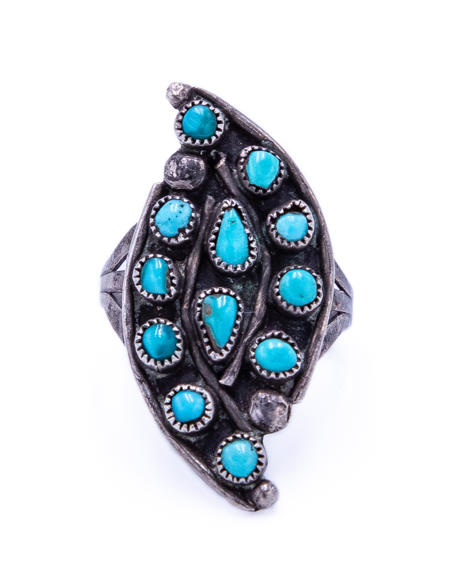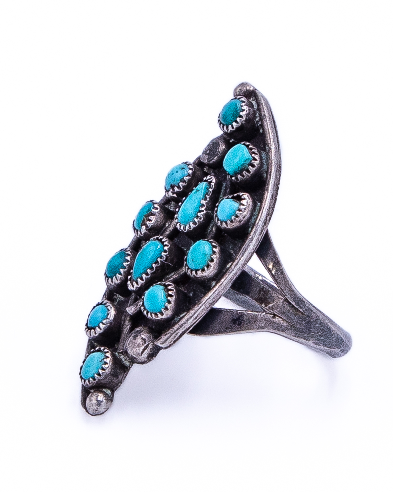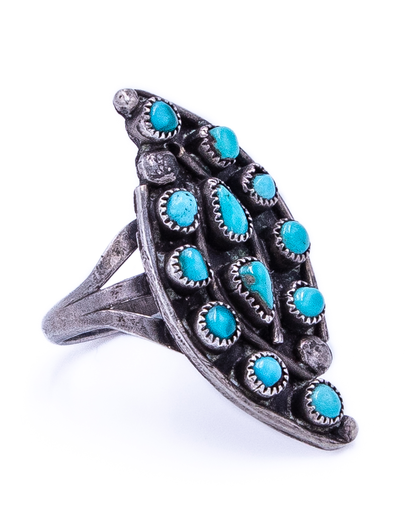 Vintage Zuni Turquoise Cluster Sterling Ring Sz 6.5, 4.5g