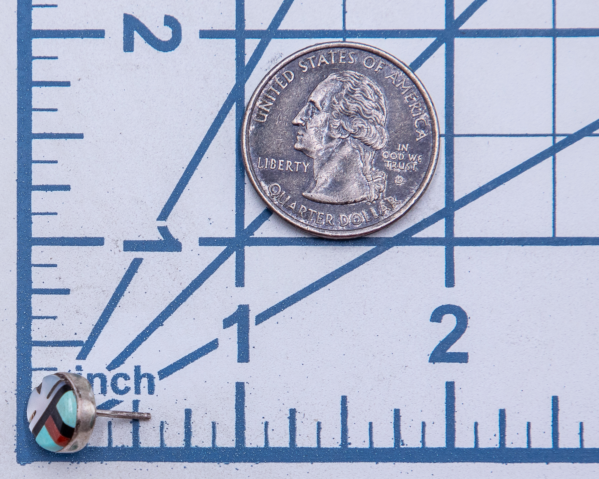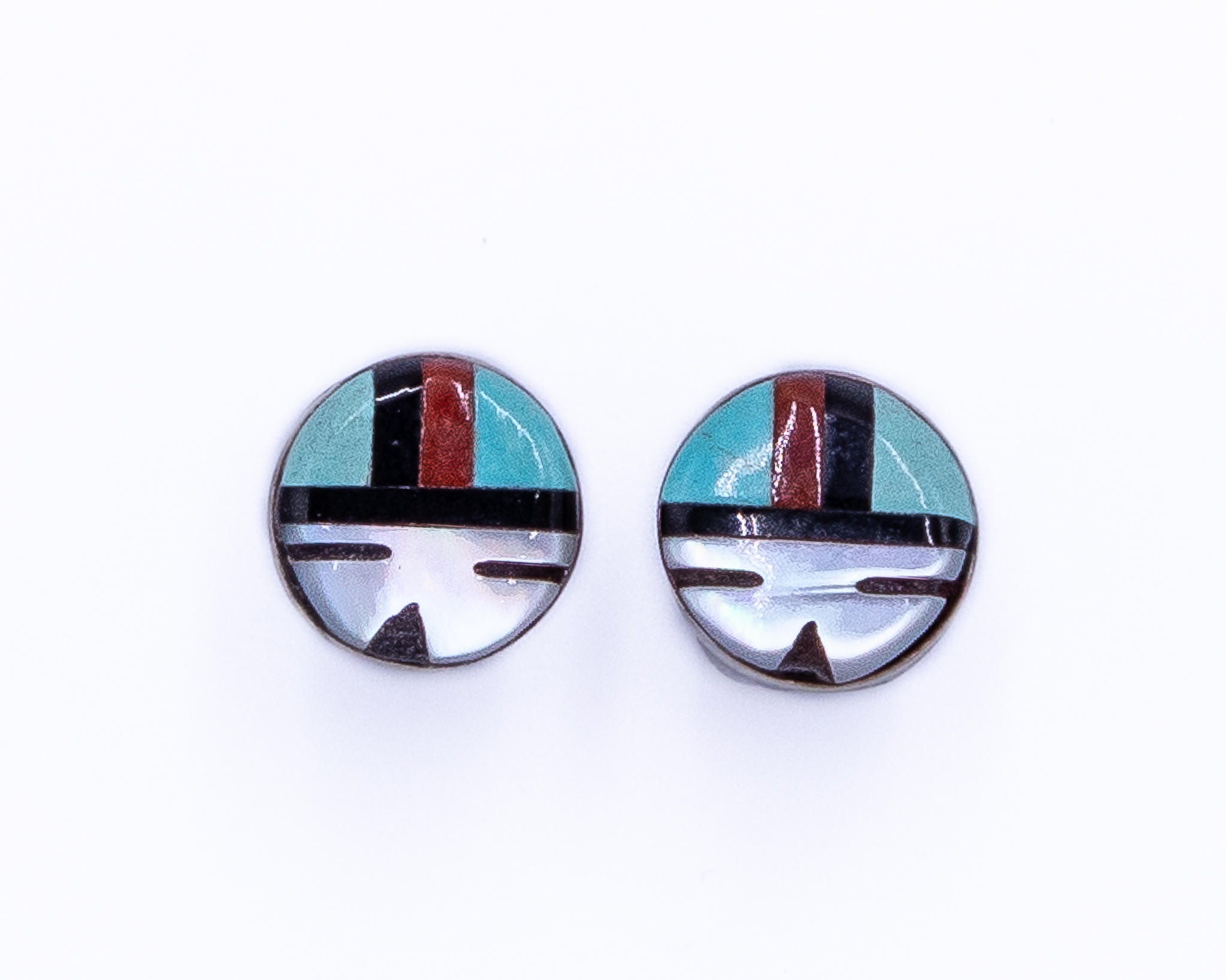 Vintage Zuni Multi Stone Sterling Inlay Sunface Earrings 2g-Turquoise, Mother of Pearl, Coral, Onyx