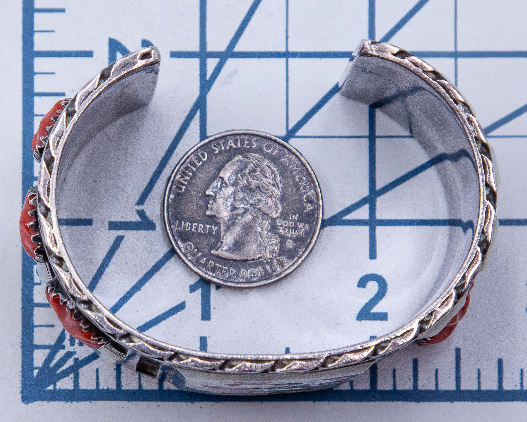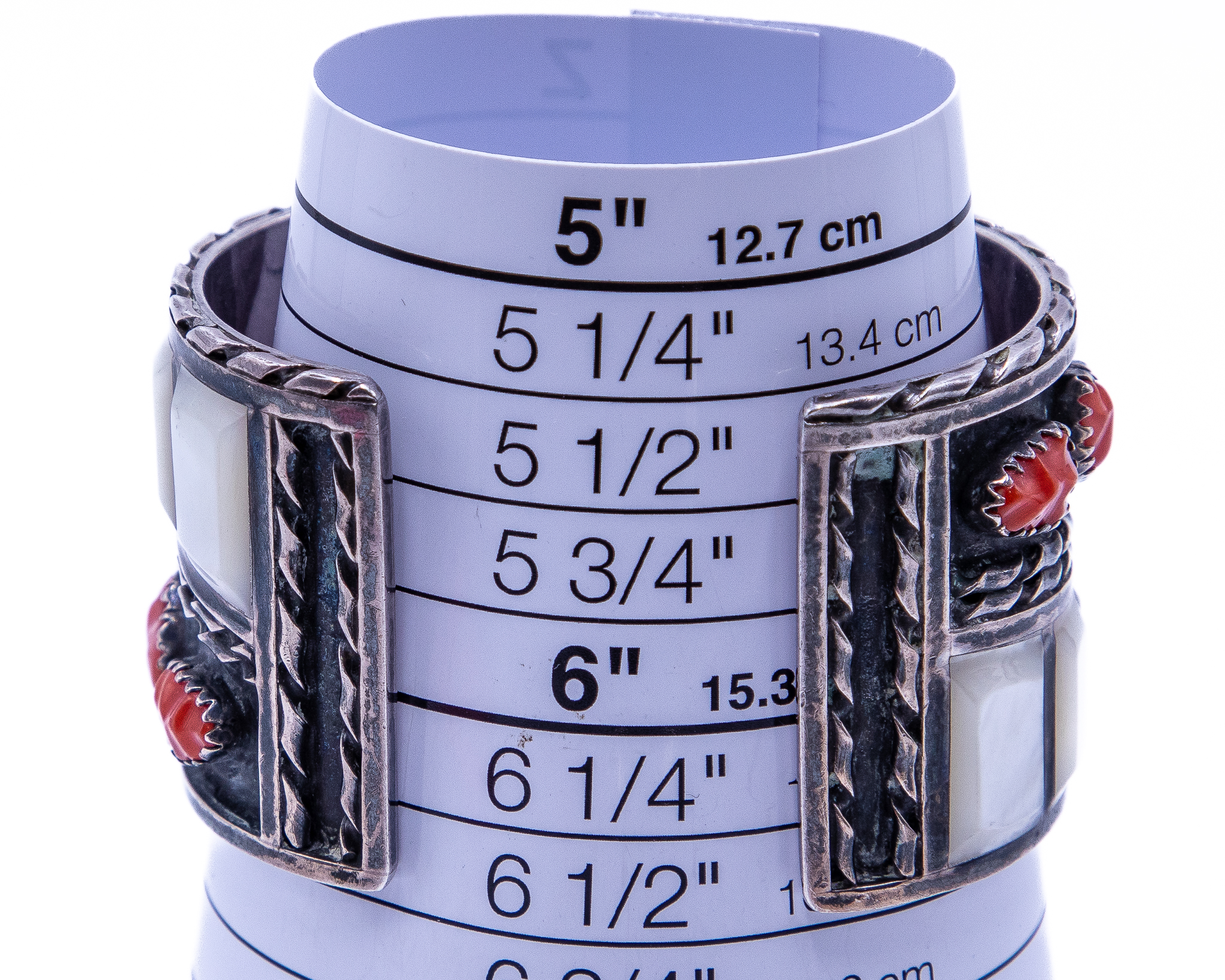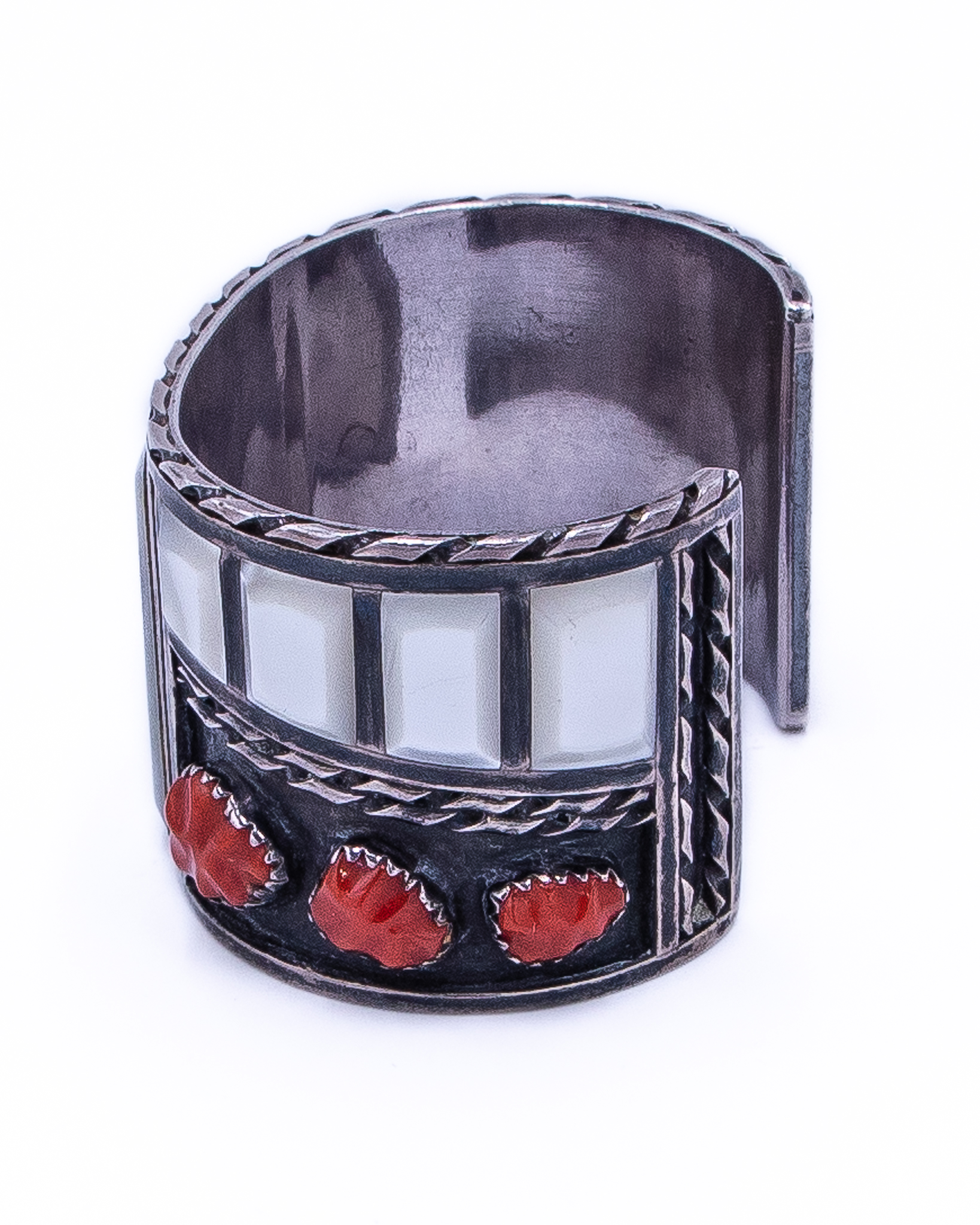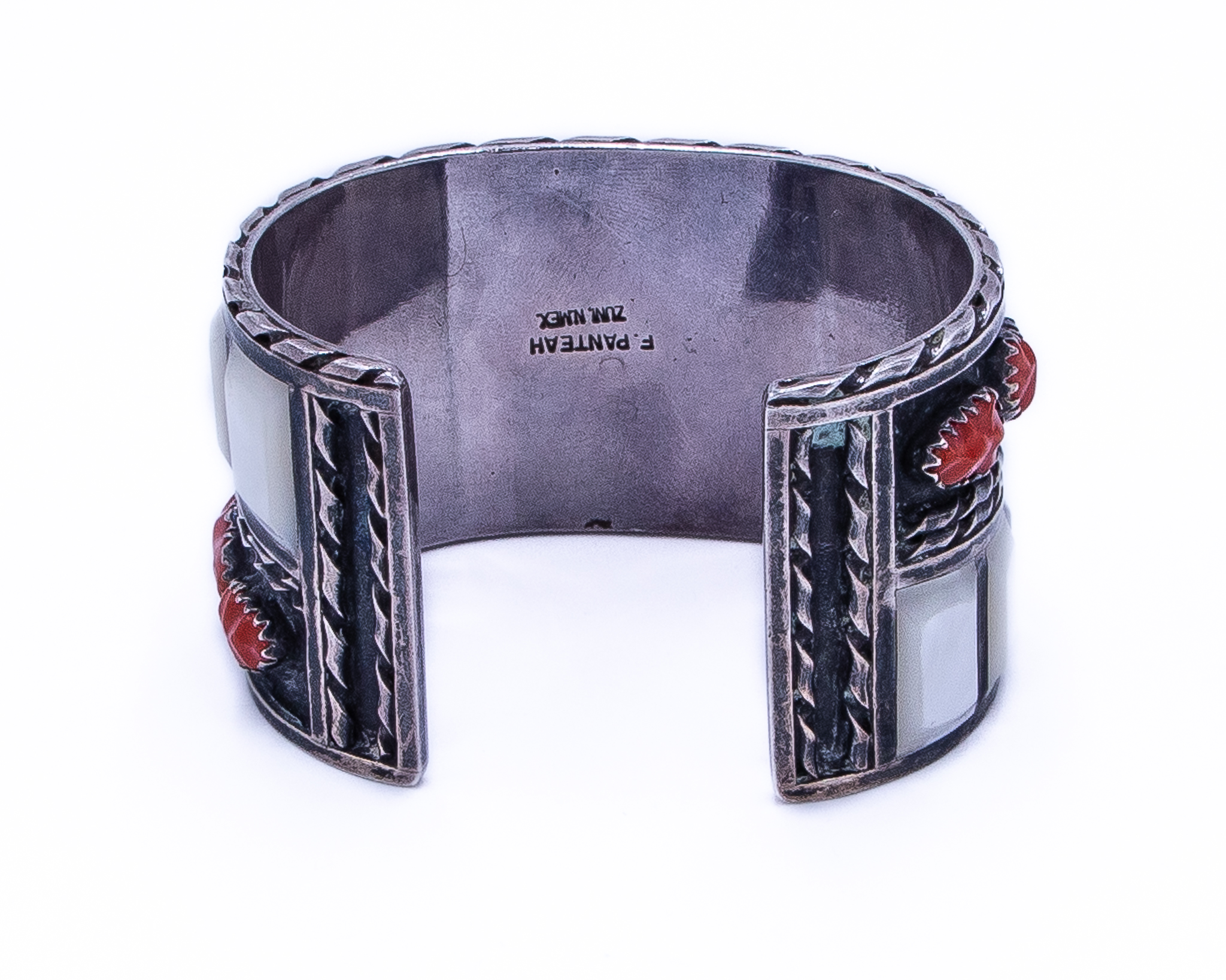 Frank Panteah Zuni Multi Stone Sterling Kachina Cuff Bracelet 96g-Mother of Pearl, Turquoise, Coral, Onyx