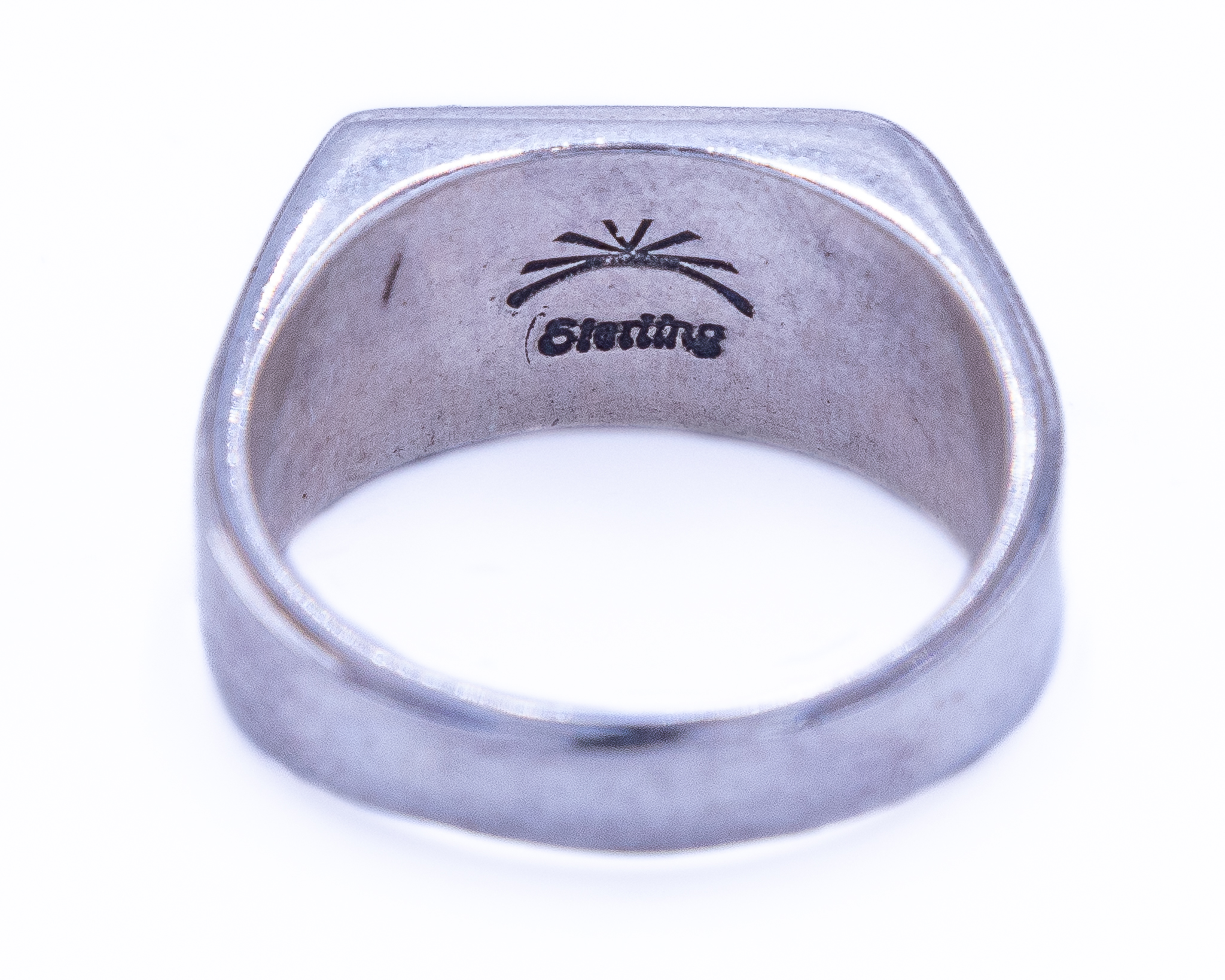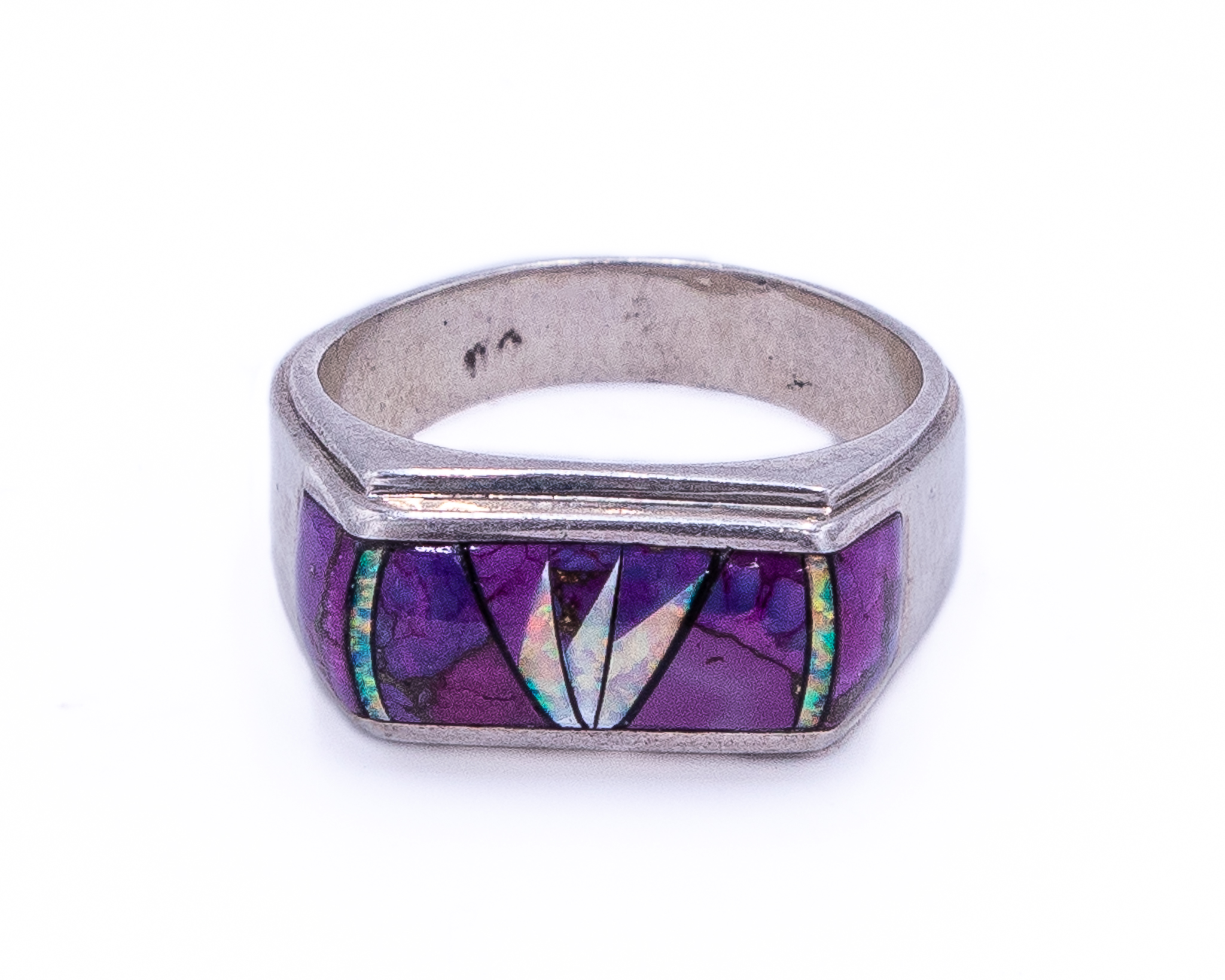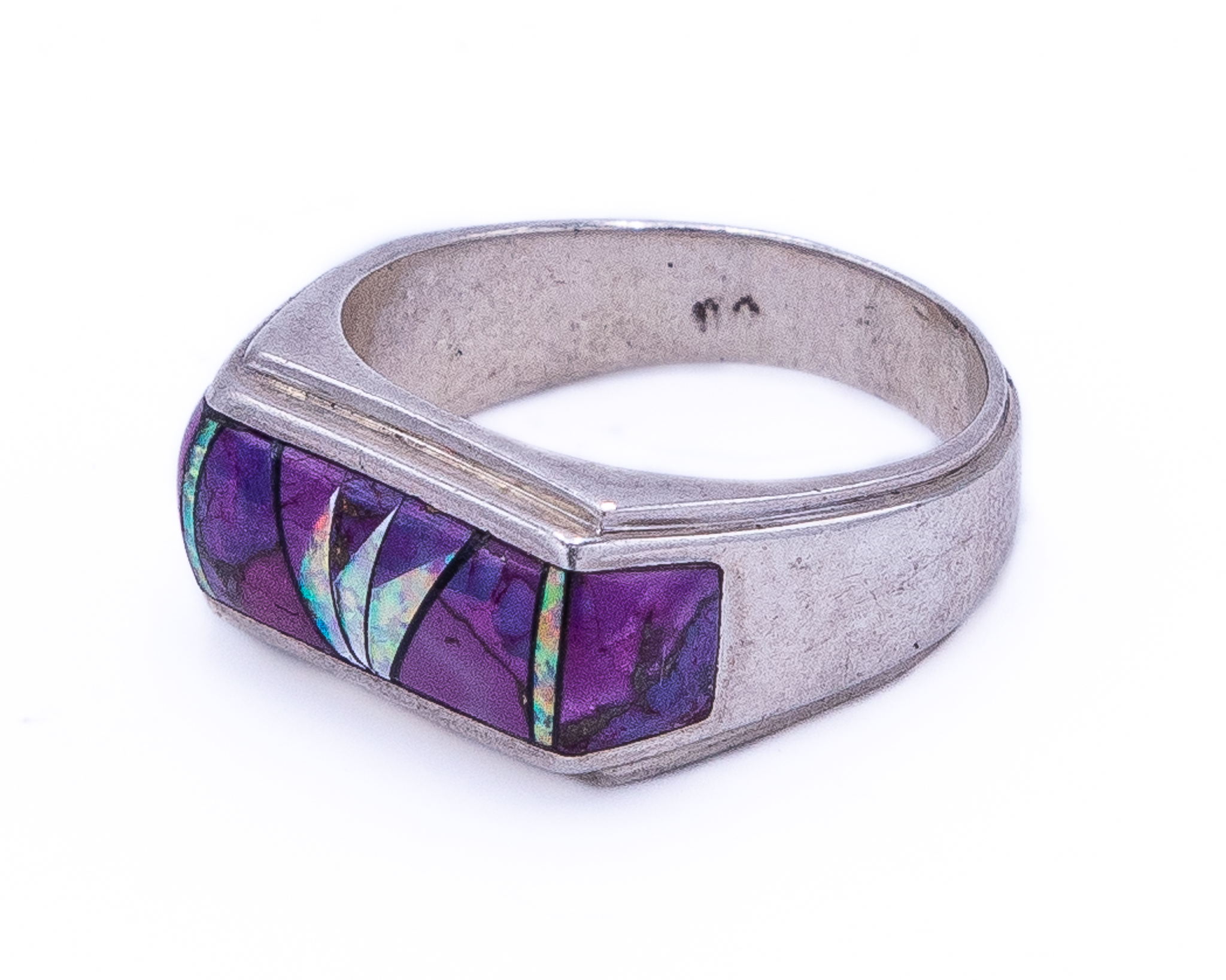 Signed Zuni Purple Spiny Oyster Opal Sterling Inlay Ring Sz 11.25