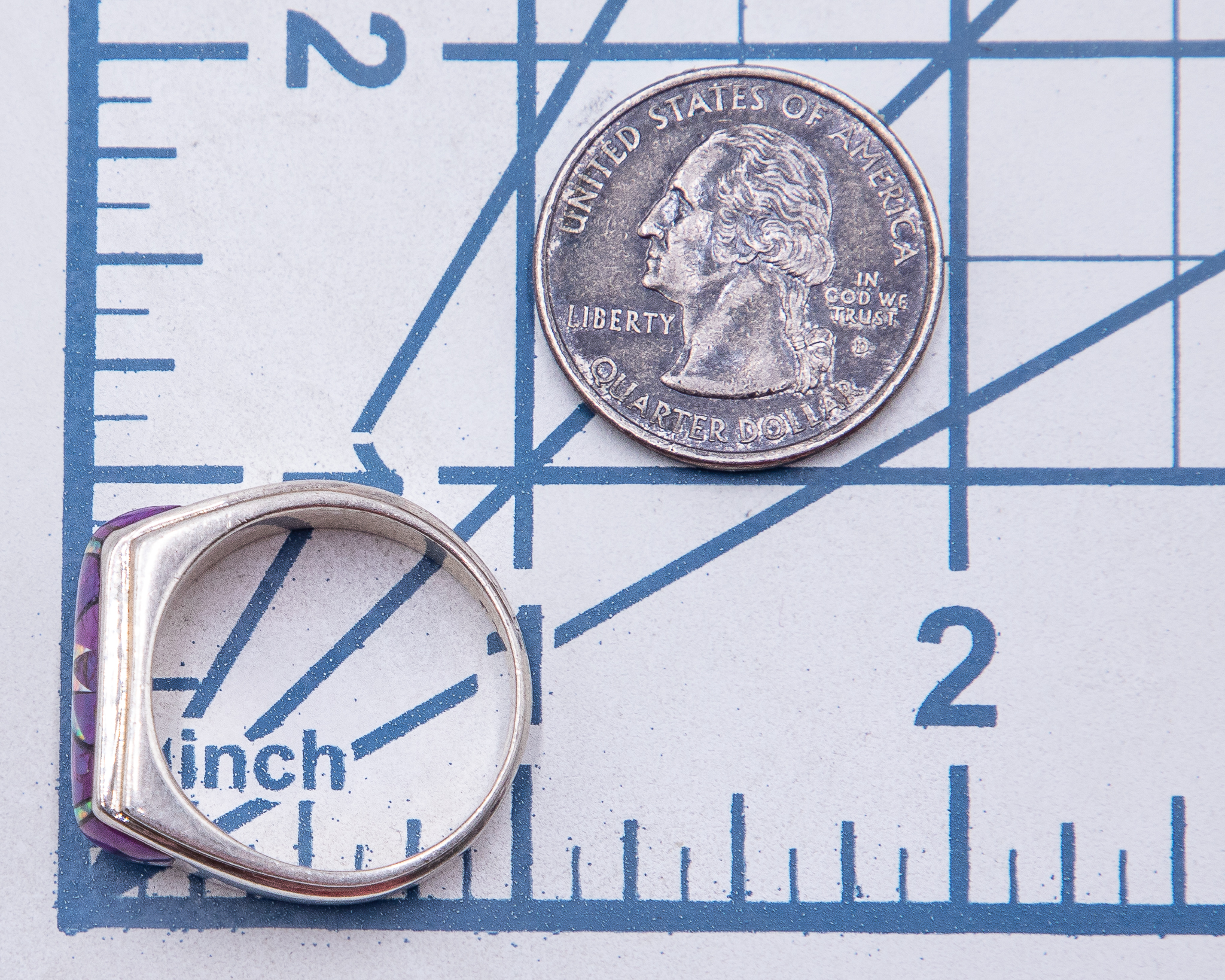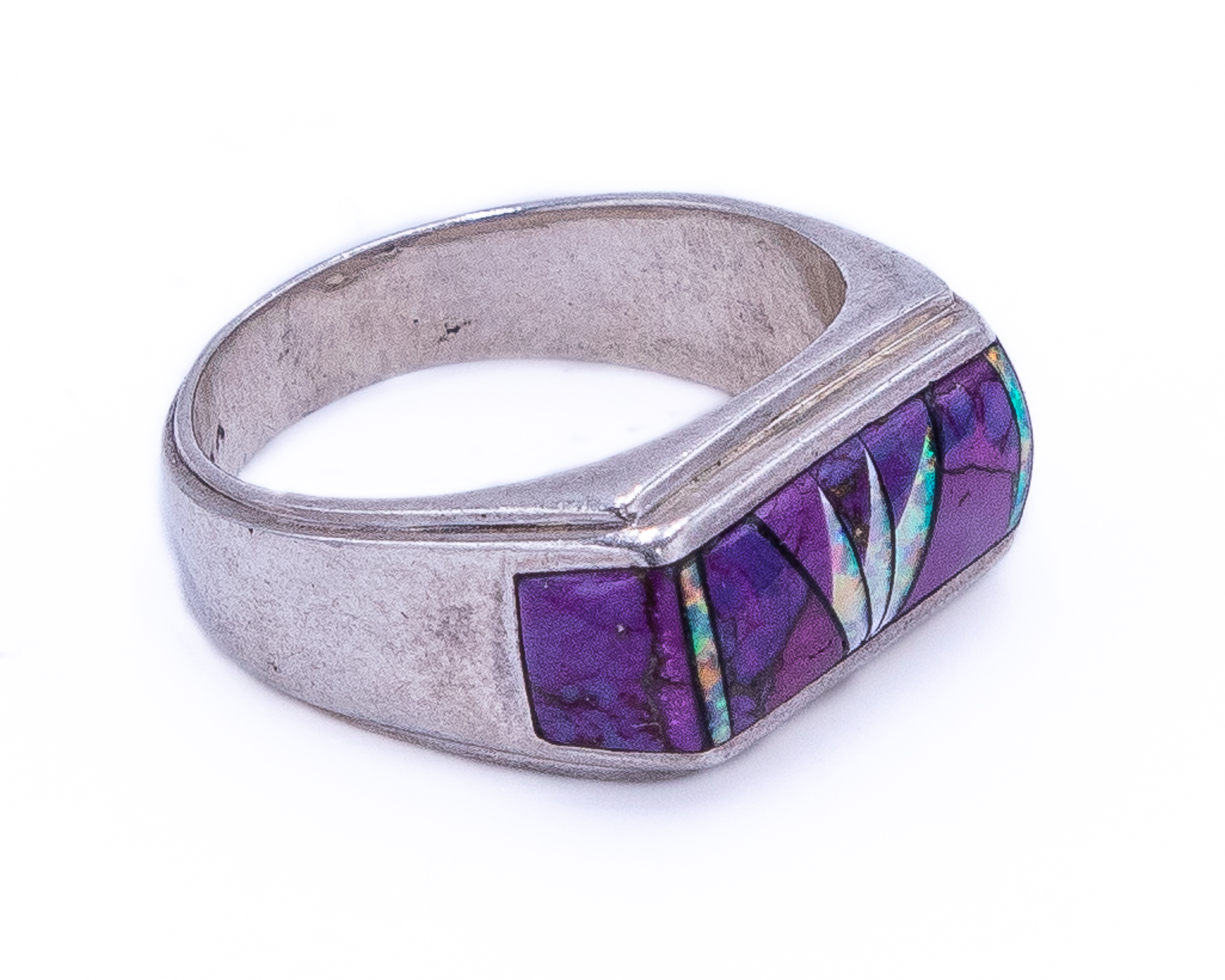 Signed Zuni Purple Spiny Oyster Opal Sterling Inlay Ring Sz 11.25, 10g