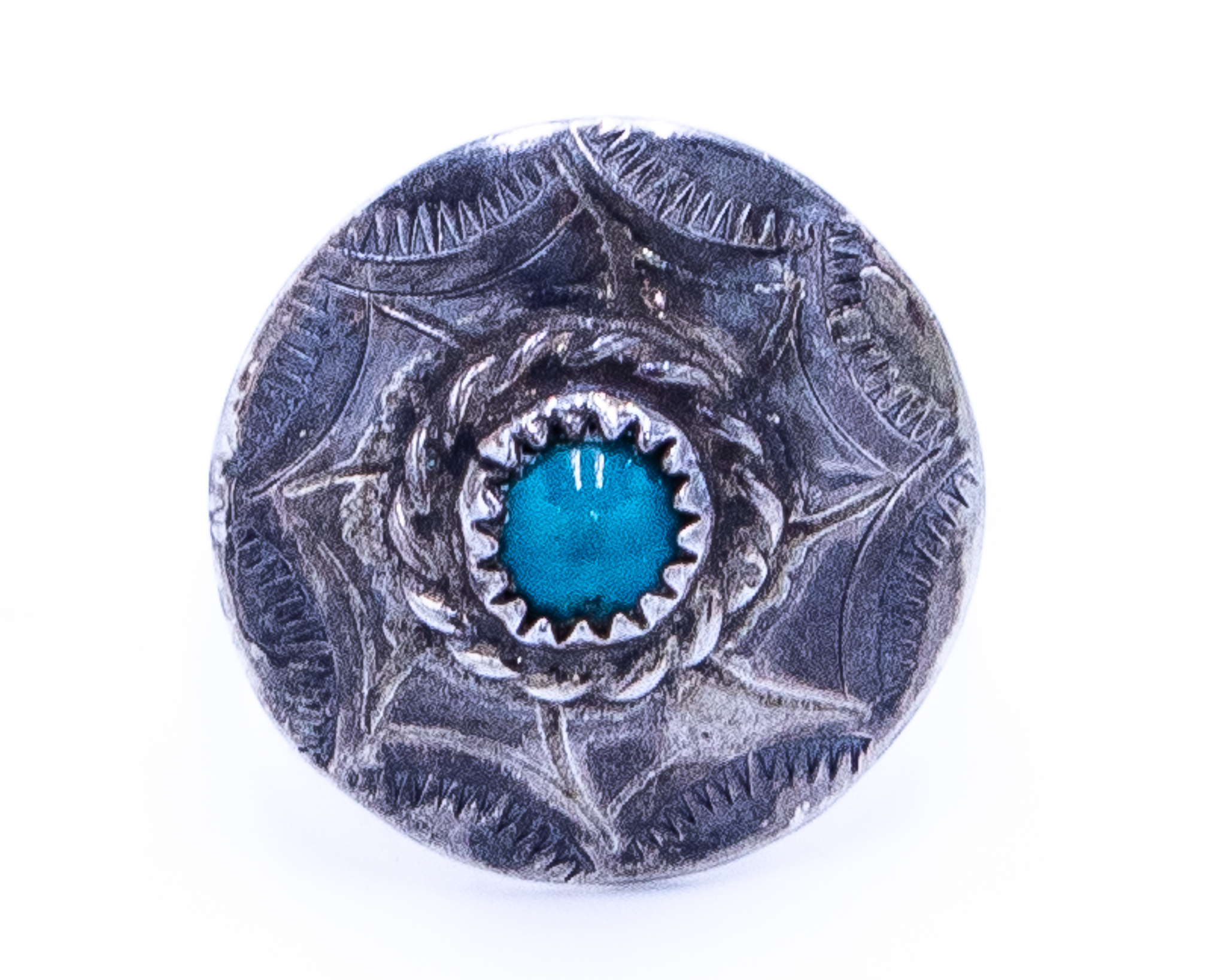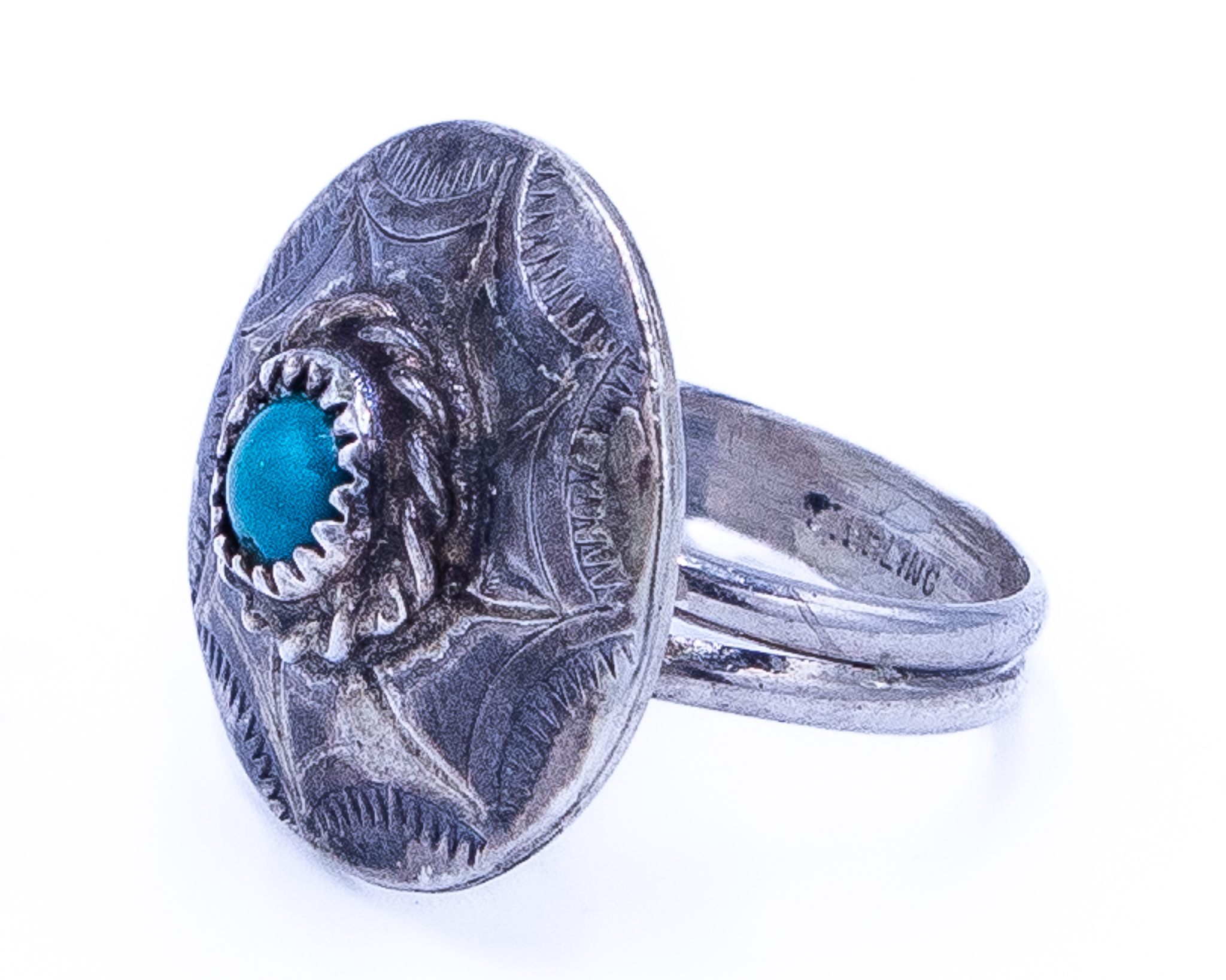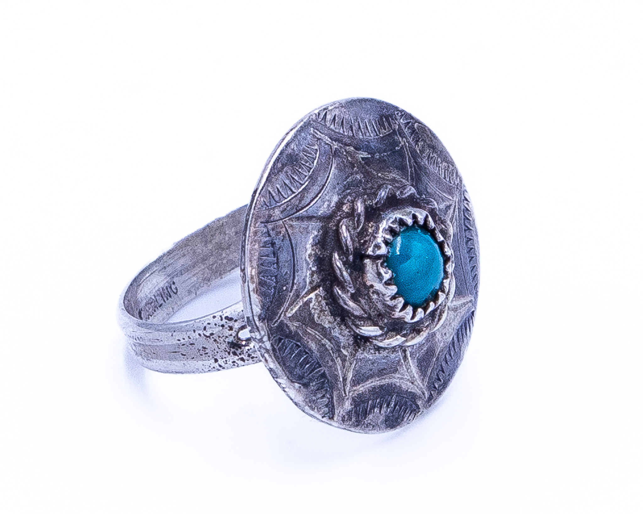 Old Navajo Snake Eye Turquoise Sterling Ring Sz 8.5, 8g