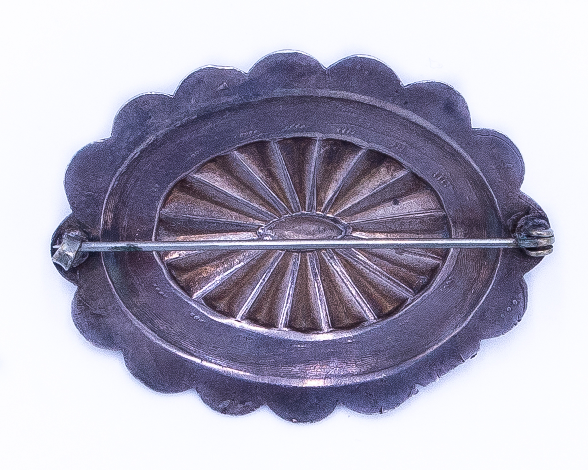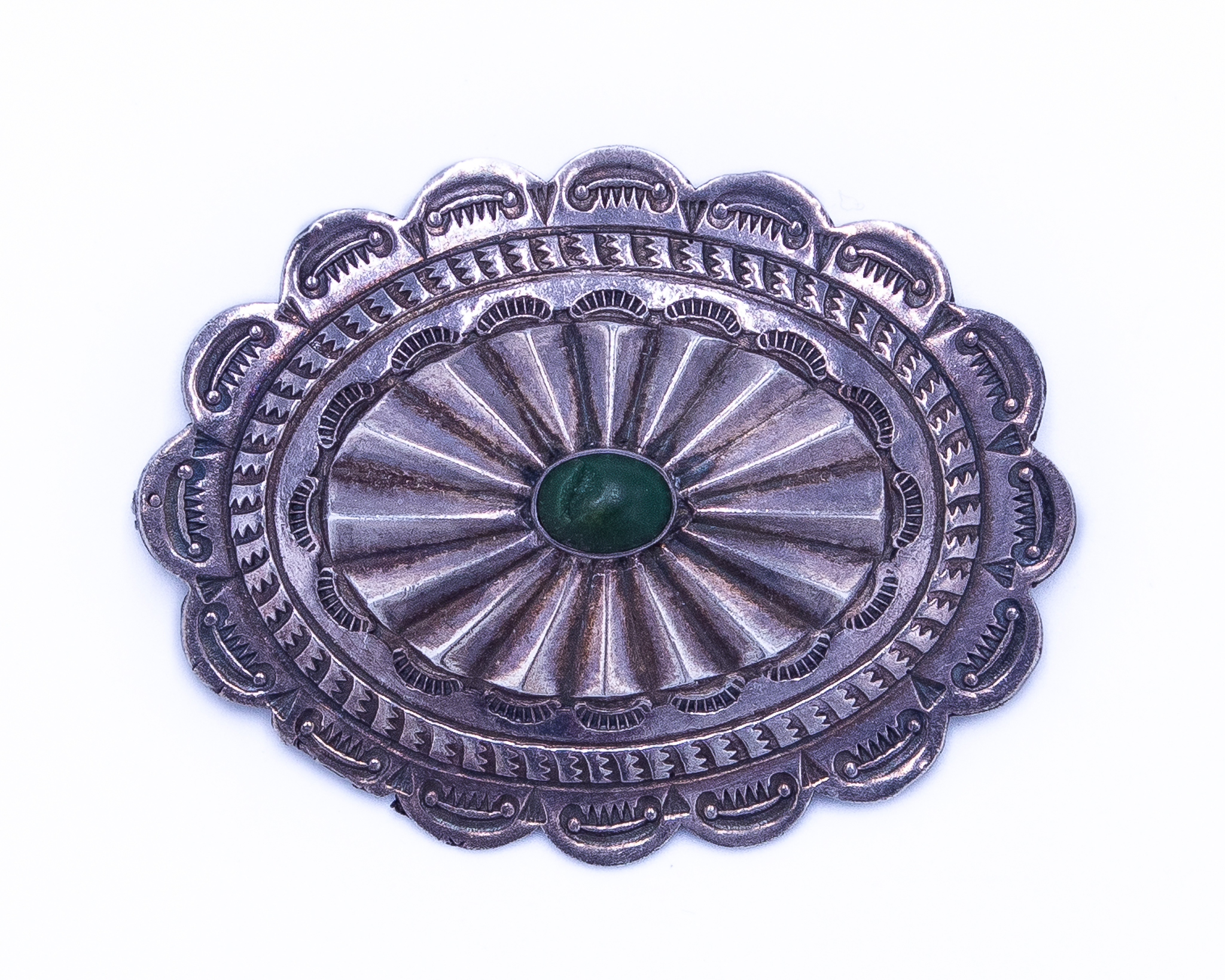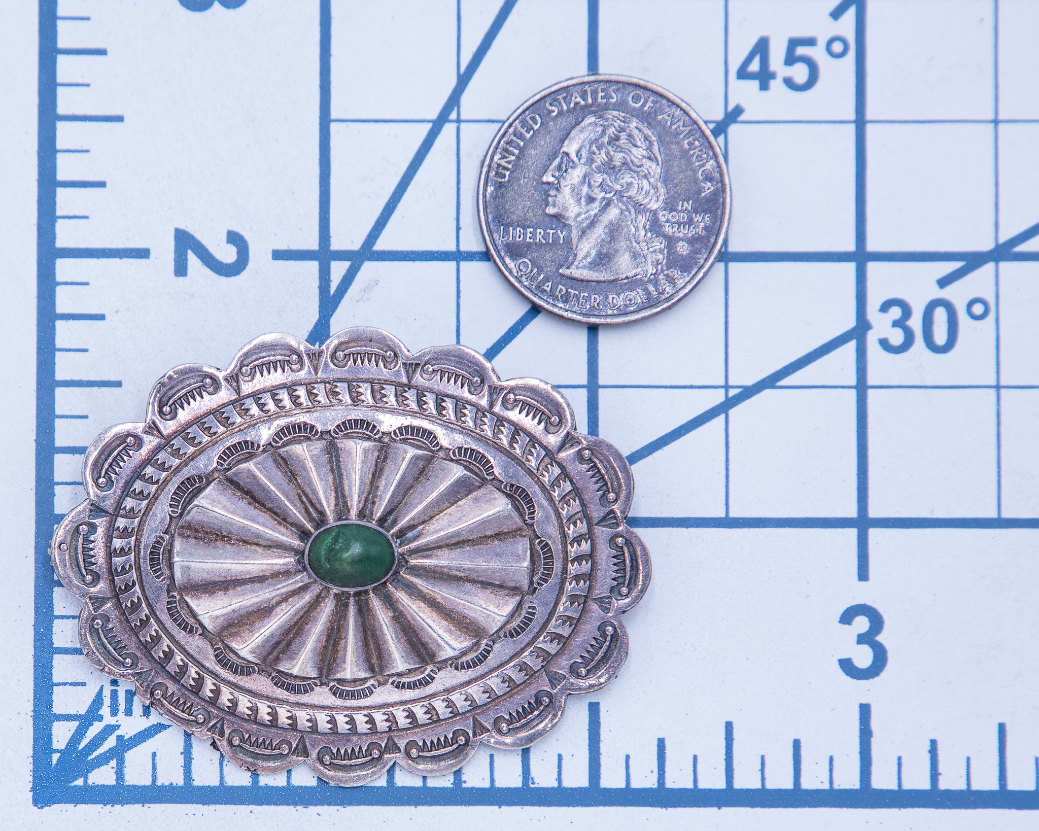 Old Navajo Green Agate Sterling Concho Brooch As Is 16g-Chip in Stone