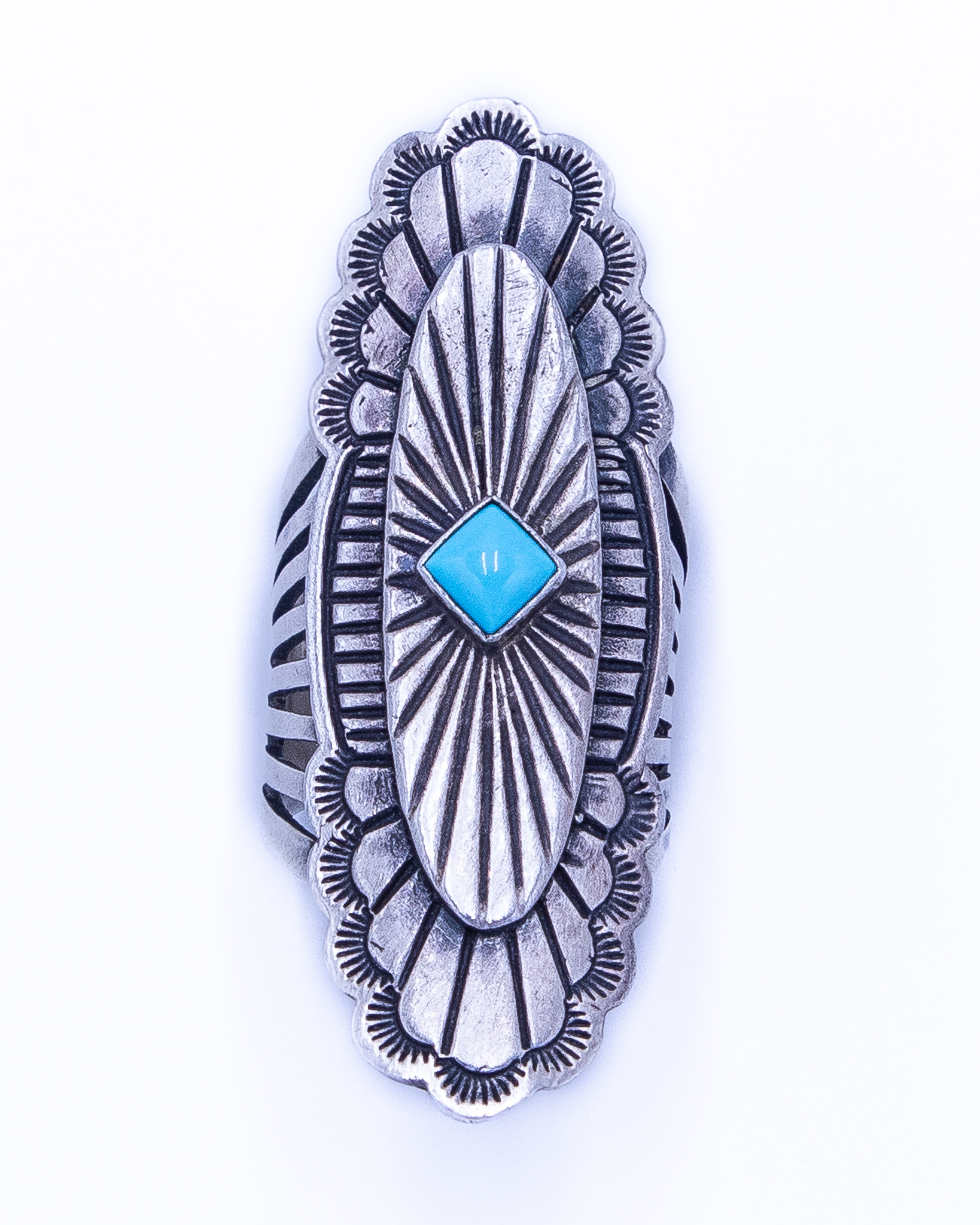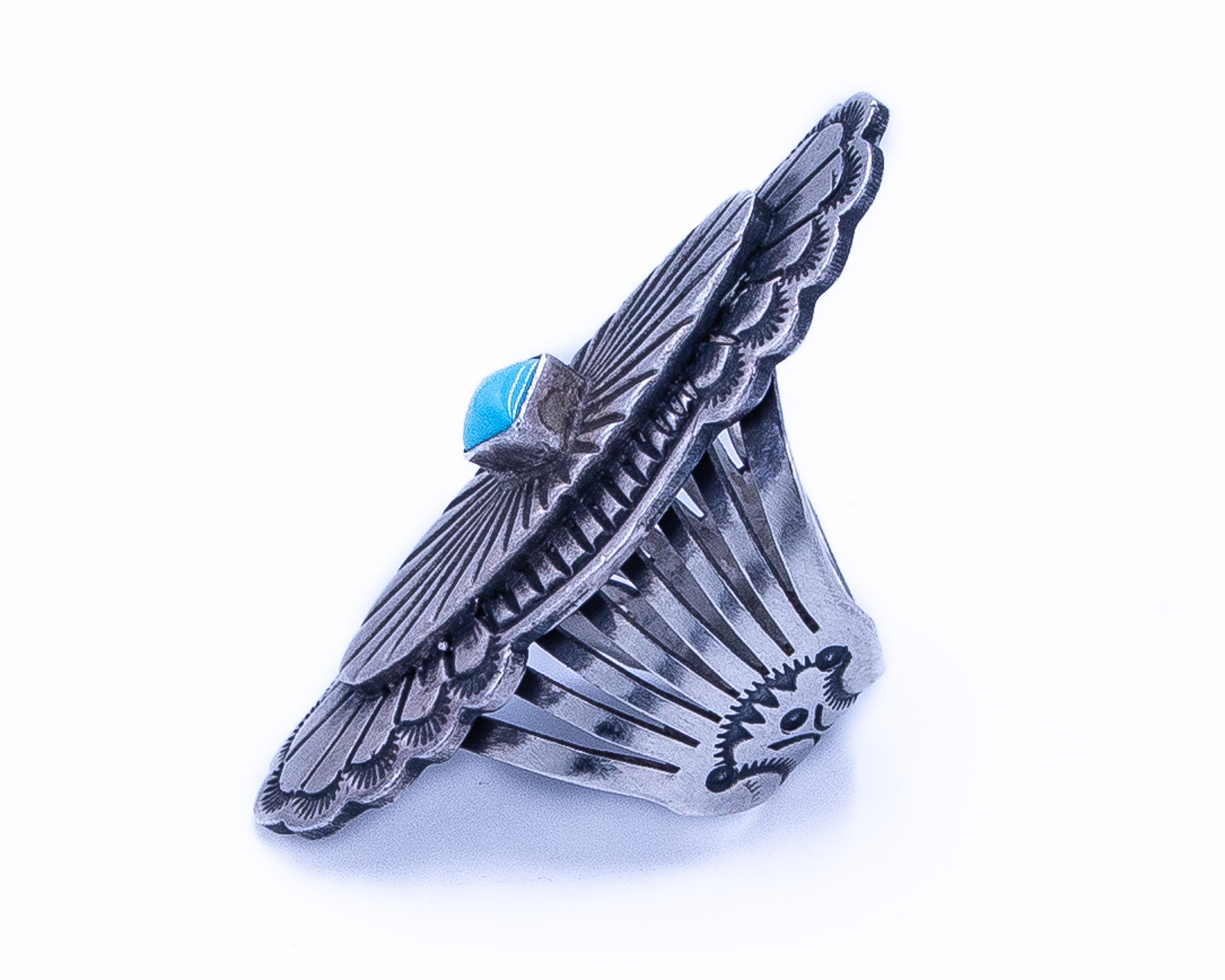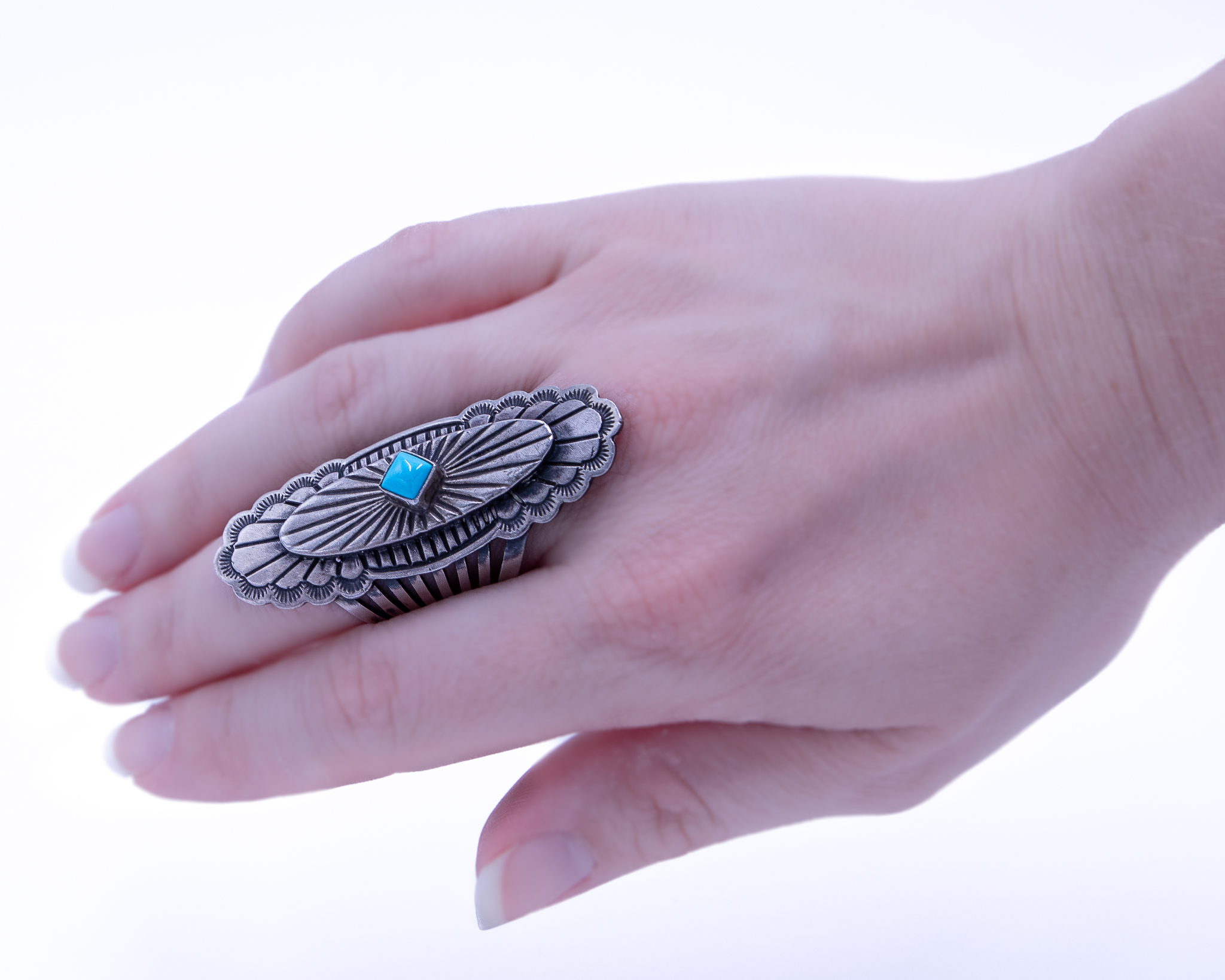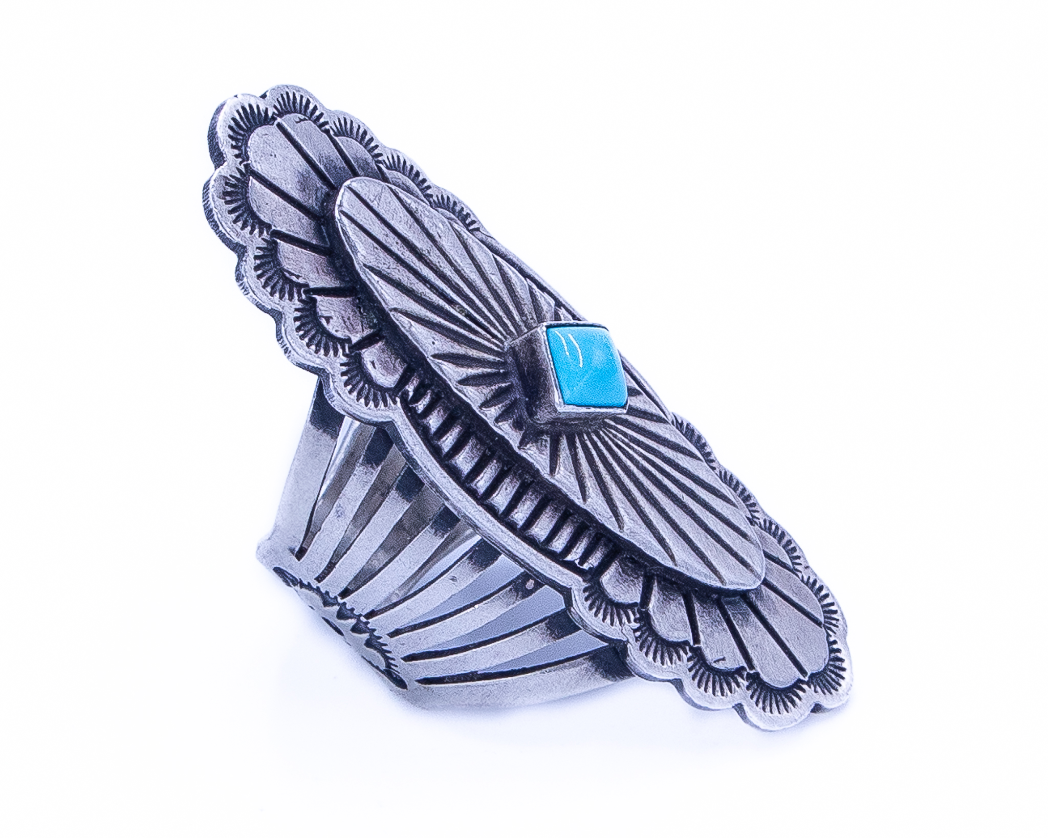 Richard Begay Navajo Turquoise Sterling Concho Style Overlay Ring Sz 10, 26.5g